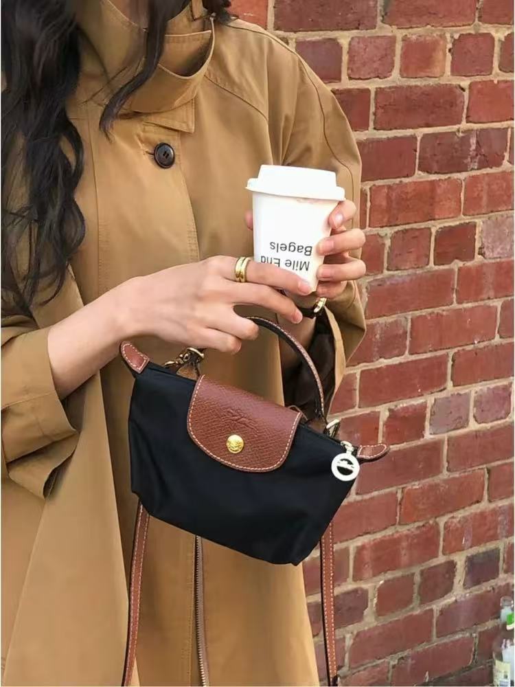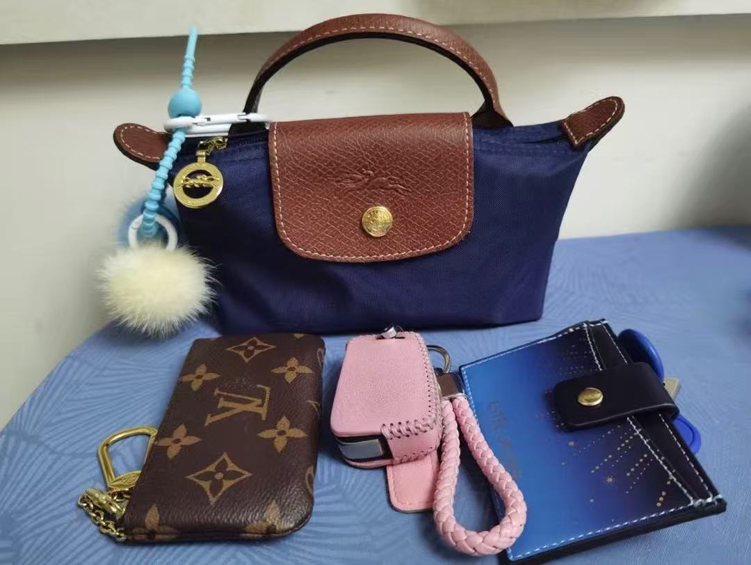 短柄手提包、零钱包,尼龙料配牛皮材质,