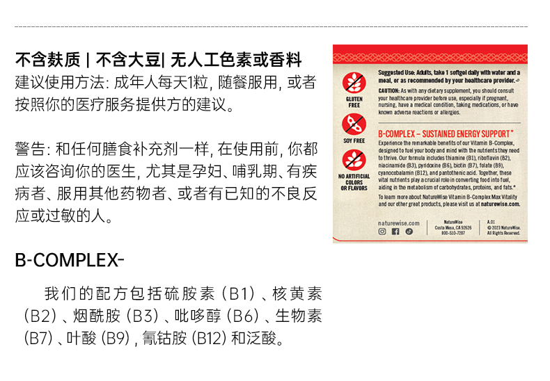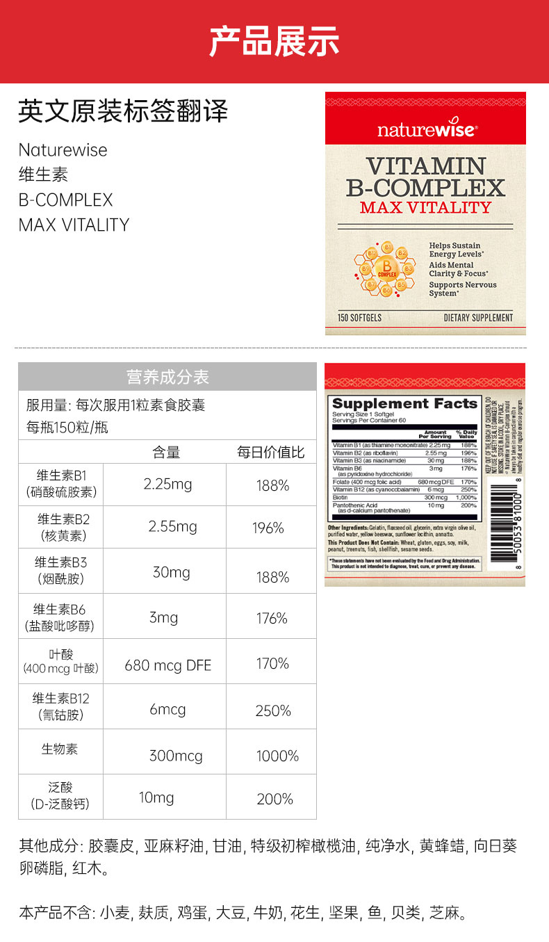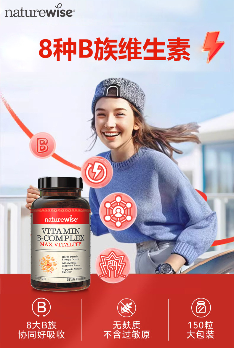 【naturewise】美国原装 B族维生素150粒/瓶