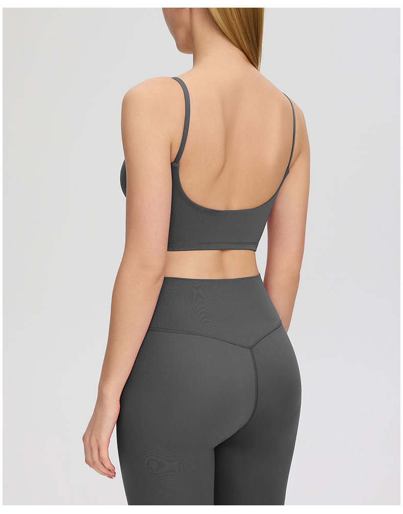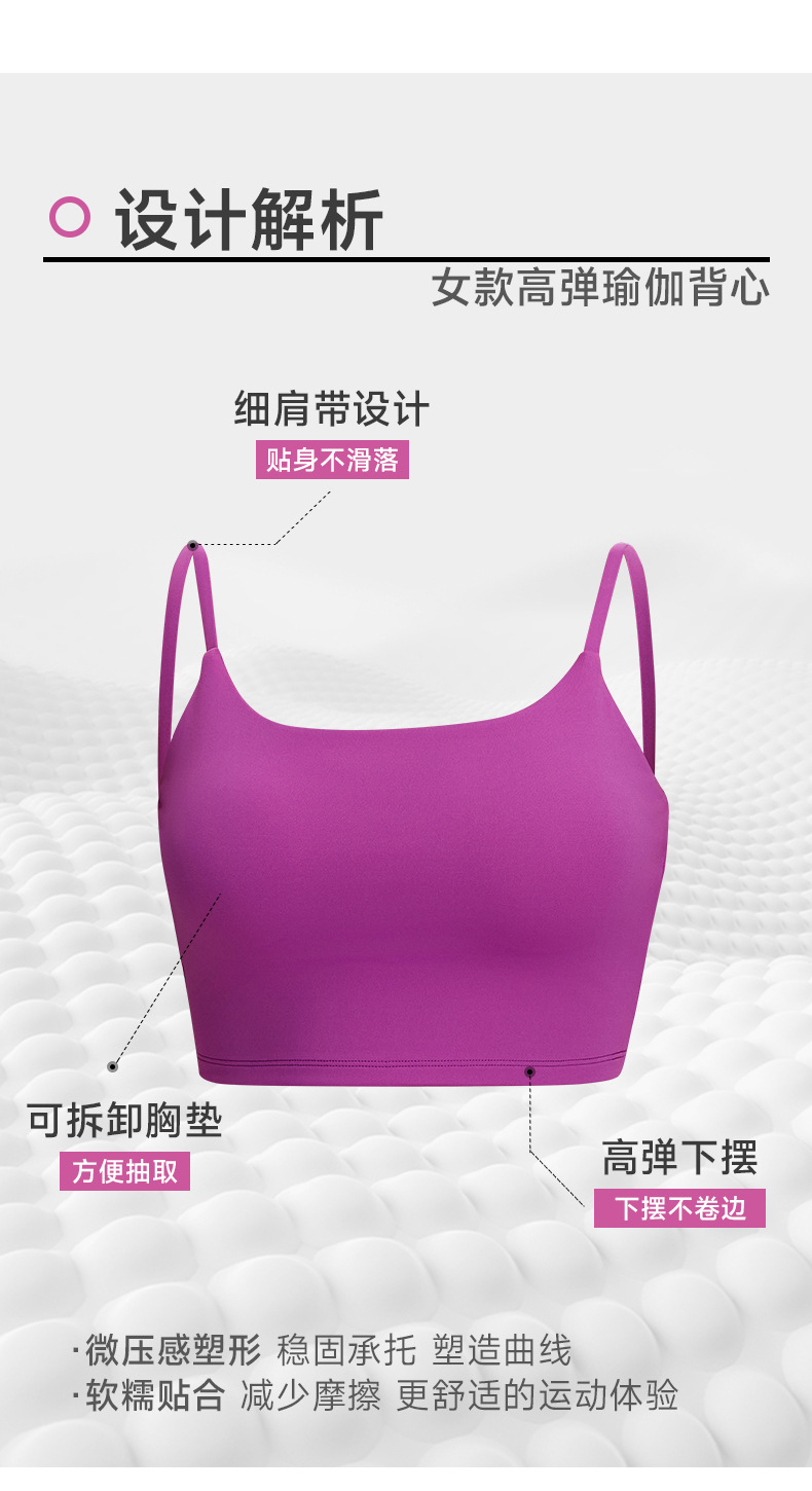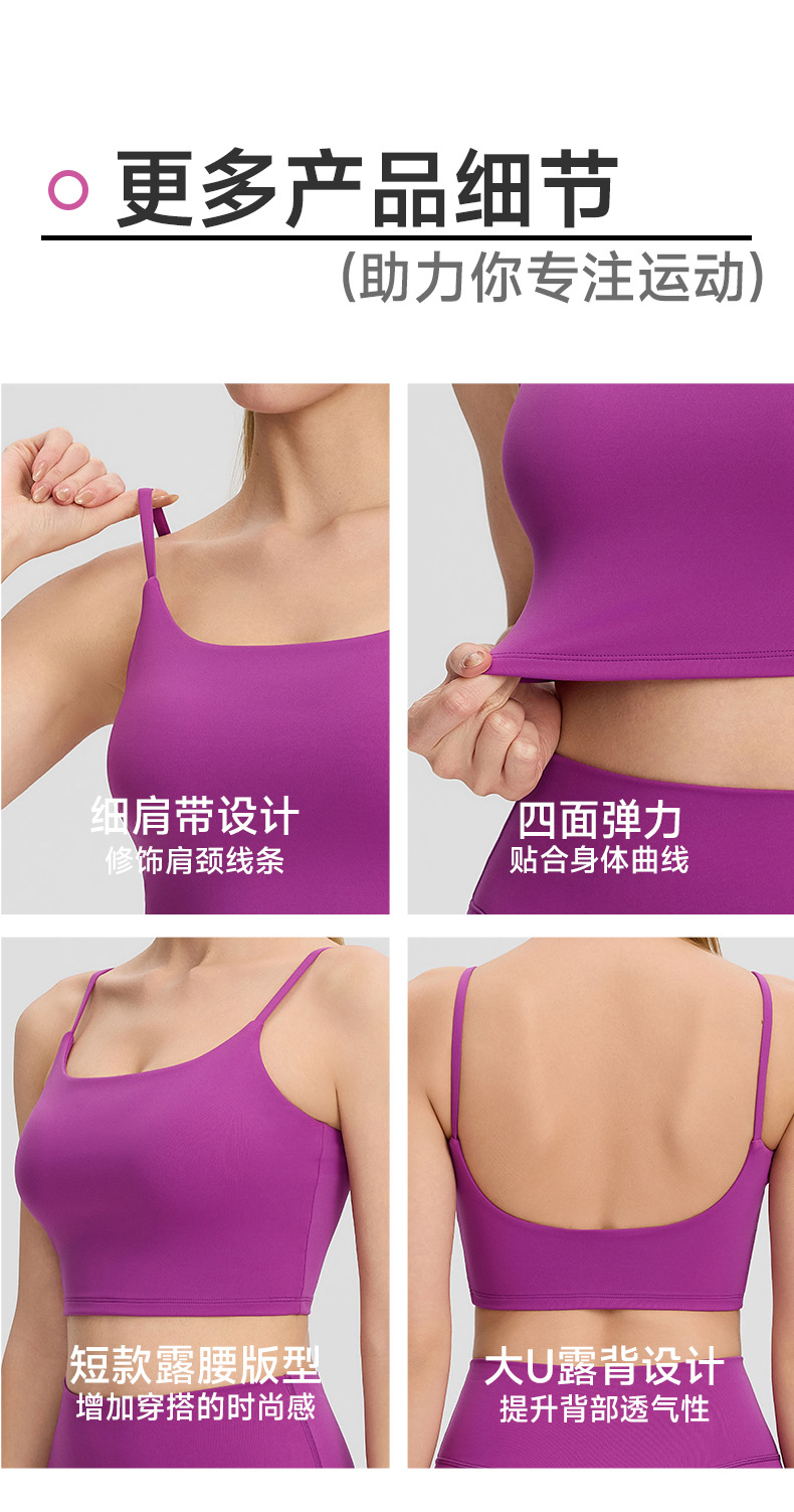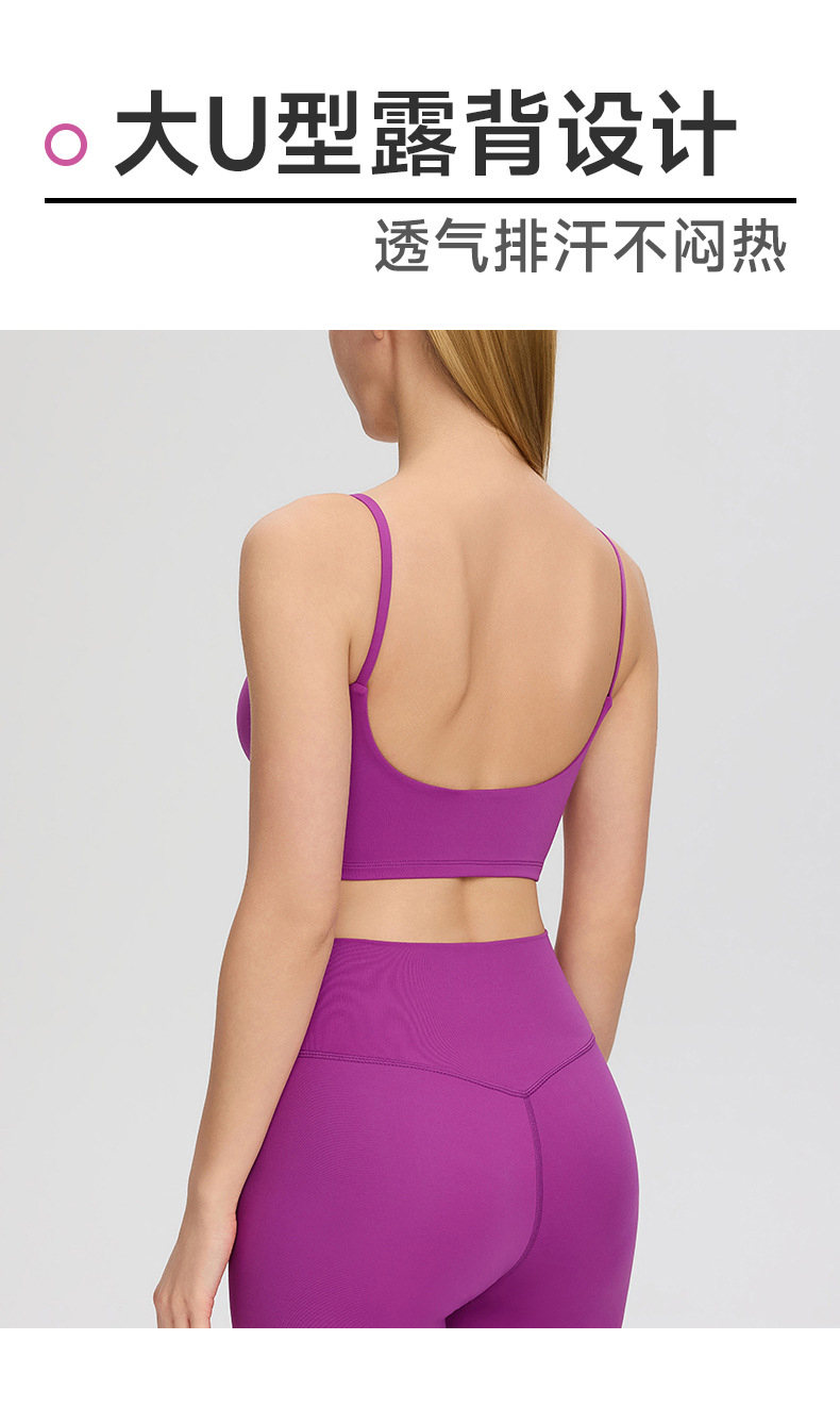跃牌【欲动春风】系列 裸感运动瑜伽背心深U美背女带胸垫跑步健身上衣52135
