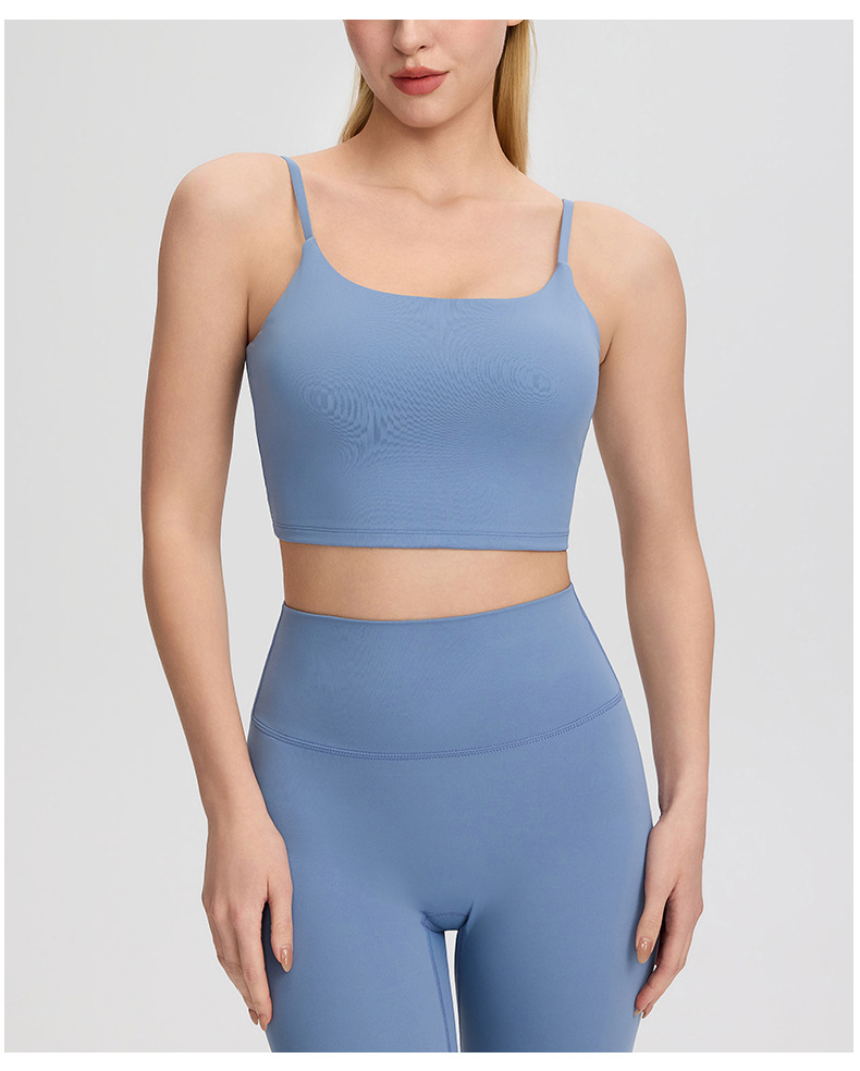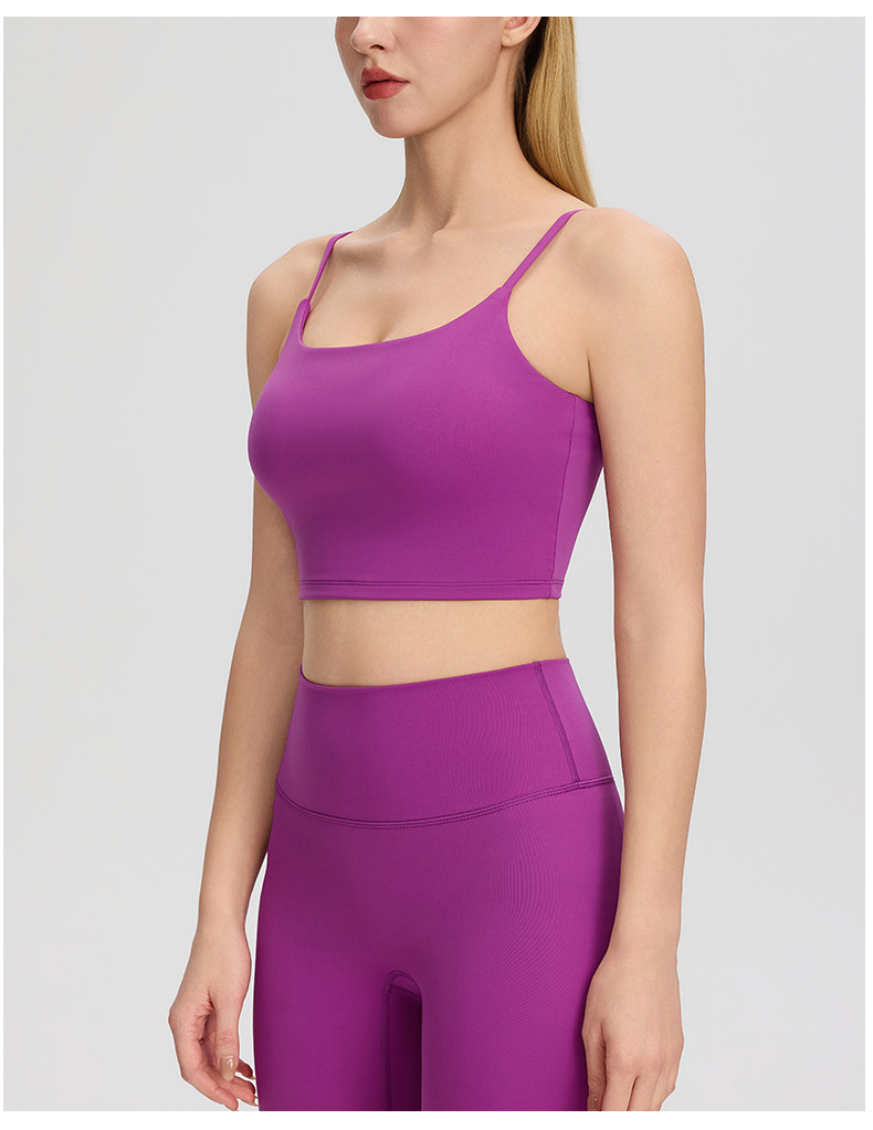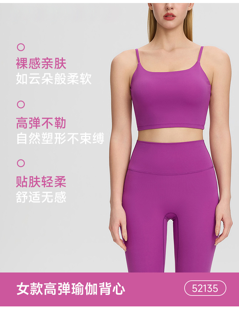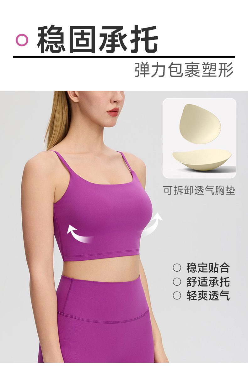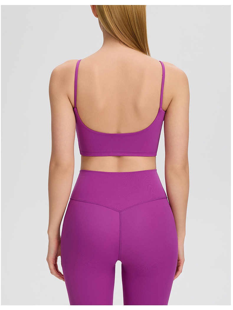 跃牌【欲动春风】系列 裸感运动瑜伽背心深U美背女带胸垫跑步健身上衣52135