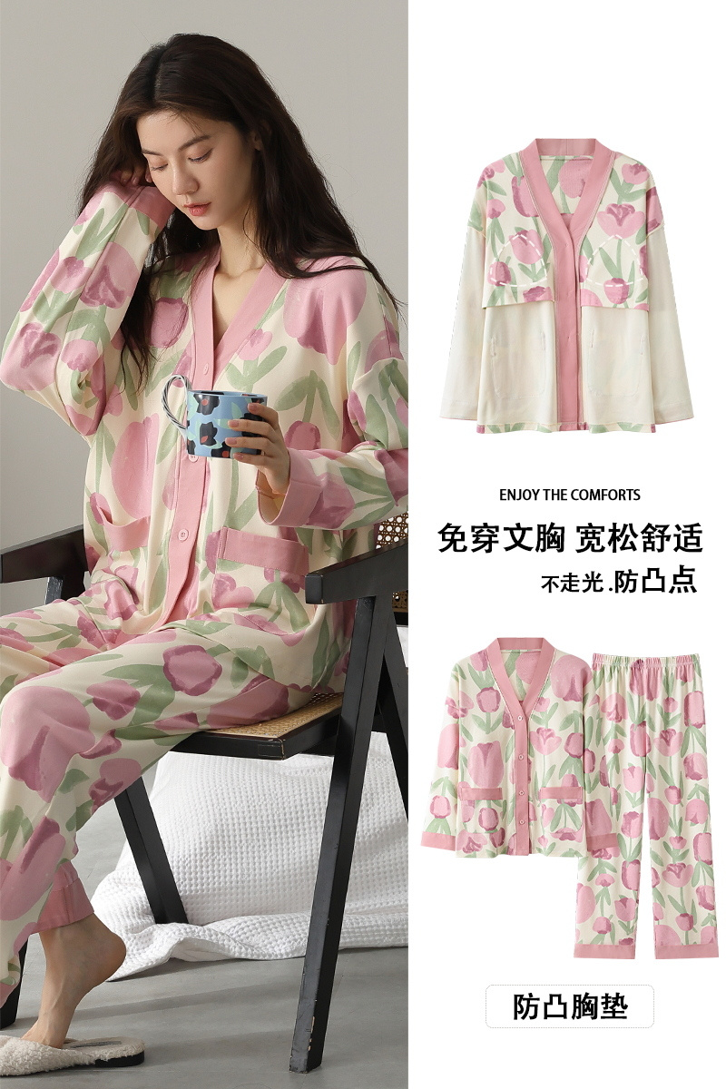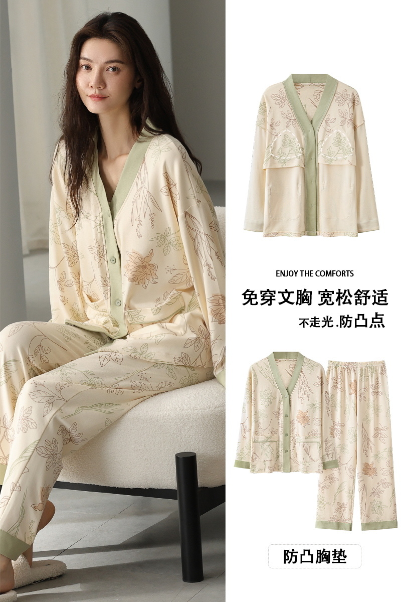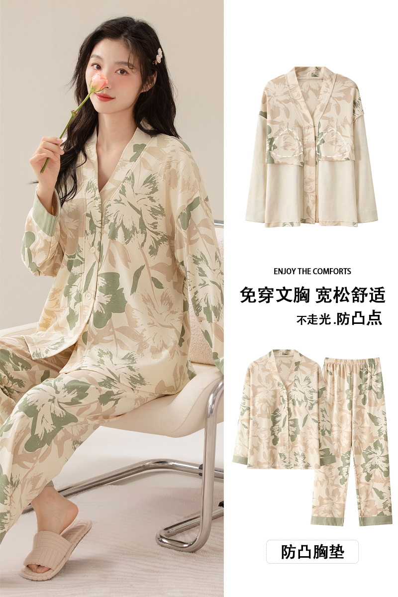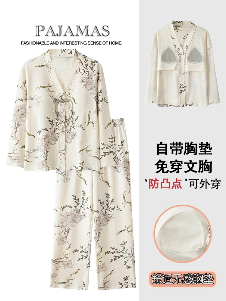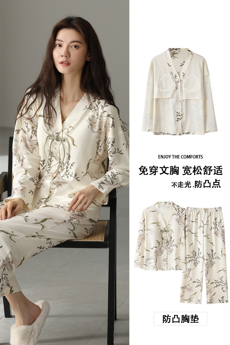 【柠可芯-国风免穿Bra家居服套装,春夏秋三季必备】十色可选 内置胸垫设计,无松紧带无束缚,升级材质,棉柔感透气亲肤高色牢度,不易褪色不起球,居家外出皆可穿
