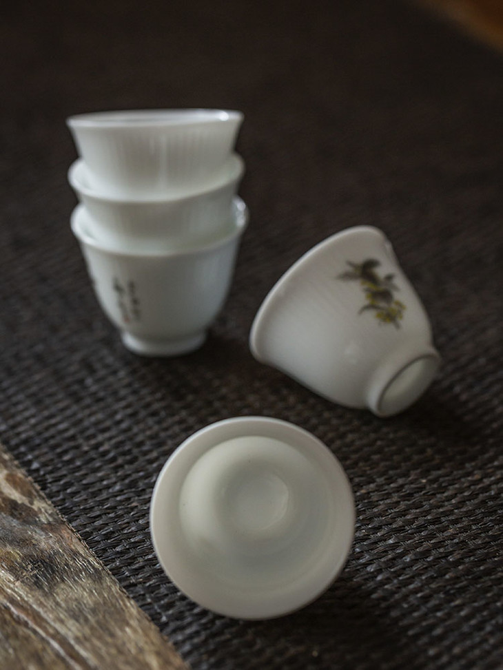 品杯瓷质洁白,施以一层温润如玉的白釉,