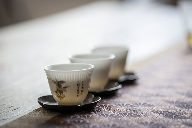 原本素简的品杯生出几许诗情画意。