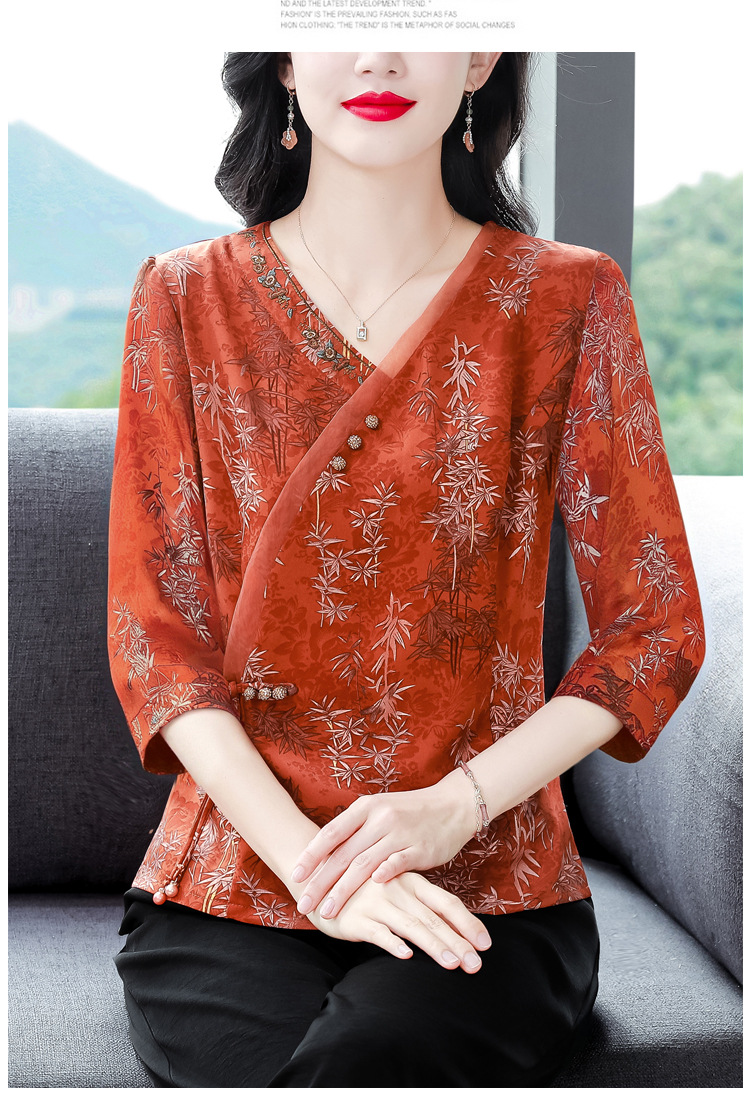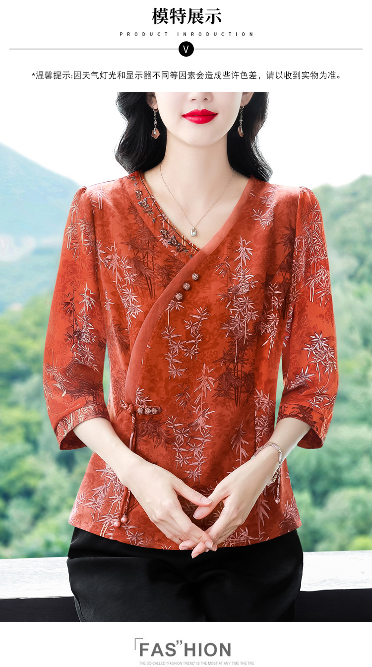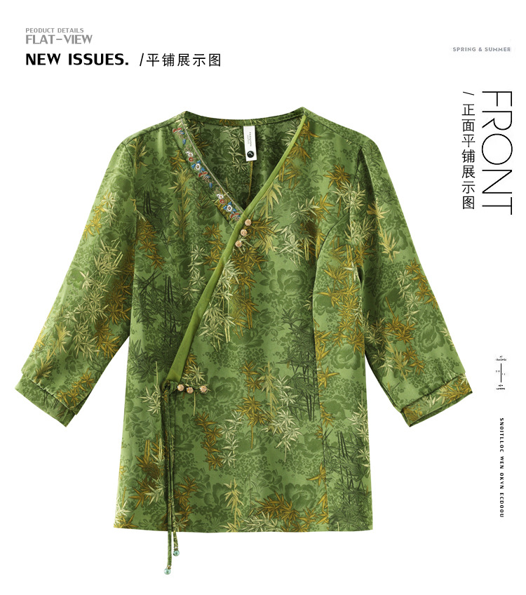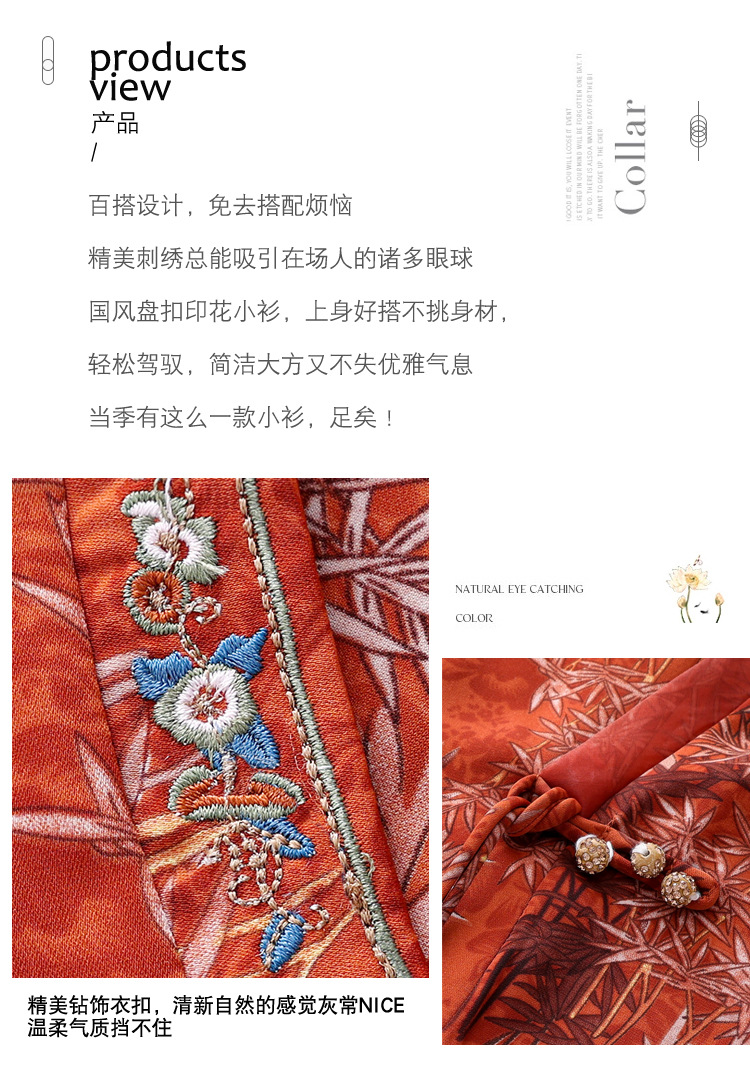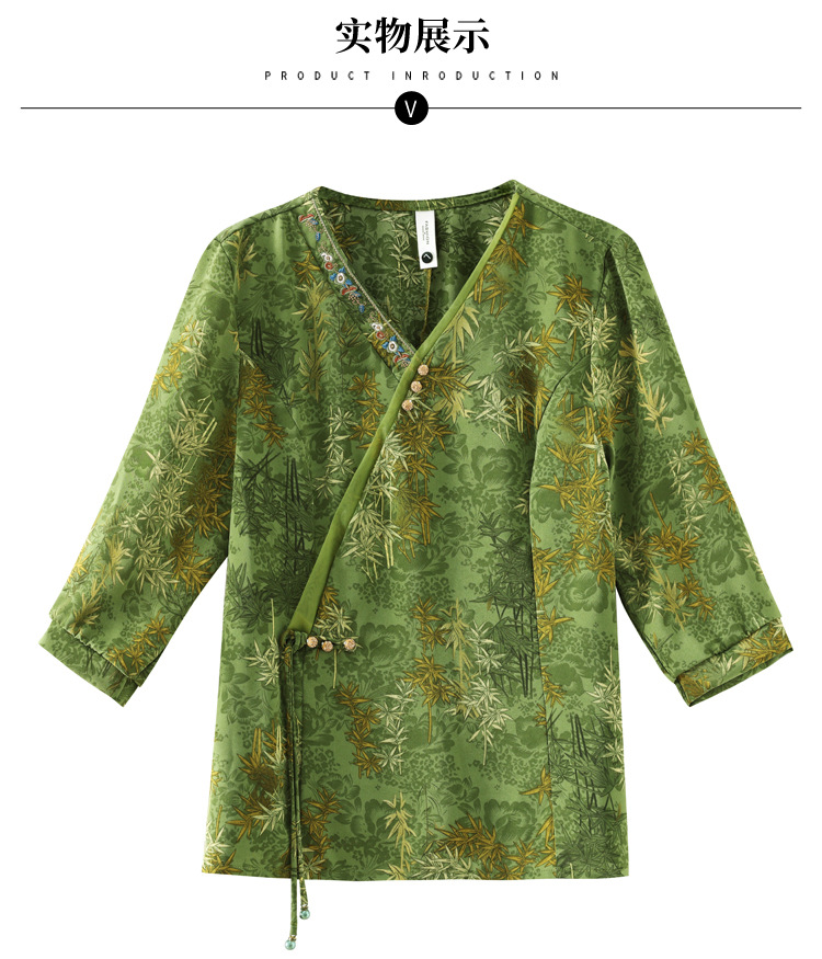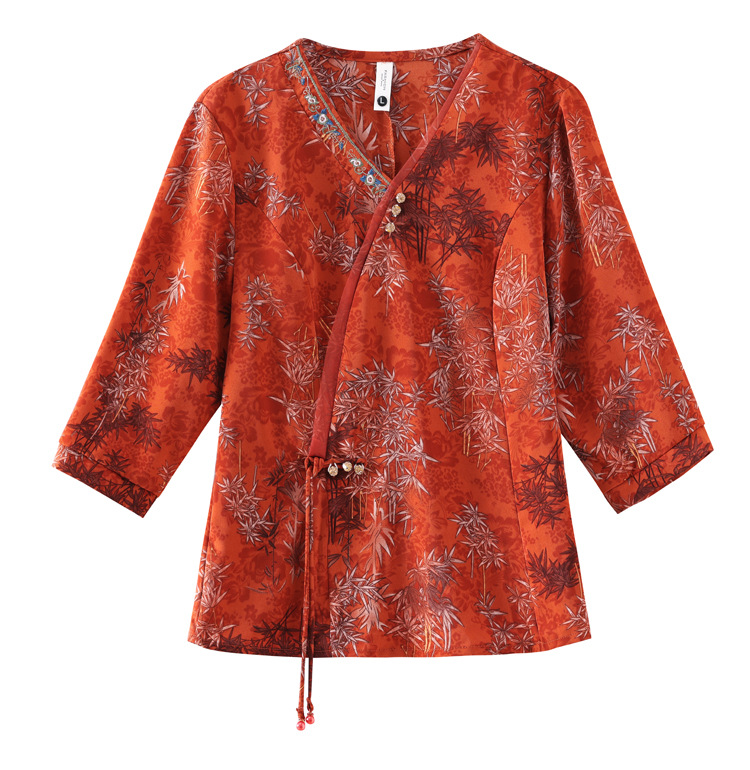 KQL B41N6588复古国风短袖翻领印花宽松显瘦修身大码上衣