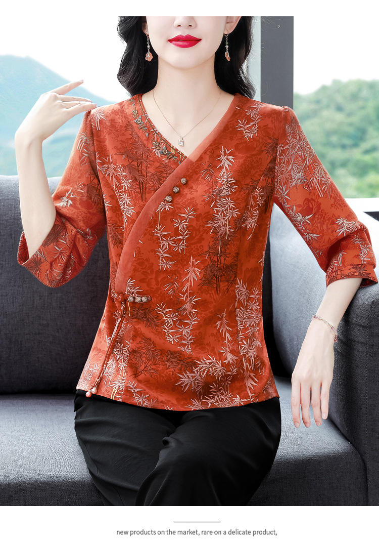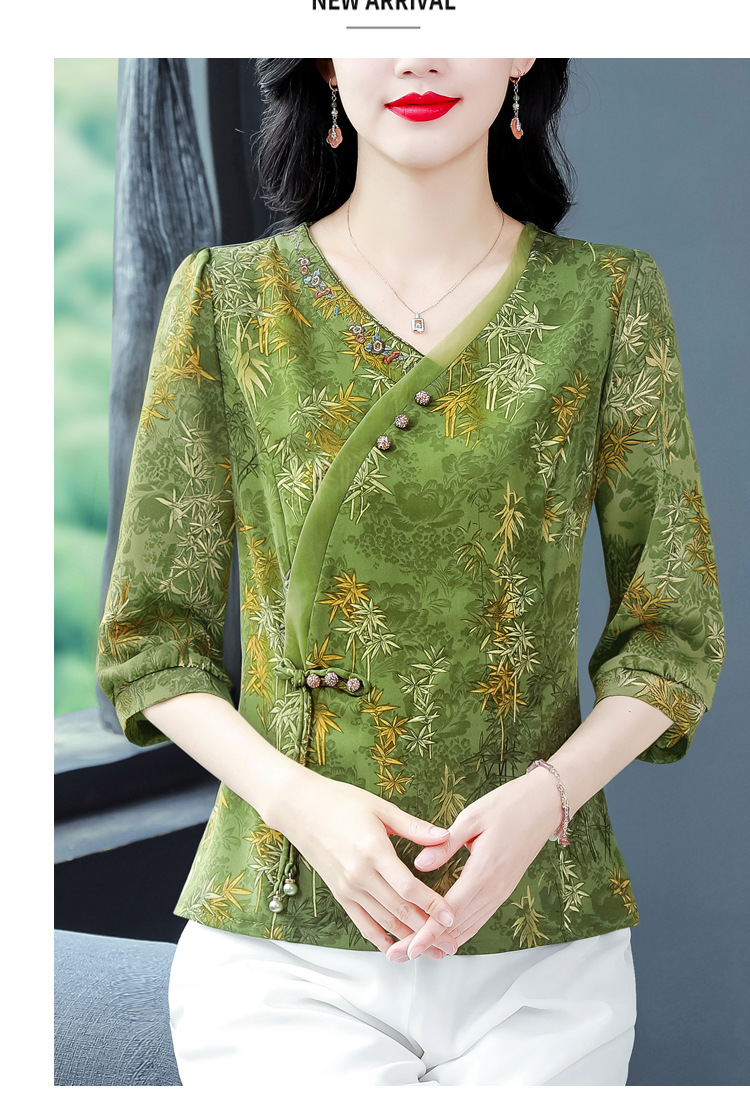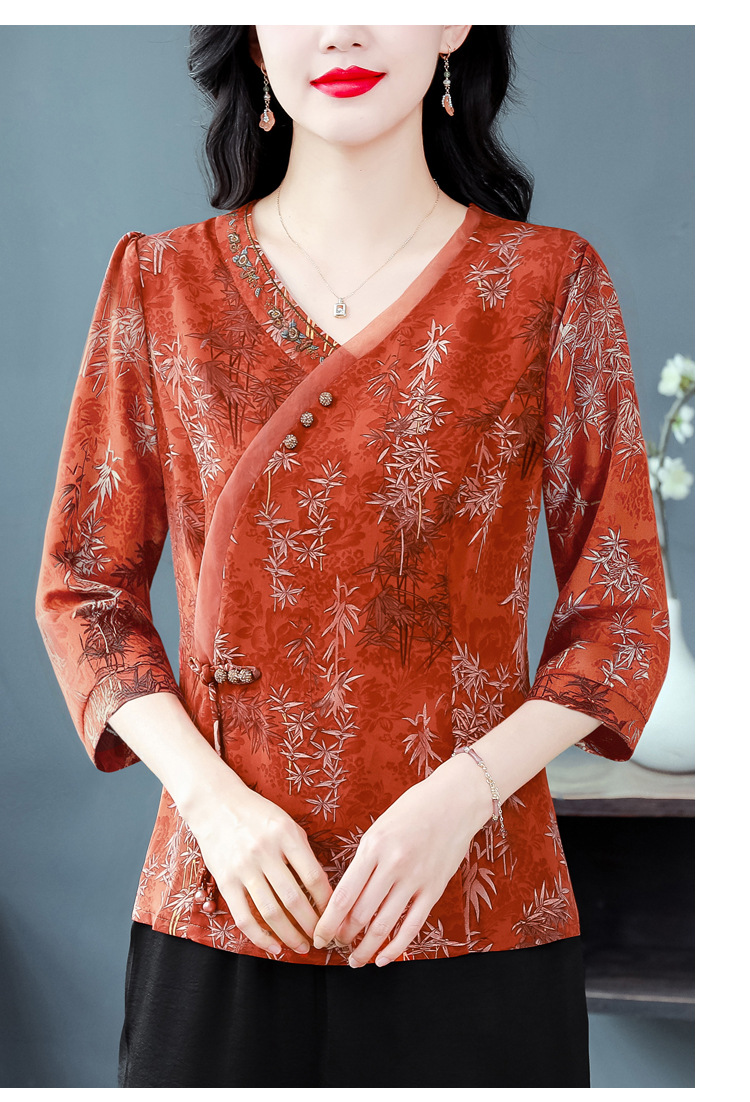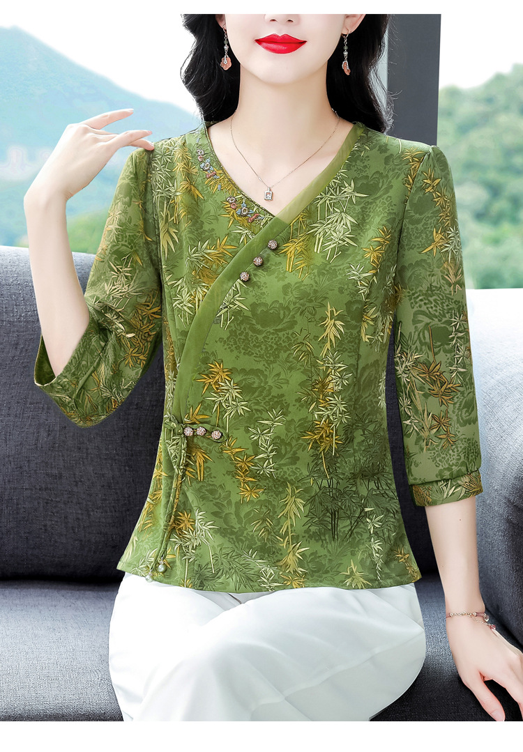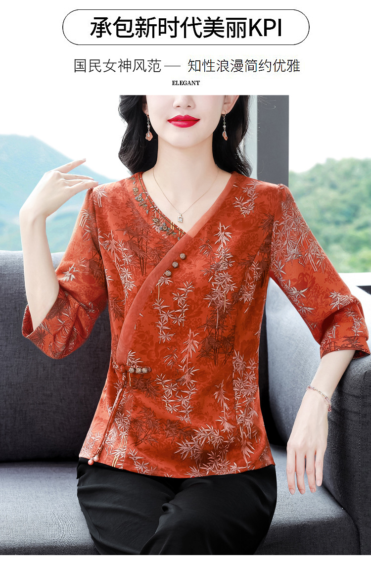 KQL B41N6588复古国风短袖翻领印花宽松显瘦修身大码上衣