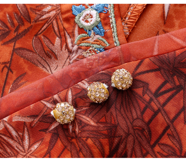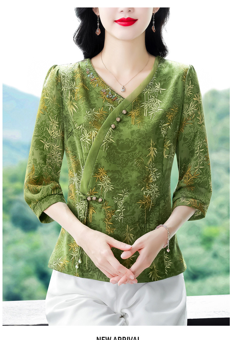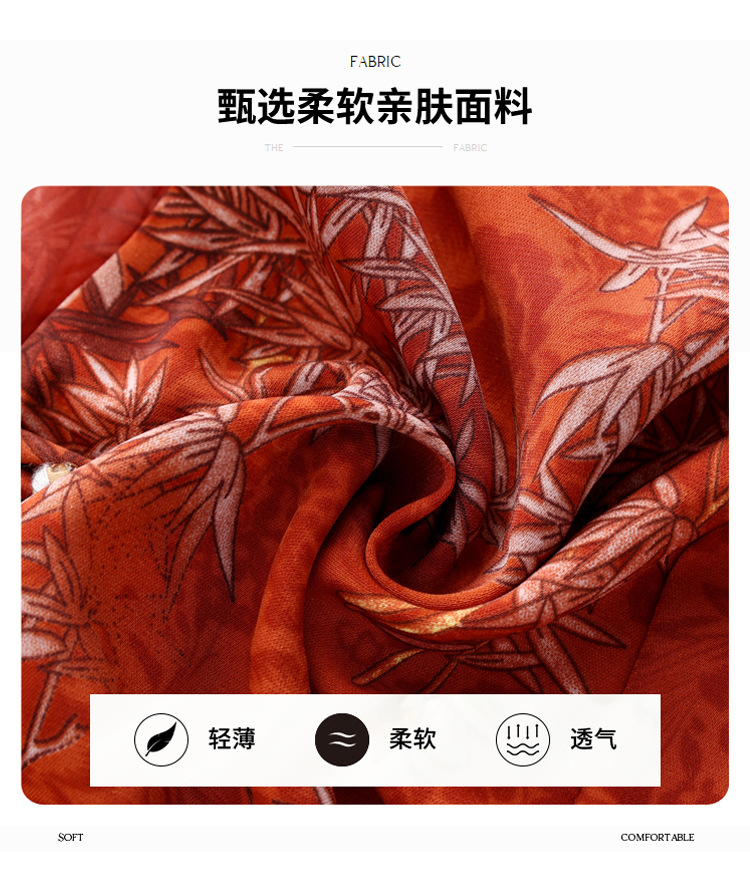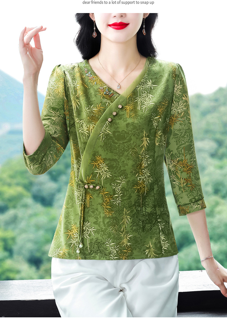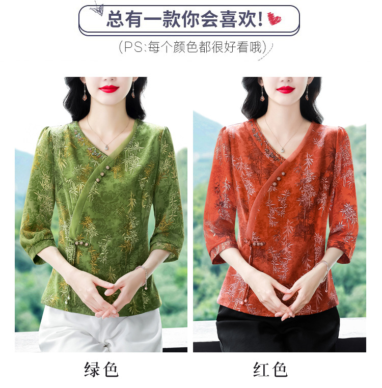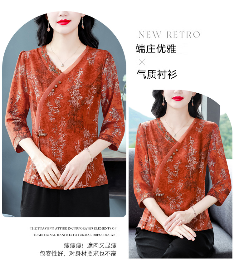 KQL B41N6588复古国风短袖翻领印花宽松显瘦修身大码上衣