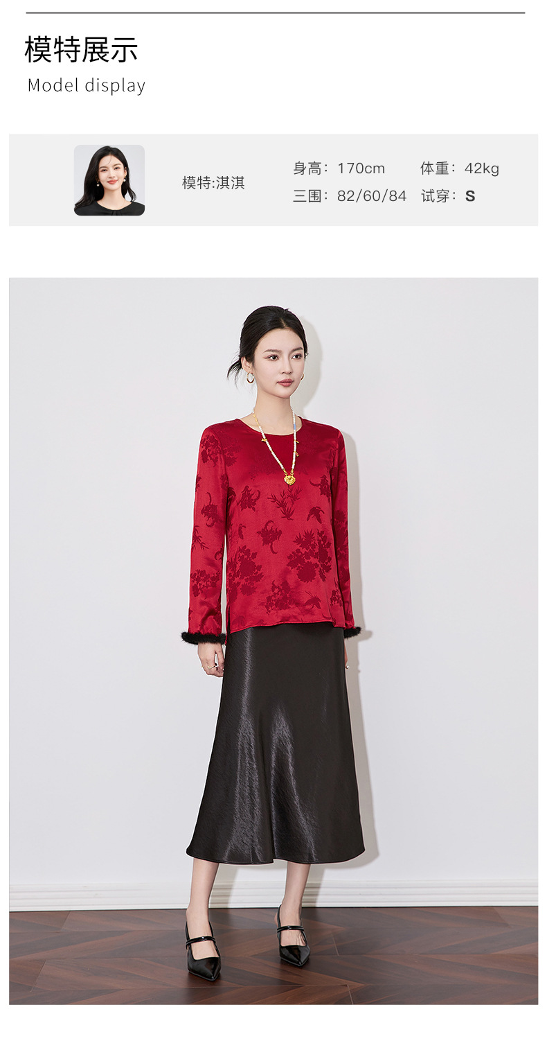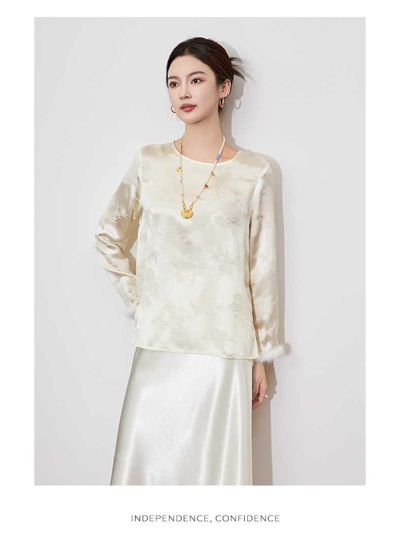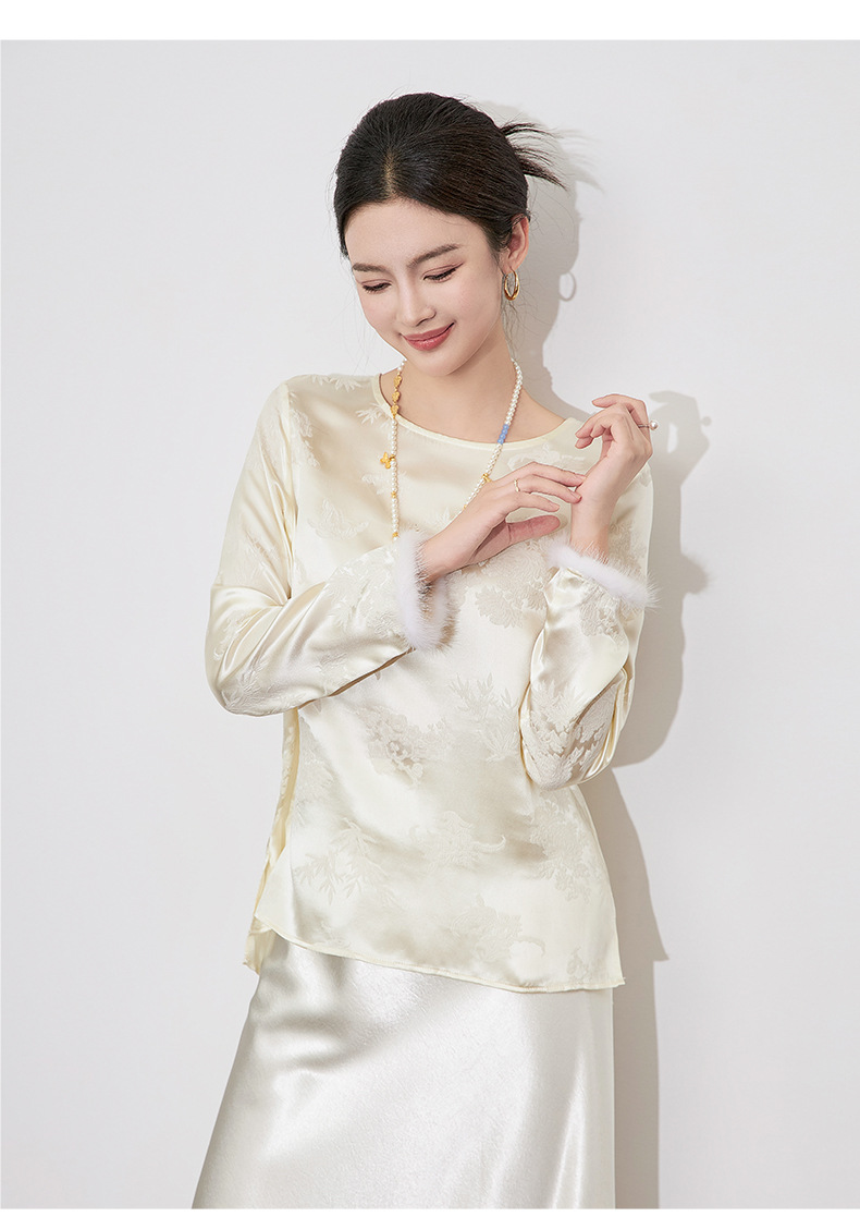 【高货wl】全新升级【铂金会员330/天猫439/差价109】(20535) 洛诗琳新中式国风拼水貂毛上衣2025春季新款真丝提花衬衫