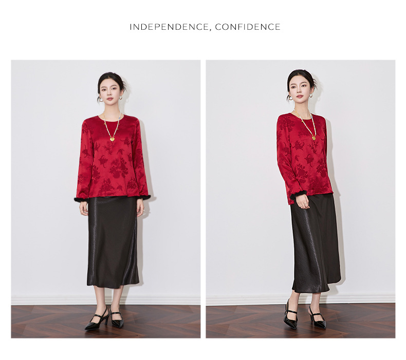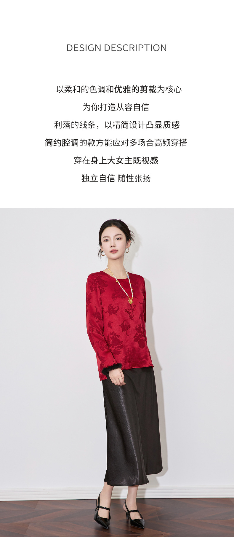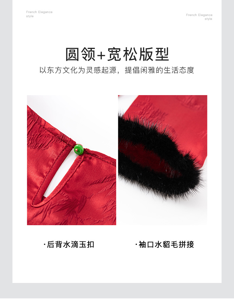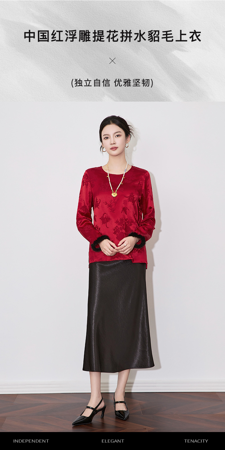 【高货wl】全新升级【铂金会员330/天猫439/差价109】(20535) 洛诗琳新中式国风拼水貂毛上衣2025春季新款真丝提花衬衫