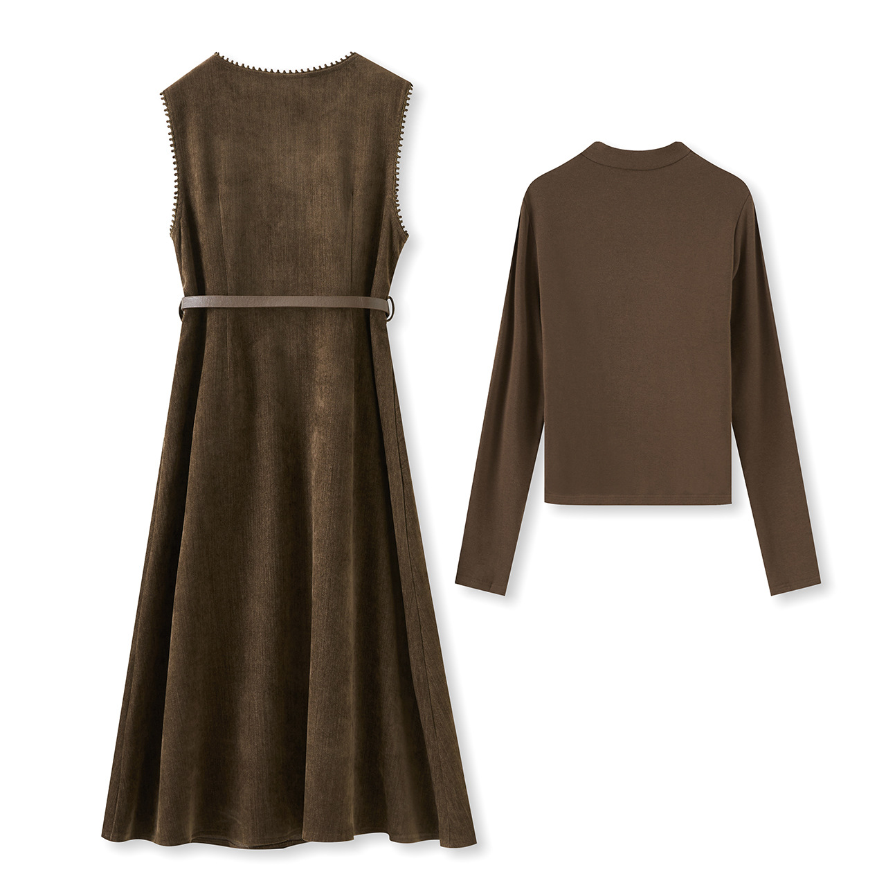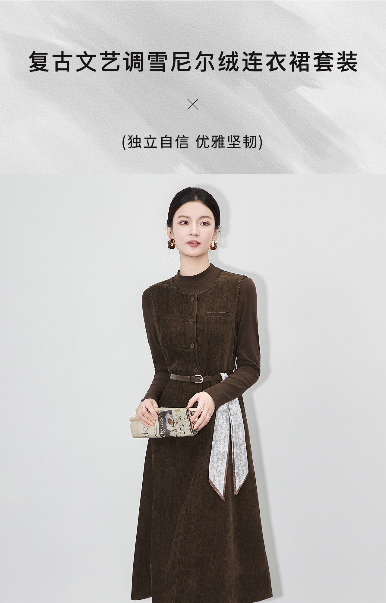 「高货wl」全新升级【铂金会员367/天猫499/差价132】(99908)洛诗琳2025秋季法式优雅纯色打底衫雪尼尔绒背心裙两件套