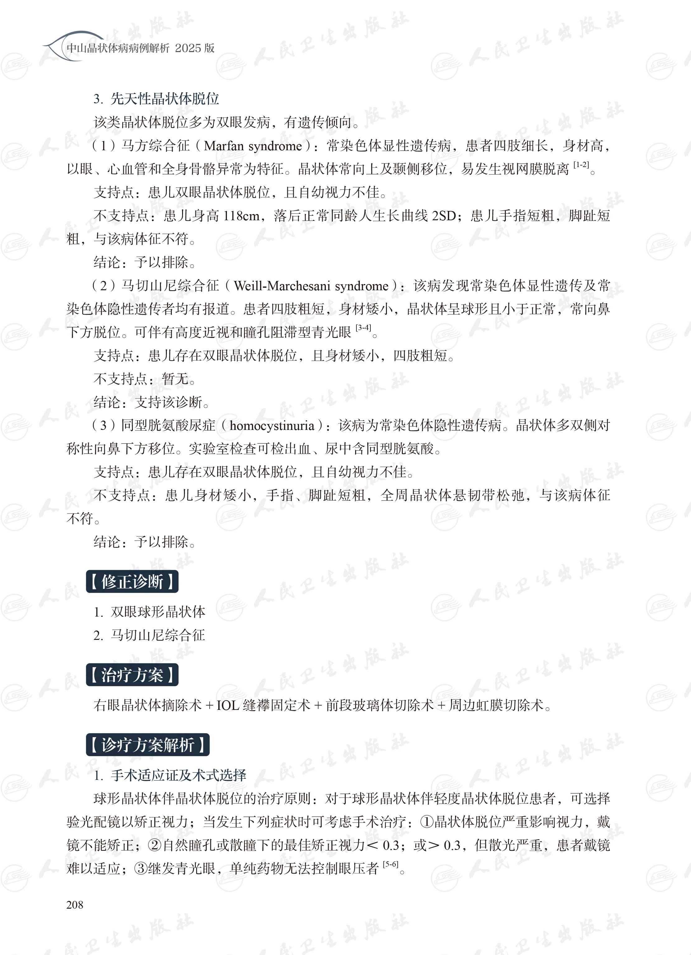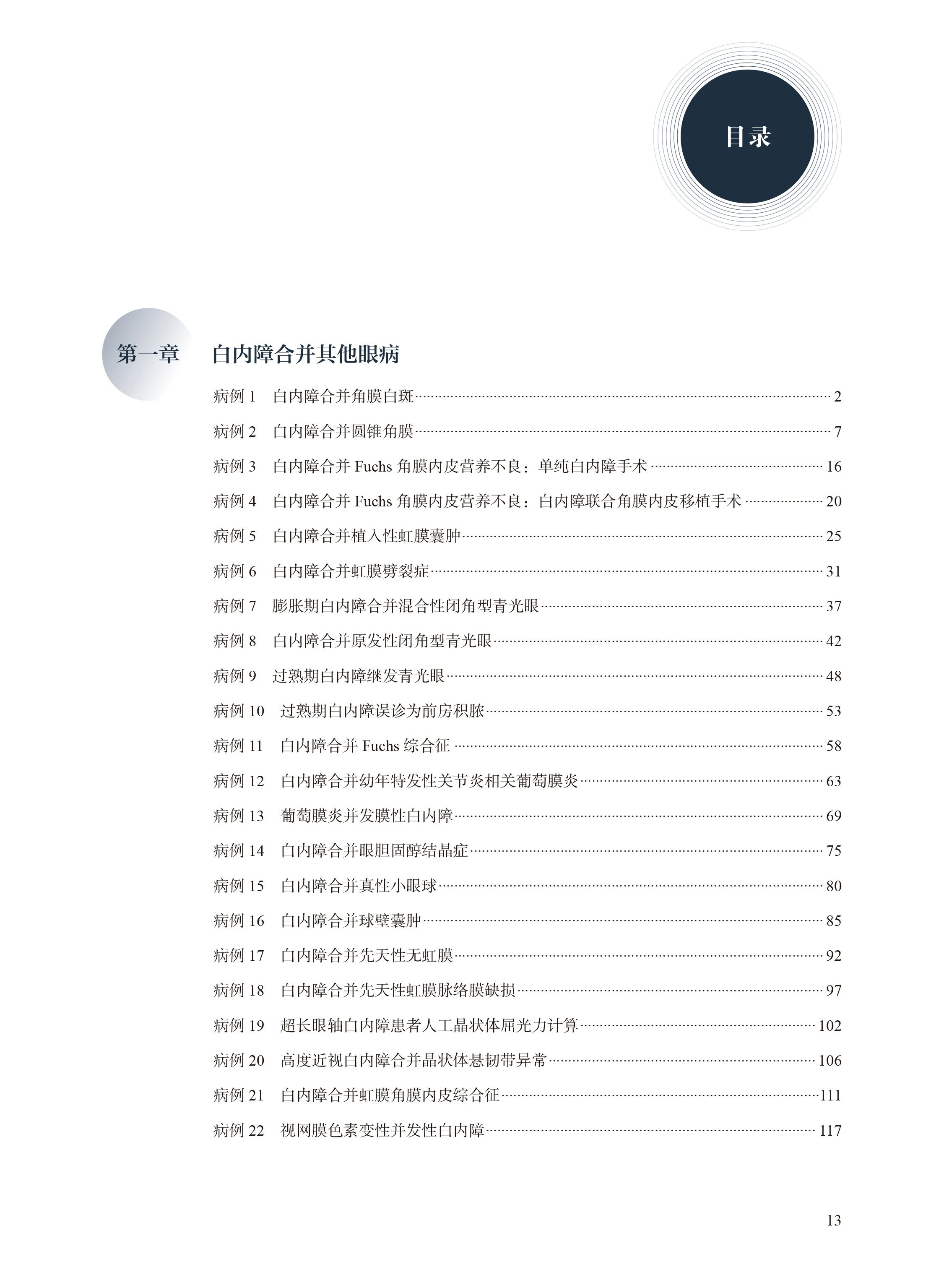 本书精选中山眼科中心白内障科近5年来100例具有代表性的病例,涵盖典型、疑难、复杂及罕见类型,内容涉及合并各种其他眼病、术后并发性白内障,晶状体悬韧带异常、晶状体囊膜异常的白内障,儿童特殊类型白内障,外伤性与医源性白内障,合并全身性疾病的白内障,以及各类白内障术中与术后并发症等。每个病例均从患者主诉和眼前段检查入手,系统呈现辅助检查、诊断要点、鉴别诊断、治疗方案与诊疗方案解析、术后随访及转归,并总结病例启示。书中既囊括国际公认的标准诊疗方案,也融入科室原创性的创新和改良成果。