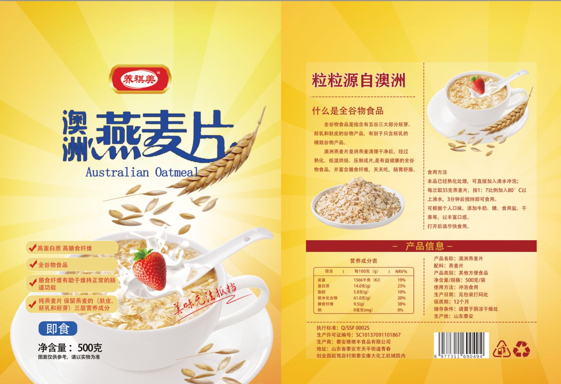 【 速溶即冲!饱腹扛饿】澳洲燕麦片营养早餐冲饮速溶袋装500g饱腹高纤维代餐麦片膳食纤维。xb