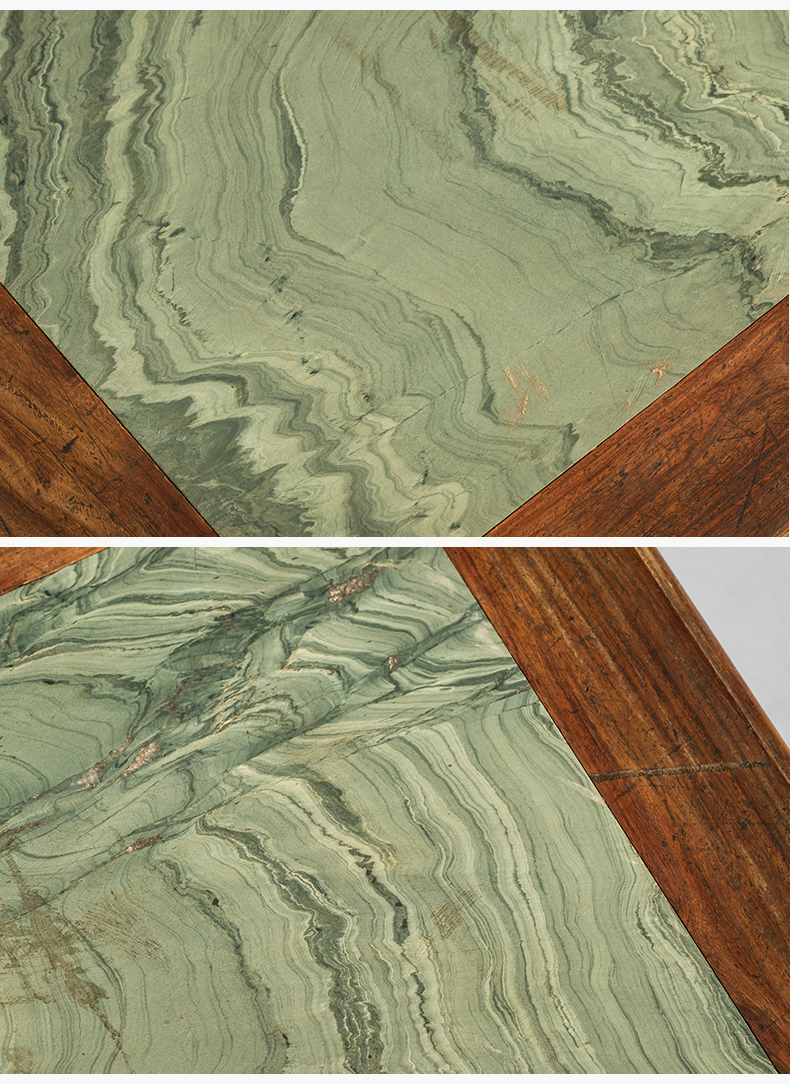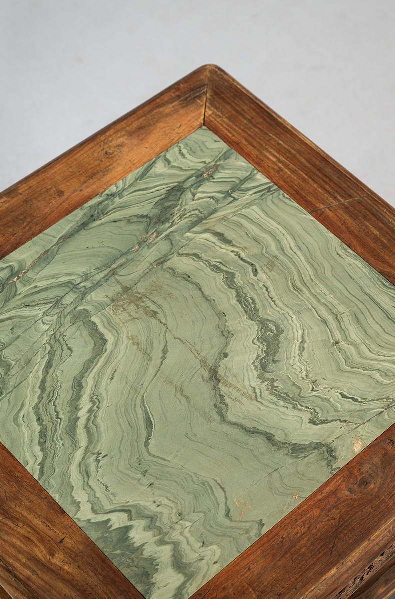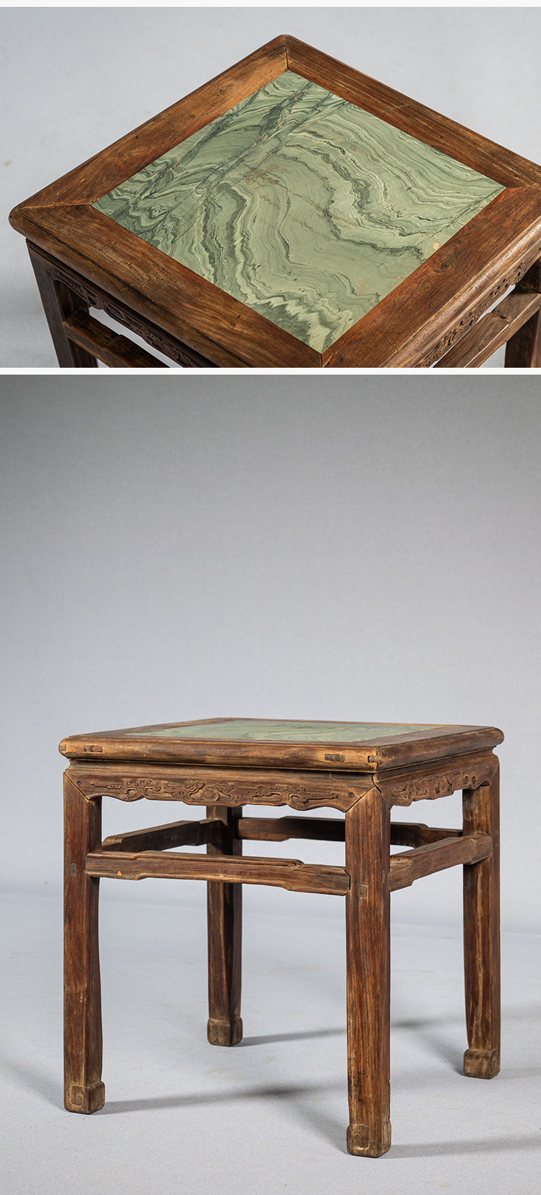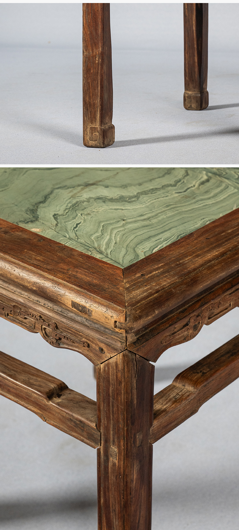 清中期 黄花梨镶绿石束腰罗锅枨马蹄腿螭龙纹方凳