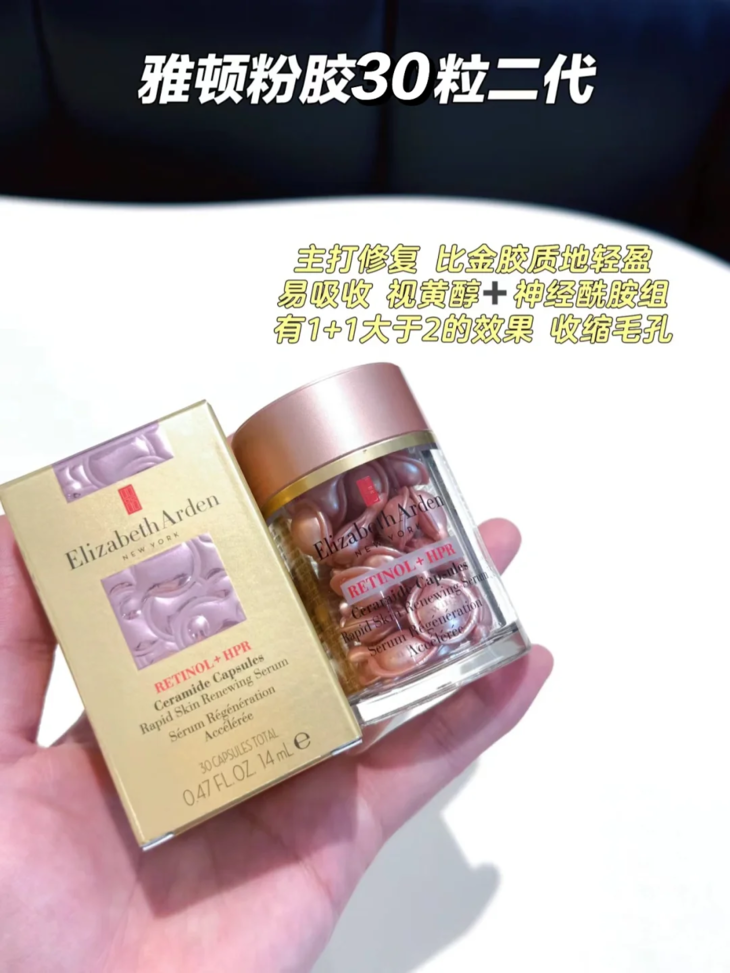 👑雅顿第二代小粉胶视黄醇玫瑰金胶囊30粒/60粒 🌟不愧是屹立A醇界10几年不倒的传奇!第二代更是强! 🎀配方升级成HPR超A醇和真A醇,直面纹路无需转化 💫属于是效果效率都在线:细腻淡纹+紧致轮廓 🩵清爽的啫喱质地,抹开后是半哑光的 ✨熬夜前用完,隔天整个脸润的像块豆腐~ 🎉坚持用皮肤摸着细嫩紧实,这大概就是粉胶的魅力了! ✅适合人群:干垮脸去淡纹 回弹紧致✔️