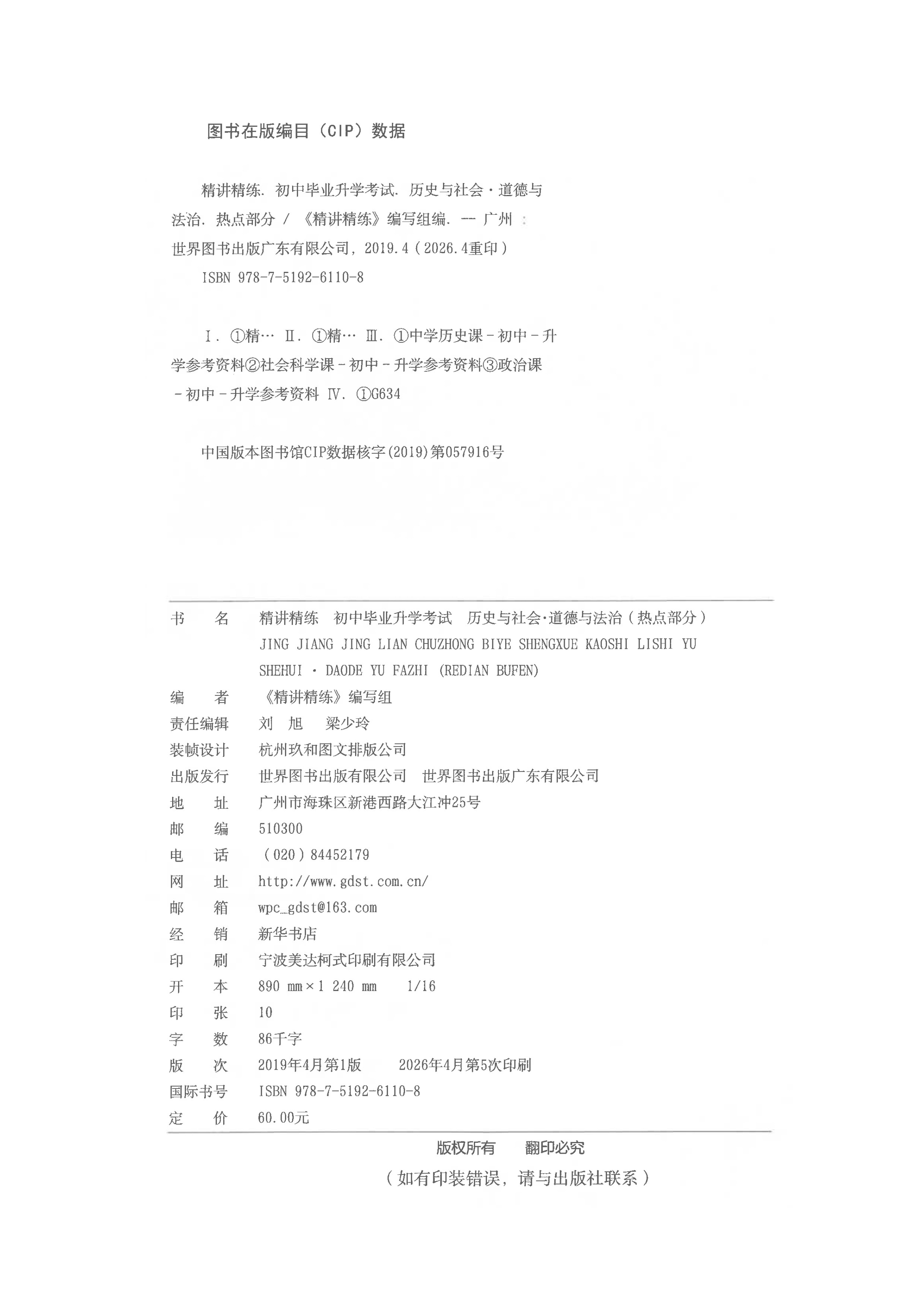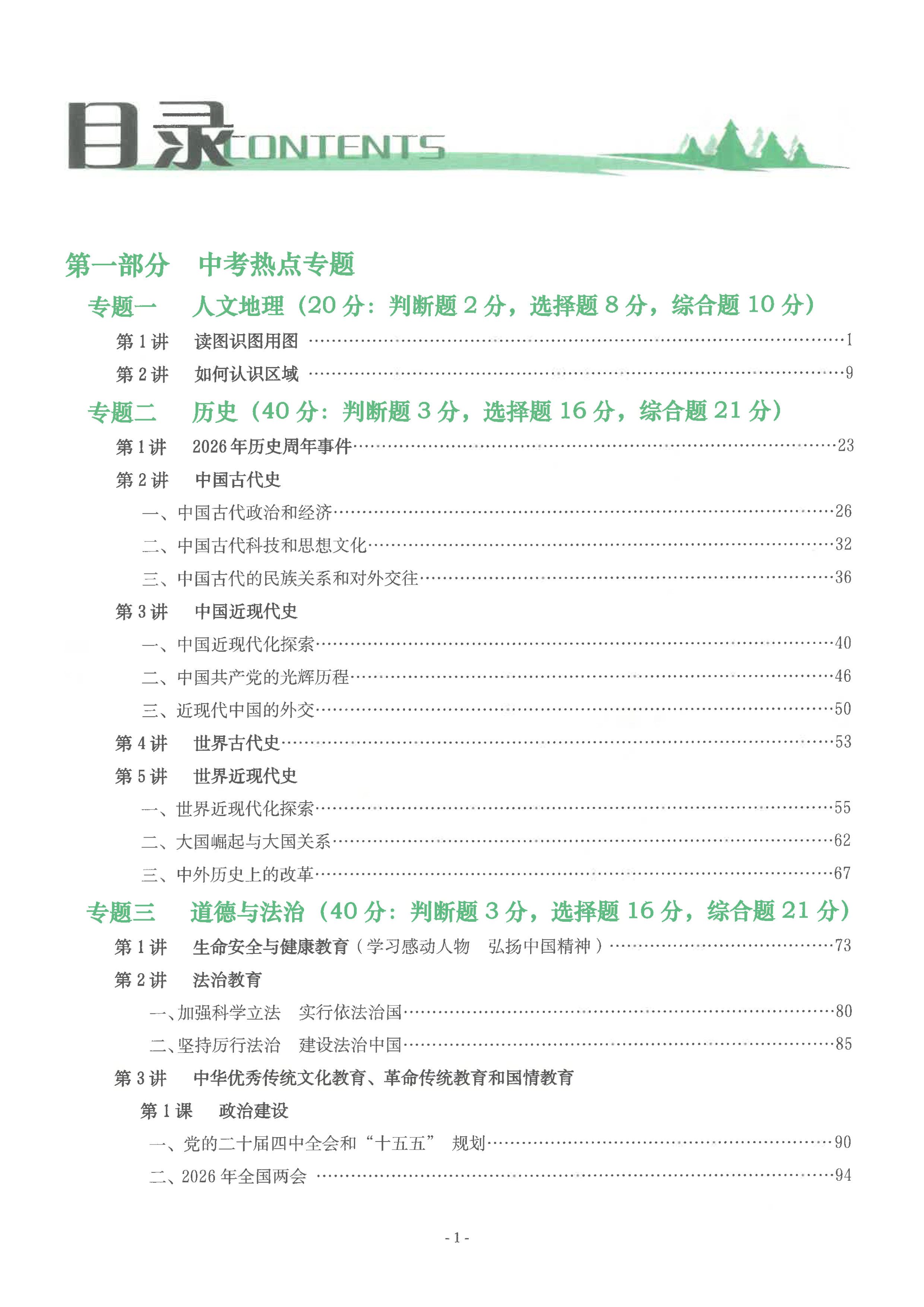 2026精讲精练中考热点时事初中历史与社会道德与法治热点部分复习