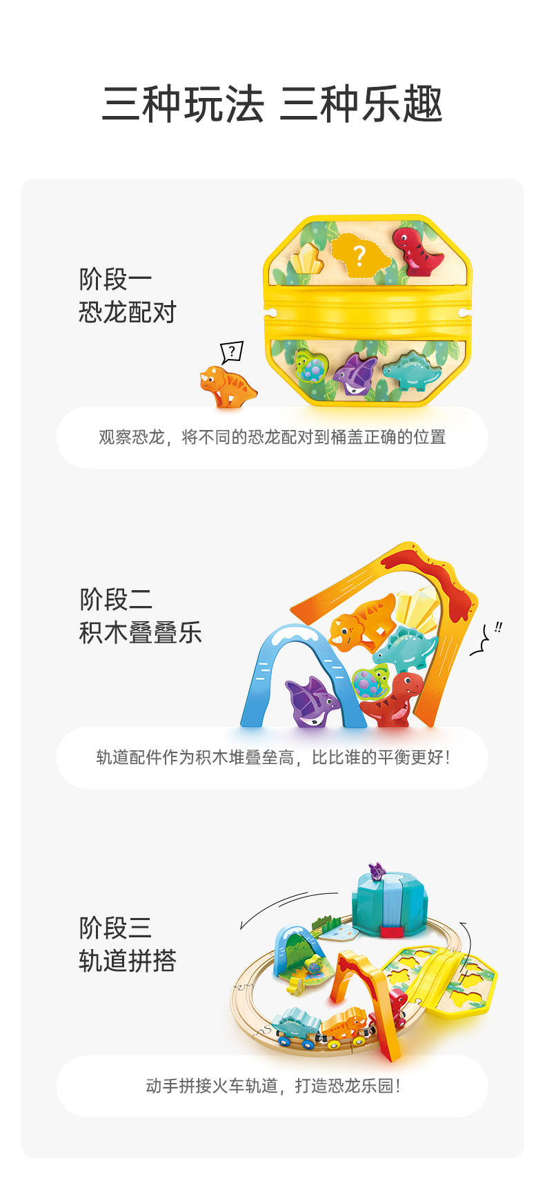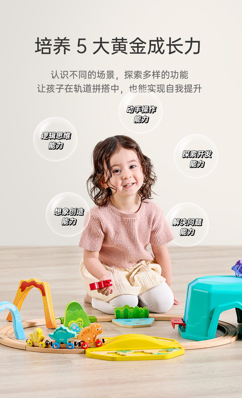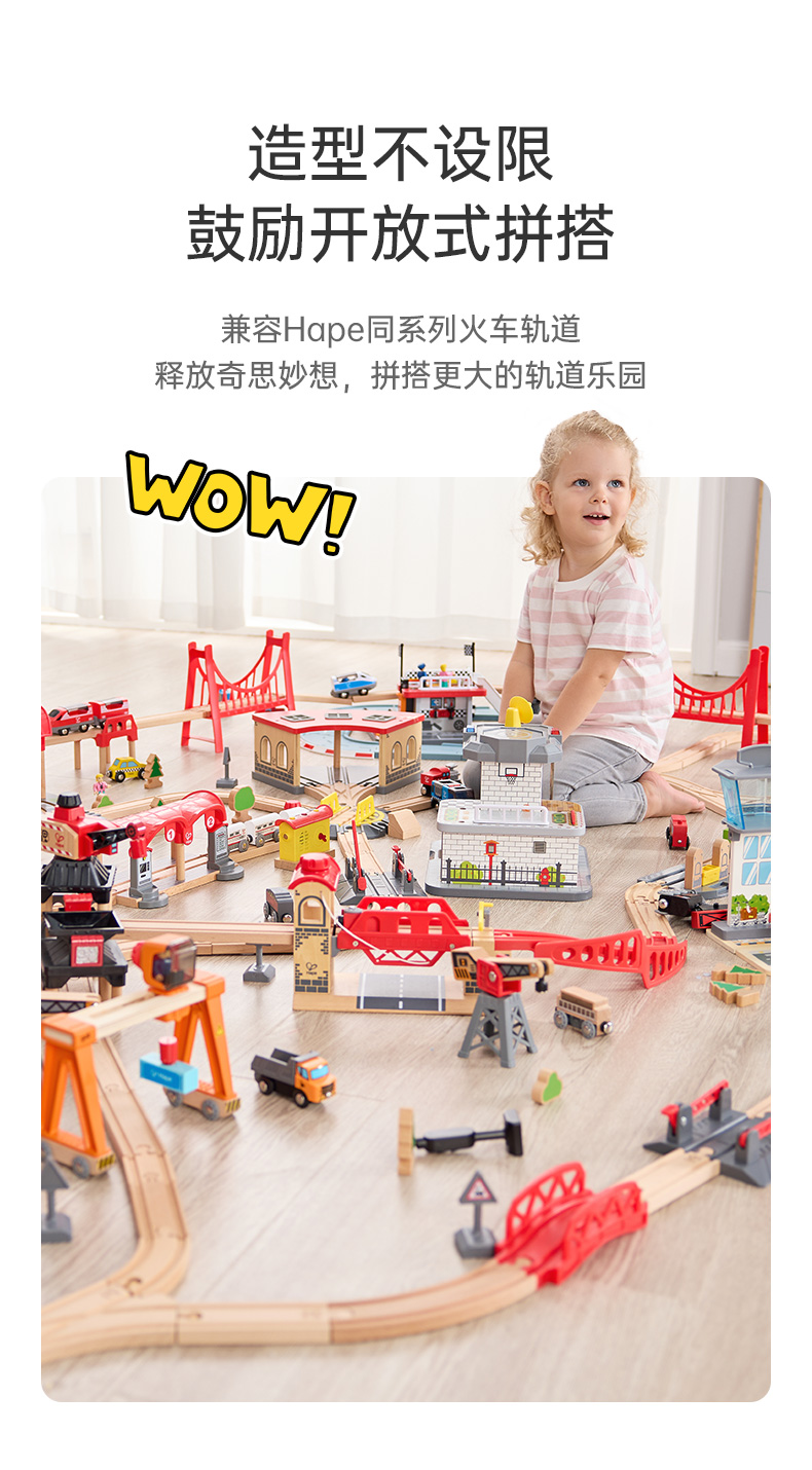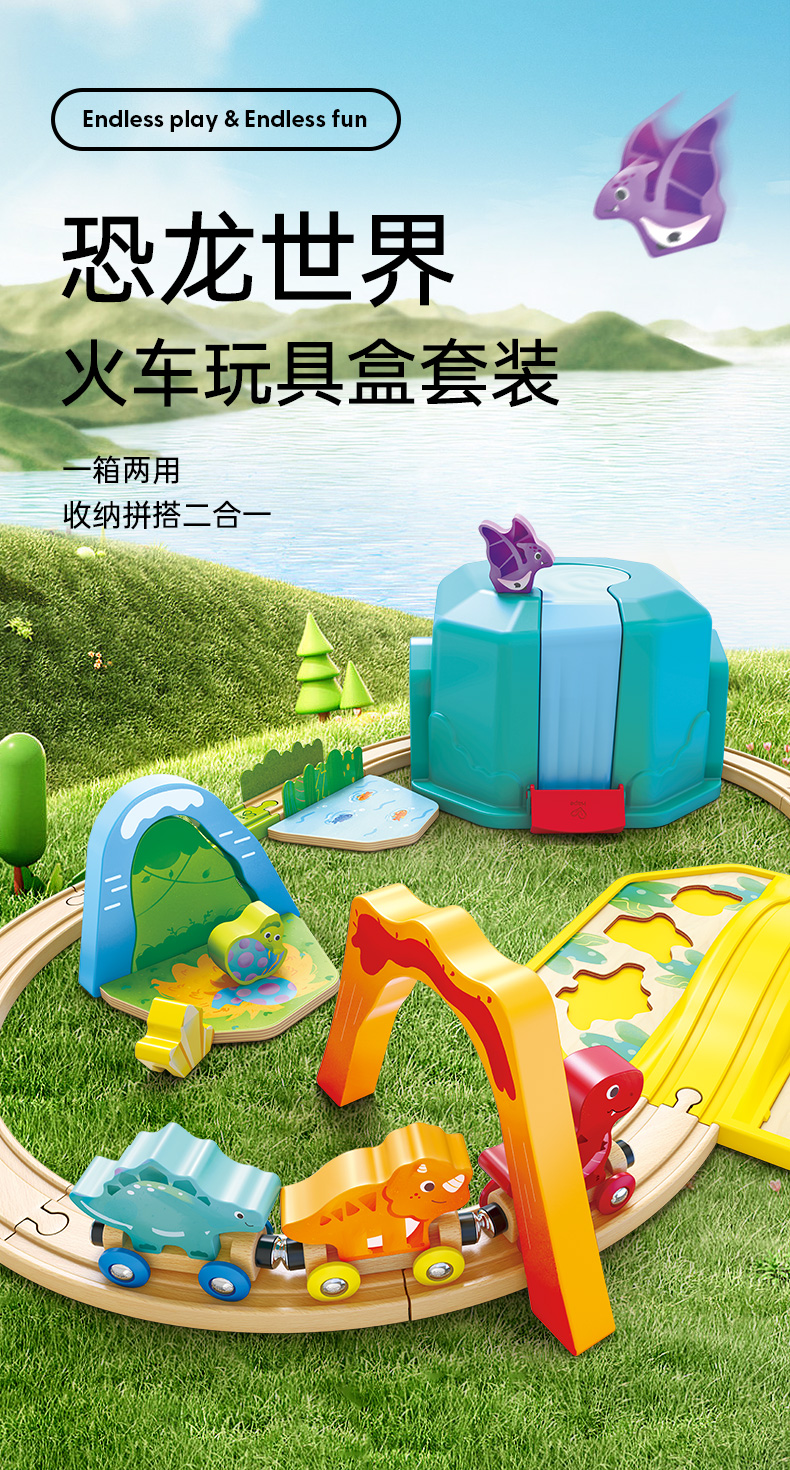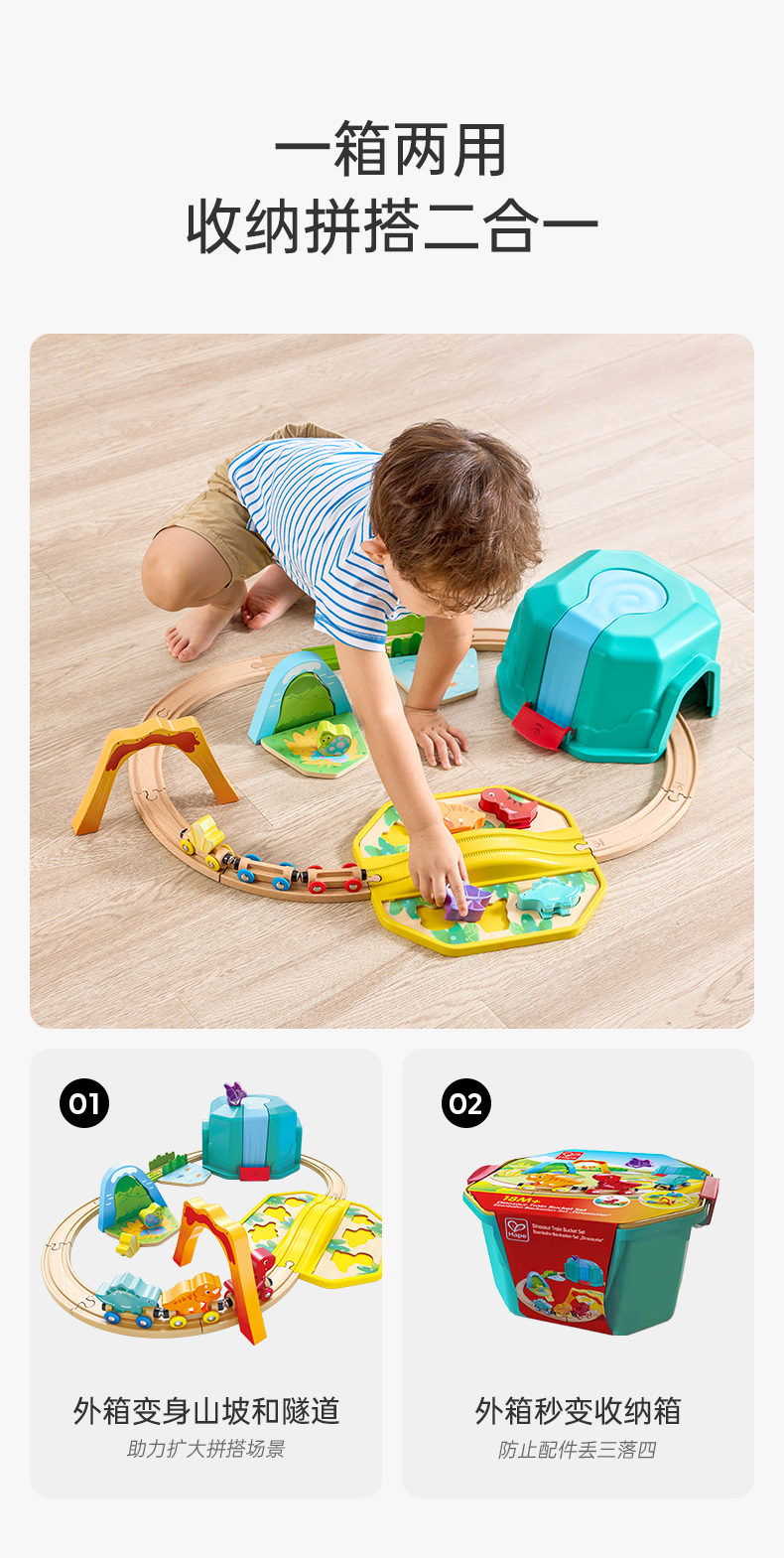 Hape火车轨道玩具 多功能木质火车玩具积木拼装套装3-6岁男女儿童玩具 E3828 恐龙世界火车玩具盒套装