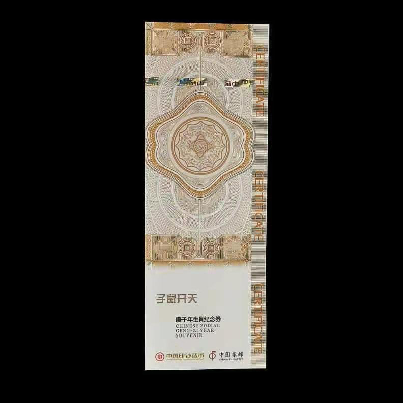 由中国印钞造币和中国集邮总公司联合权威发行《子鼠开天》纪念券。