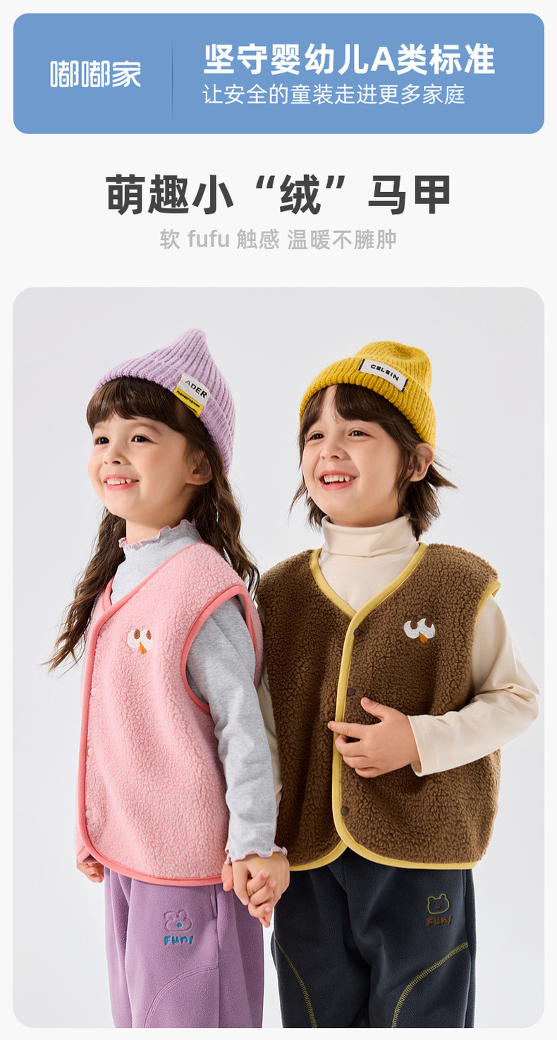 【限时限量】嘟嘟家儿童马甲男童冬季奥粒绒衣服婴儿背心女童好看上衣宝宝童装