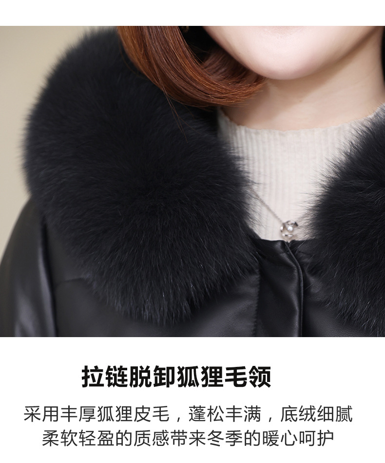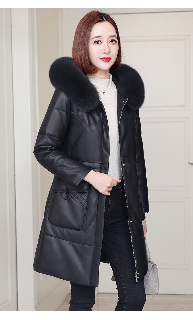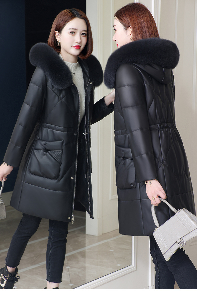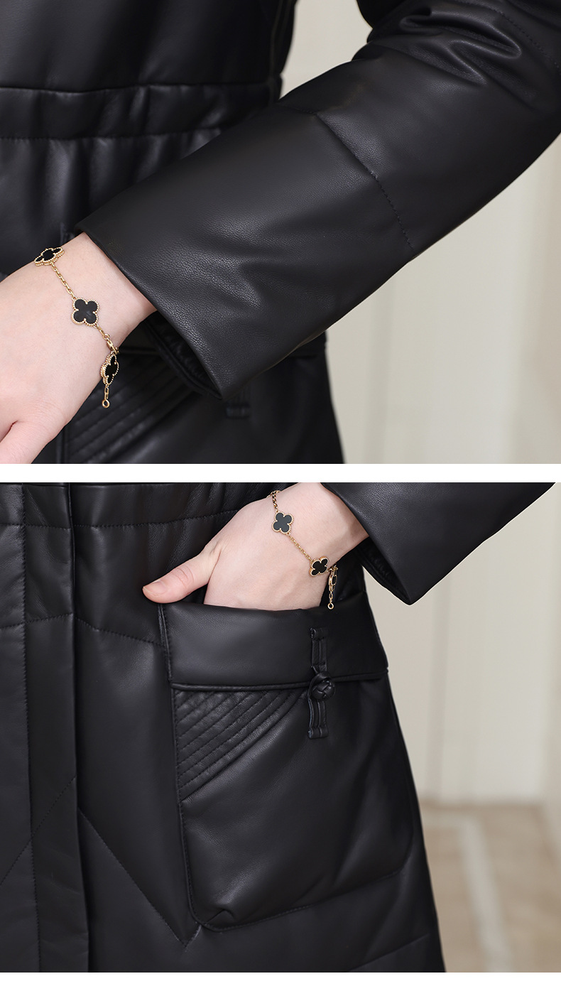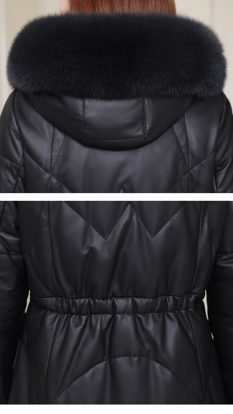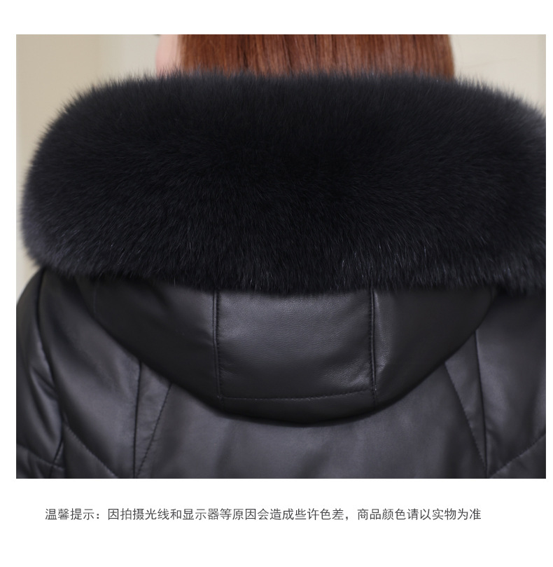 丁摩 海宁真皮皮衣女连帽中长款真皮羽绒服绵羊皮皮草外套z2402
