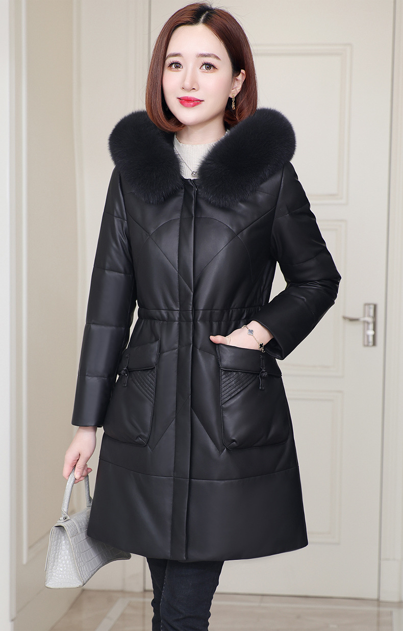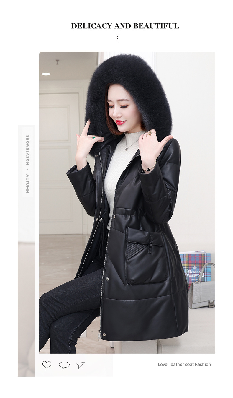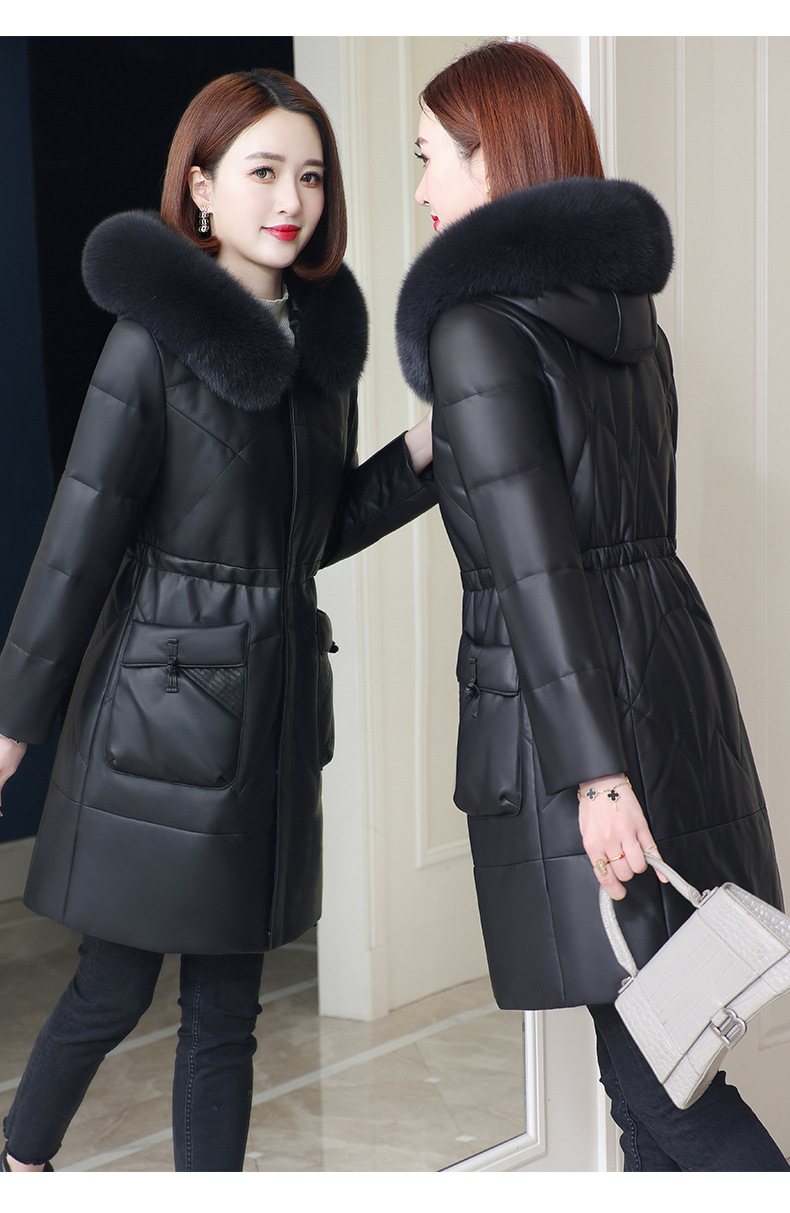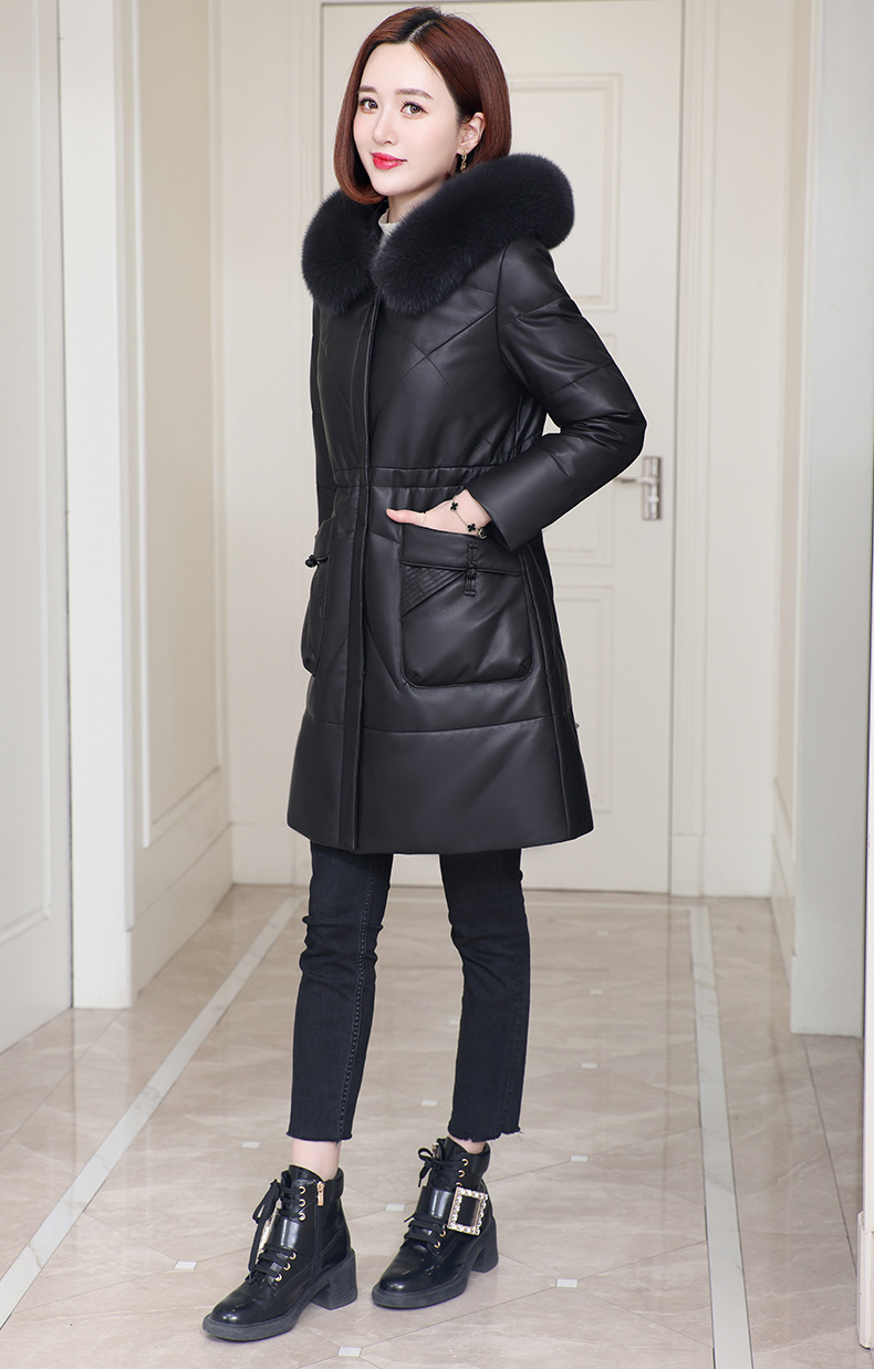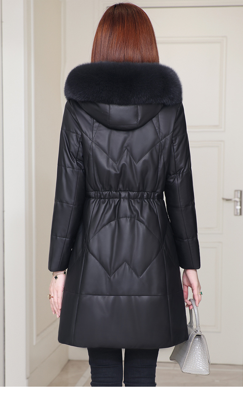 丁摩 海宁真皮皮衣女连帽中长款真皮羽绒服绵羊皮皮草外套z2402