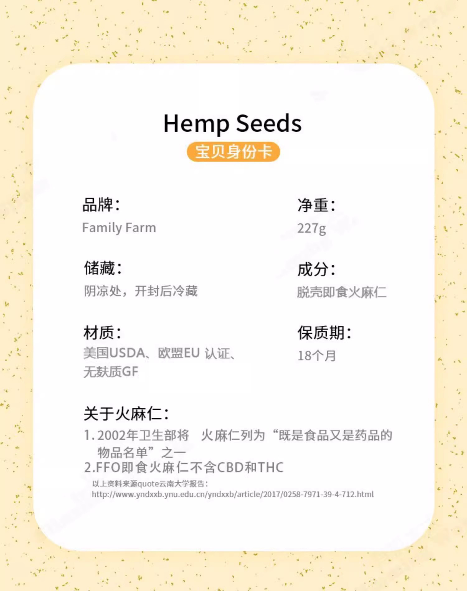Family Farm即食火麻仁籽脱壳健身值物蛋白补充营养肠道