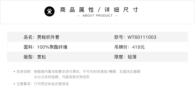 kelme卡尔美新品梭织外套春季男士宽松时尚休闲运动跑步衣
