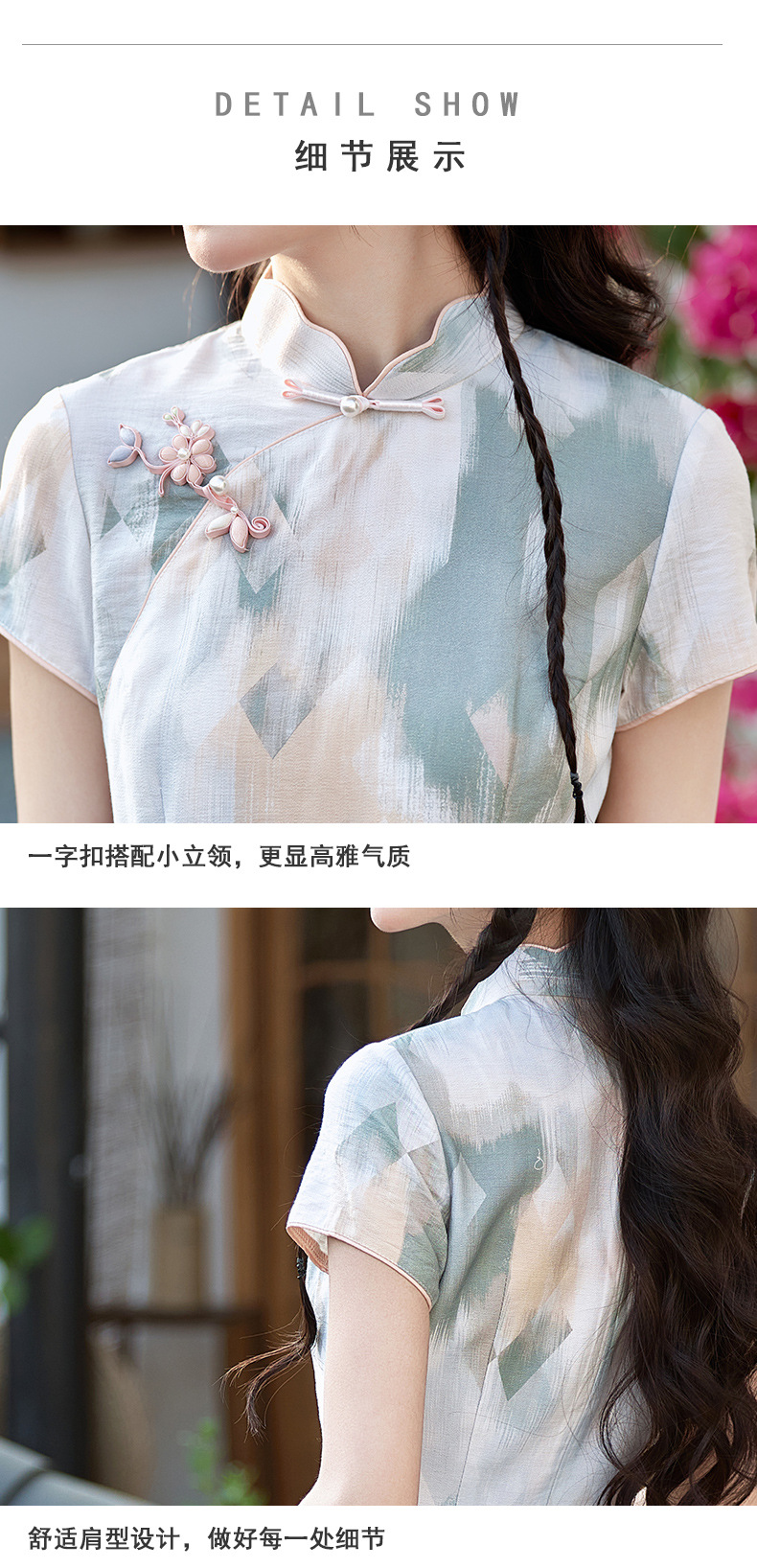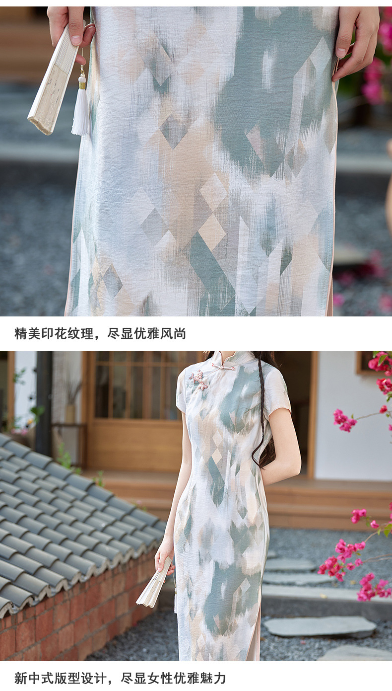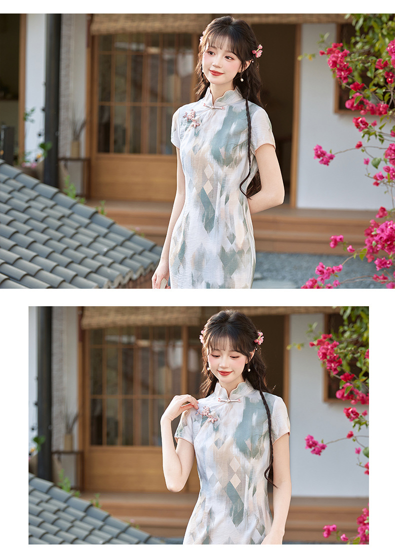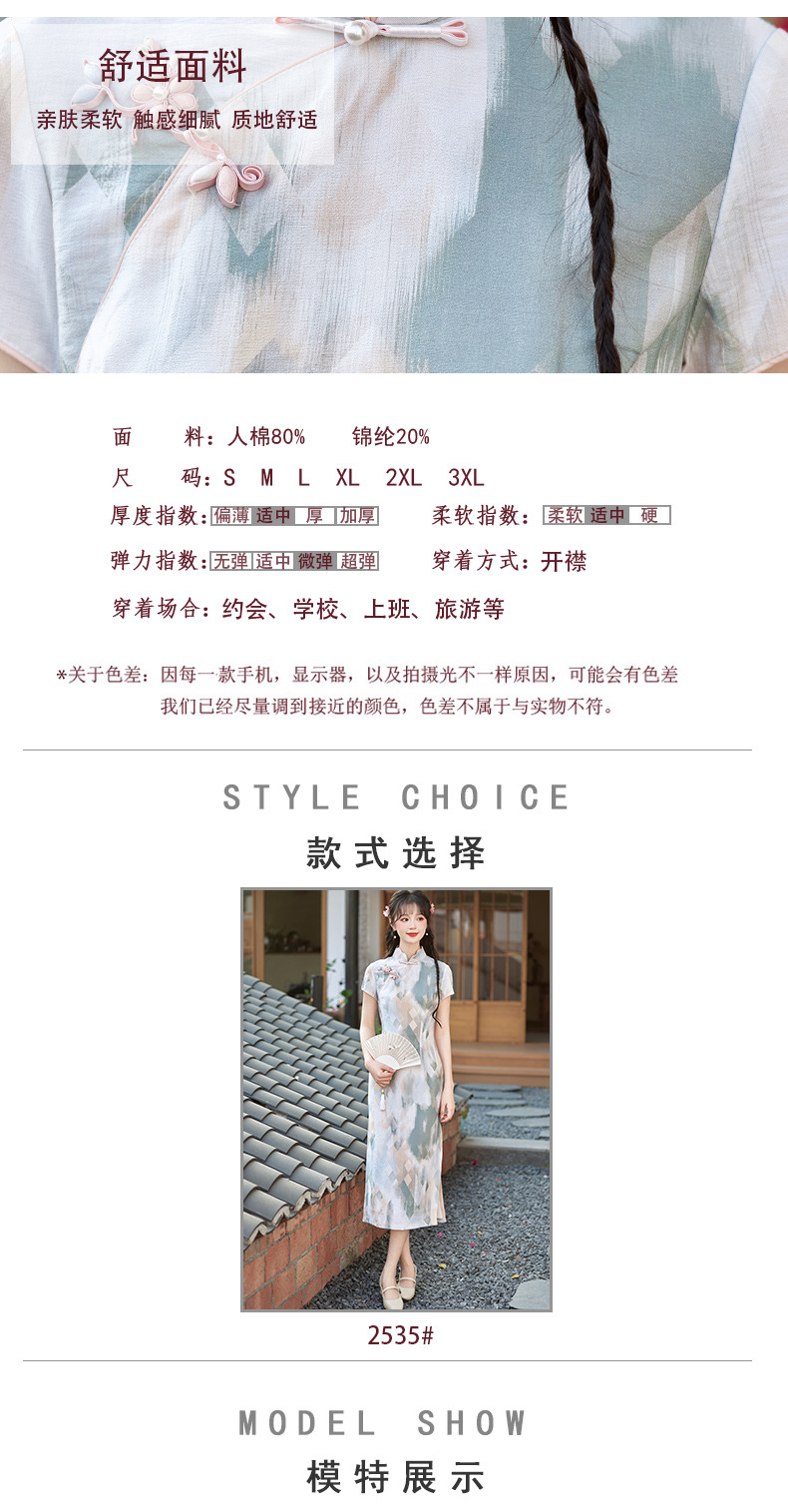 小清新甜美风锦棉印花旗袍,改良现代时尚珍珠扣少女旗袍BS-2535