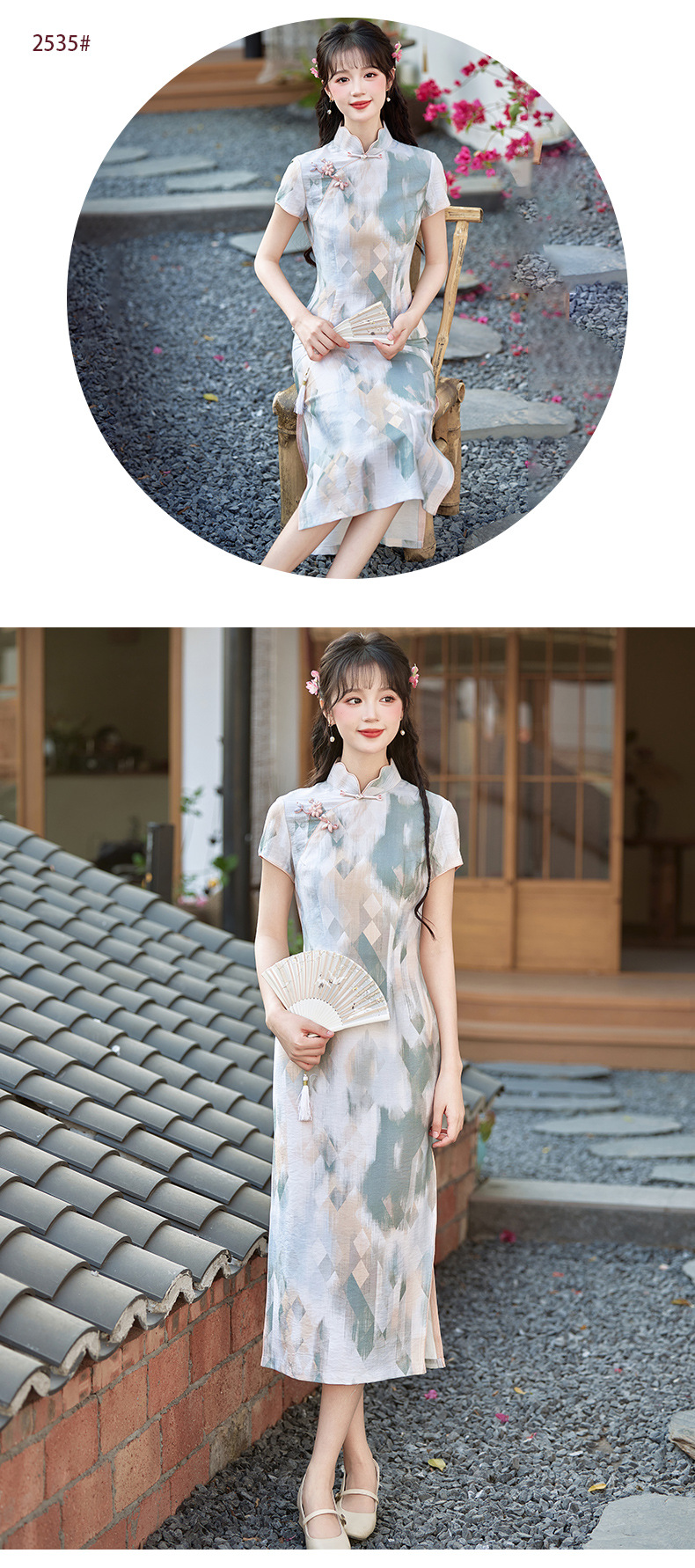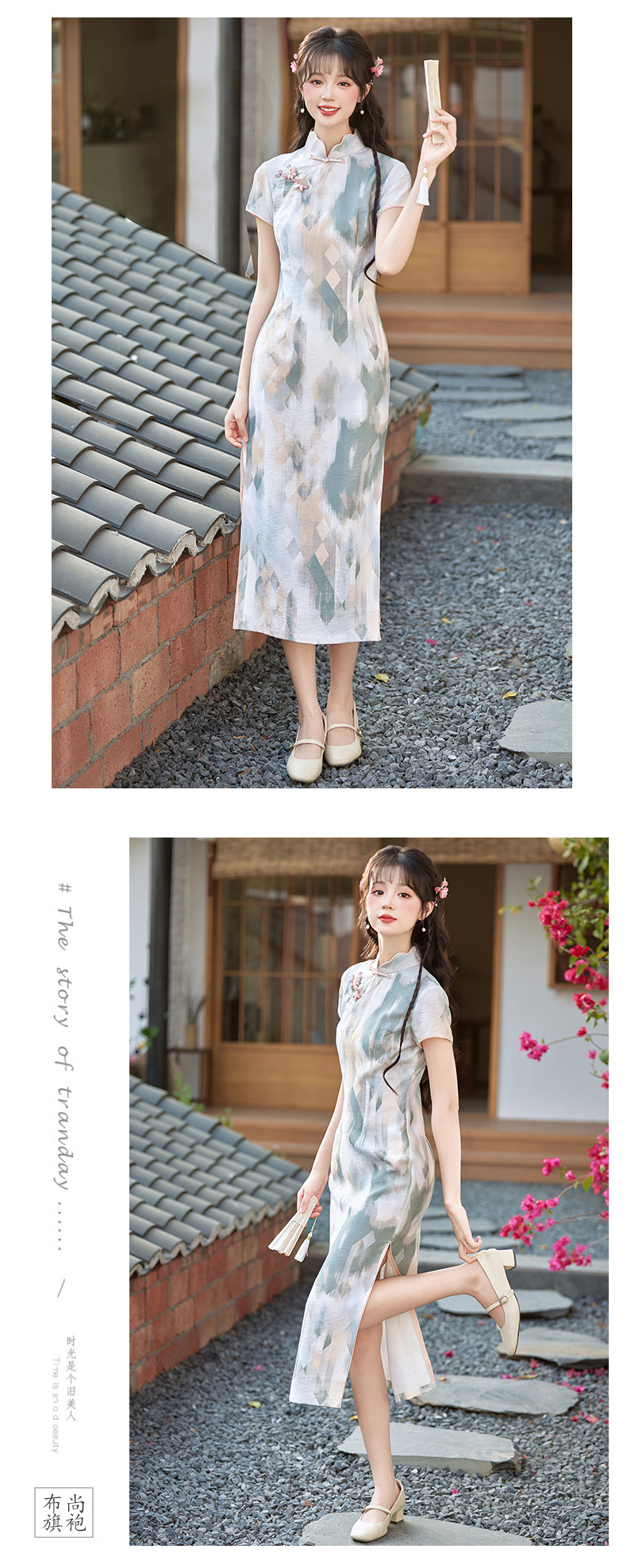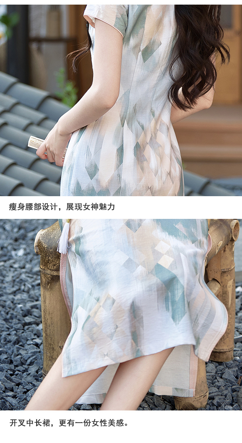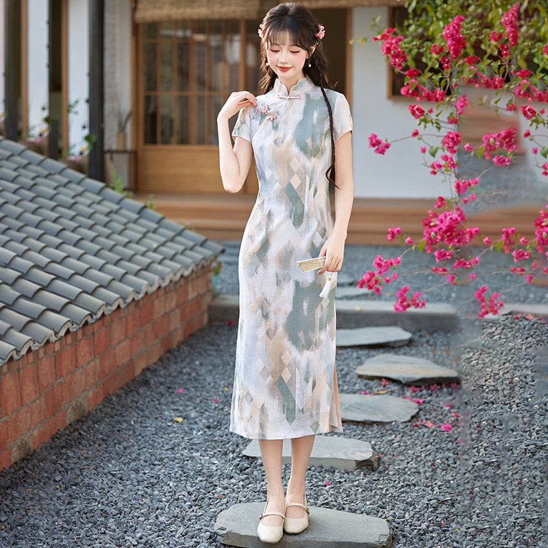 小清新甜美风锦棉印花旗袍,改良现代时尚珍珠扣少女旗袍BS-2535