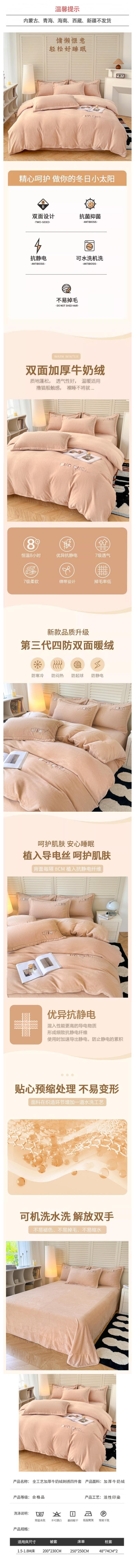 彼加曼 全工艺加厚牛奶绒刺绣四件套-米杏200*230cm BGM-T2540