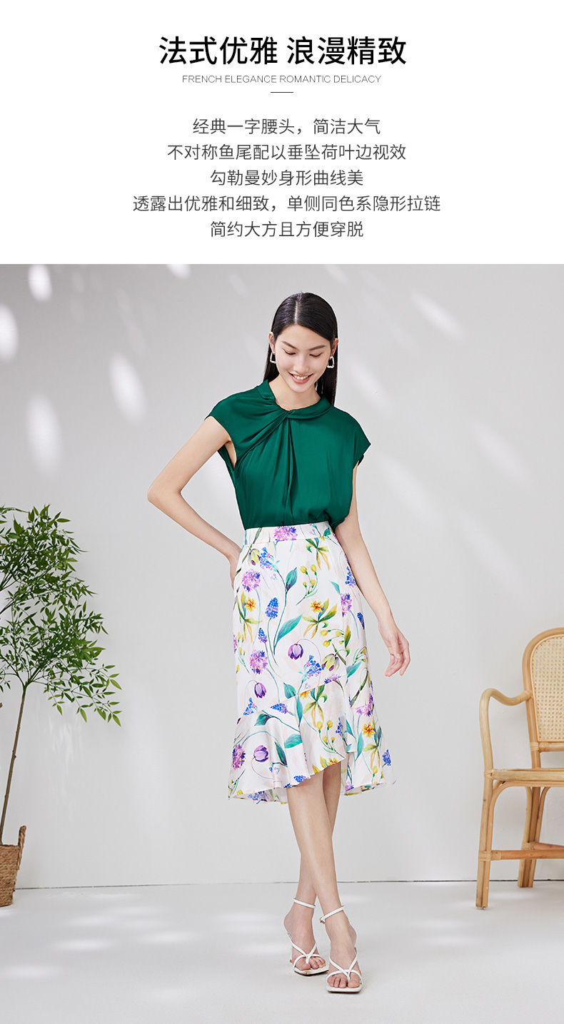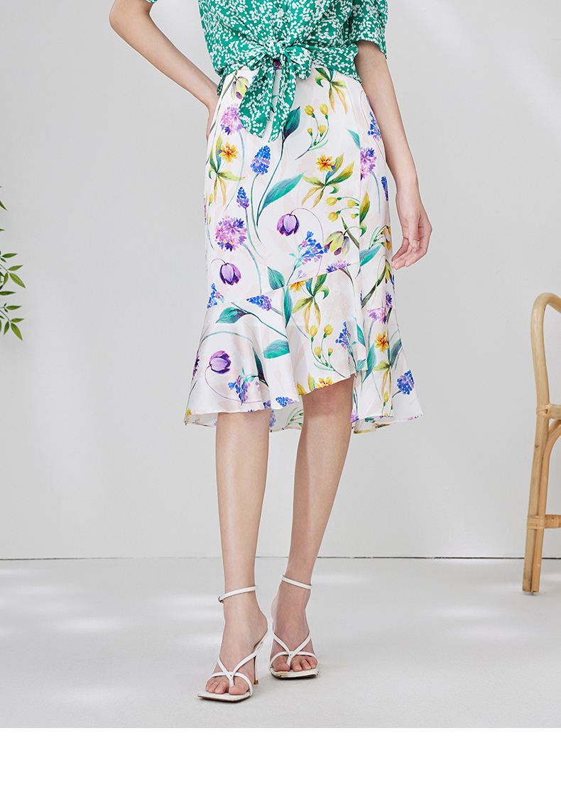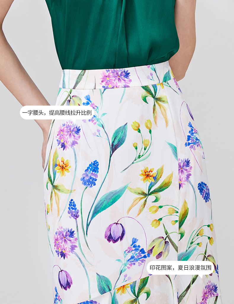 EITIE爱特爱夏季新款简约大方不规则裙摆印花半身裙7006712