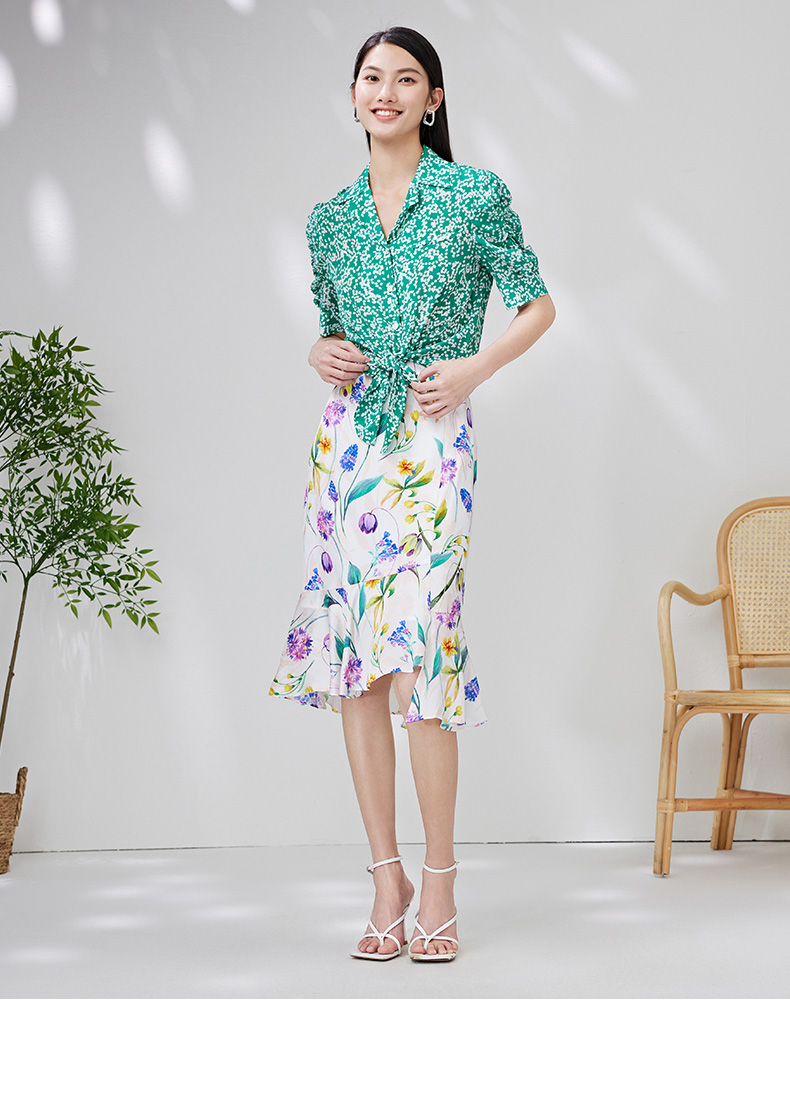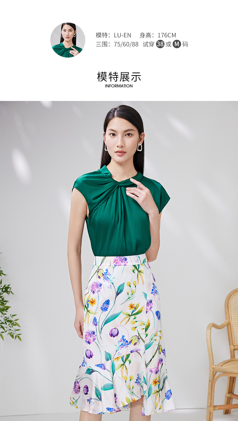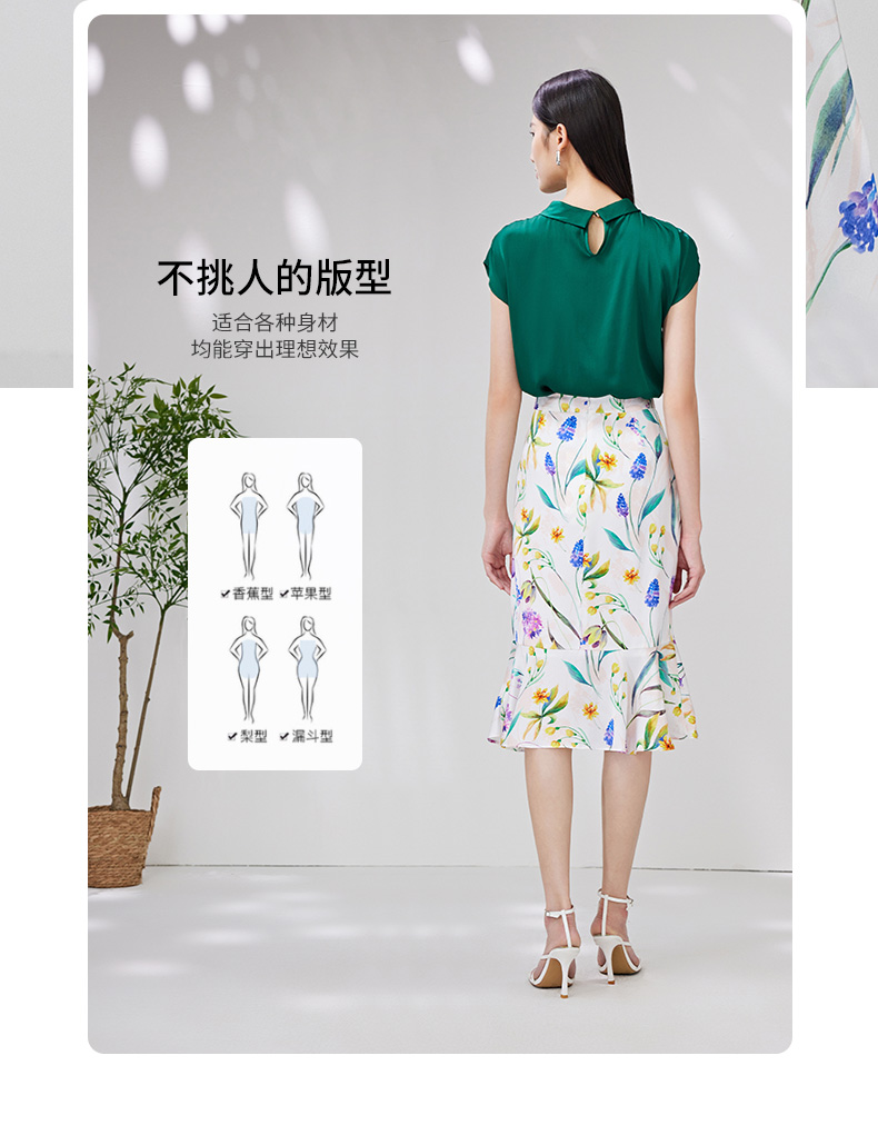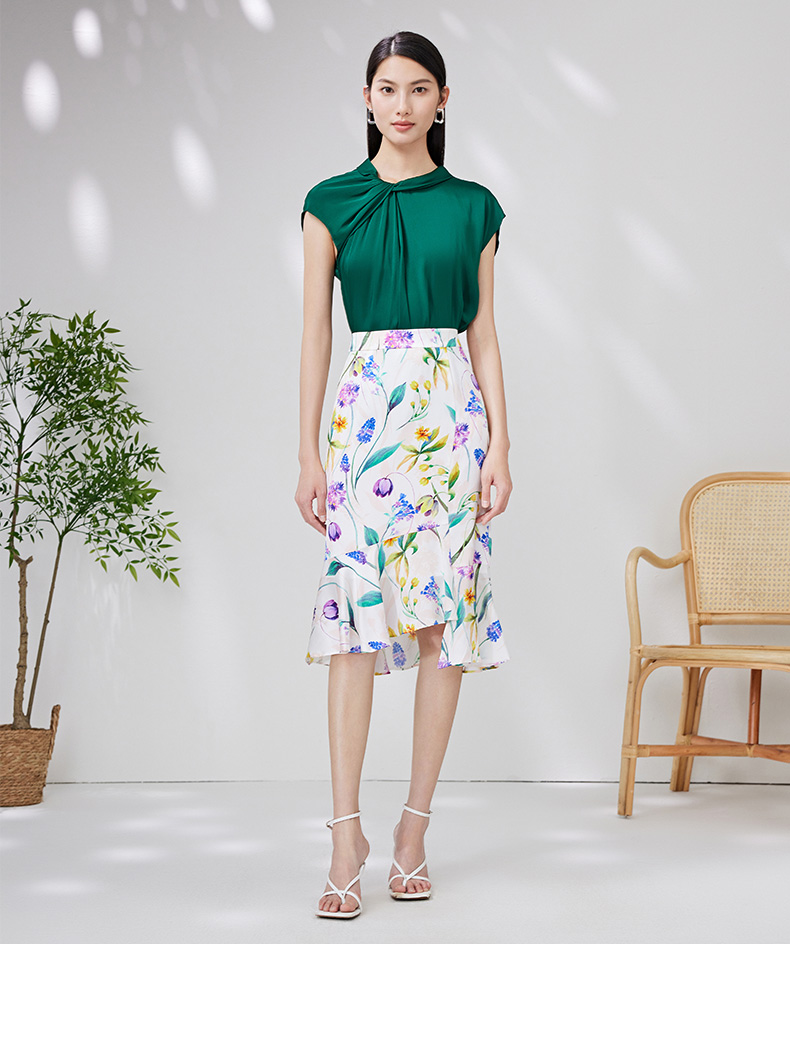 EITIE爱特爱夏季新款简约大方不规则裙摆印花半身裙7006712