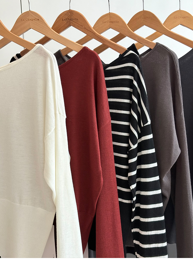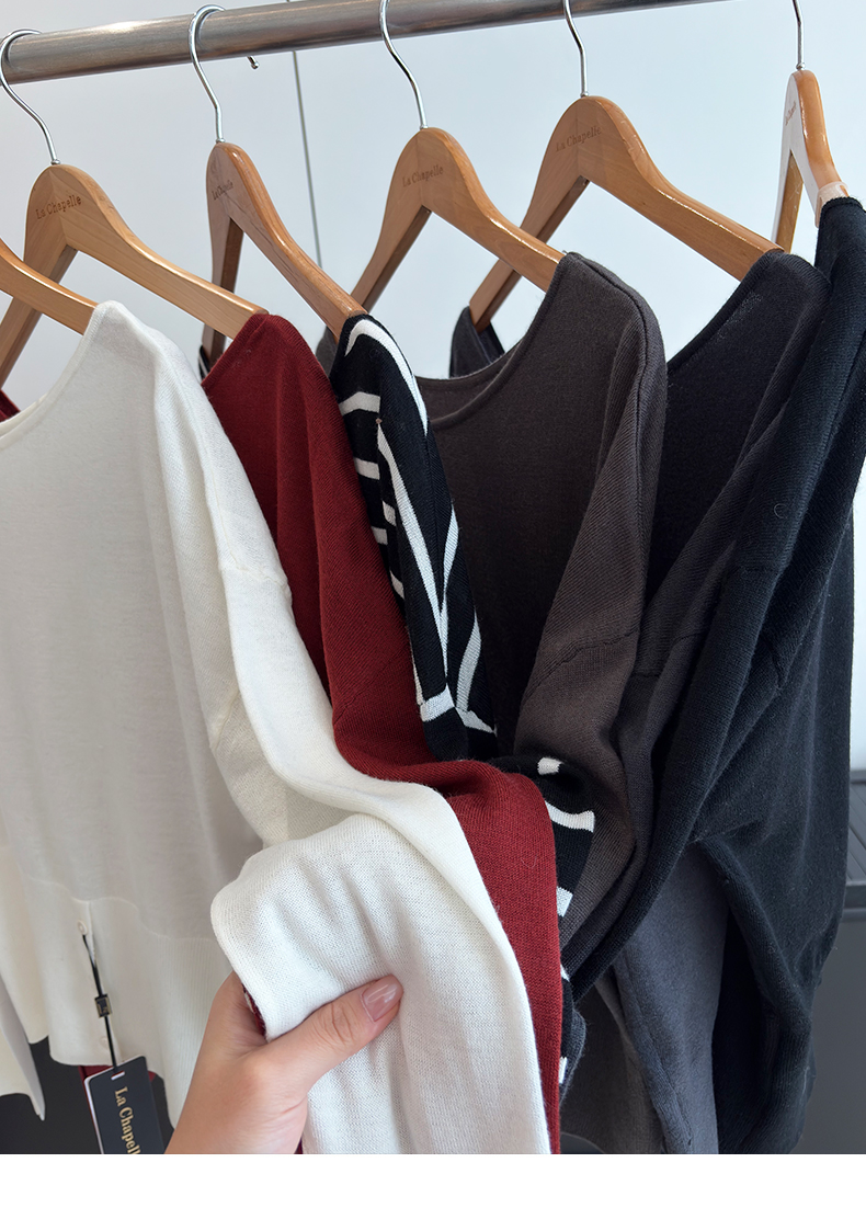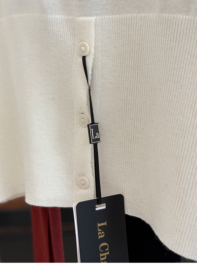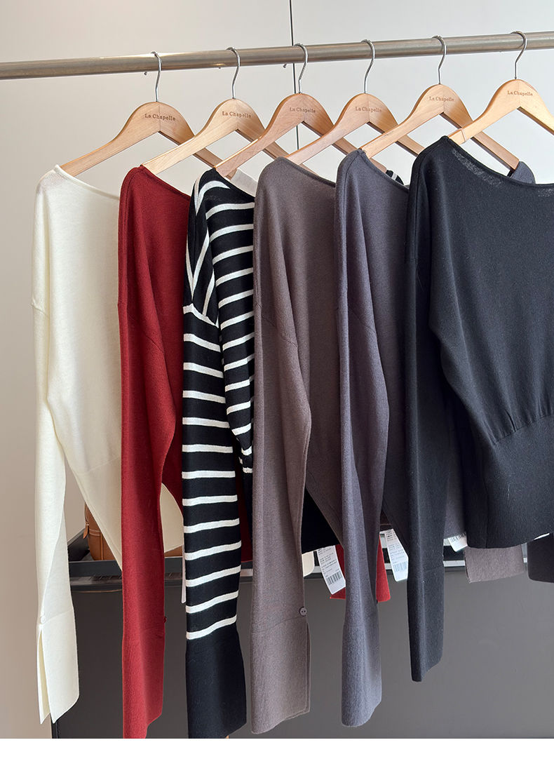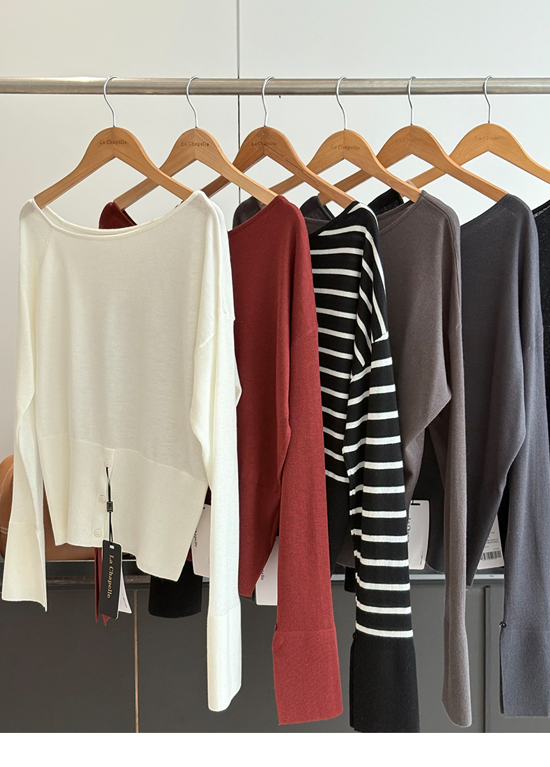 会员福利【性感斜肩+绵羊毛】拉夏贝尔/La Chapelle不规则设计感斜肩开衩气质长袖针织衫超高性价比
