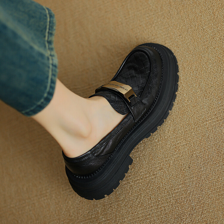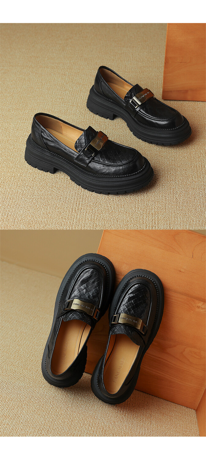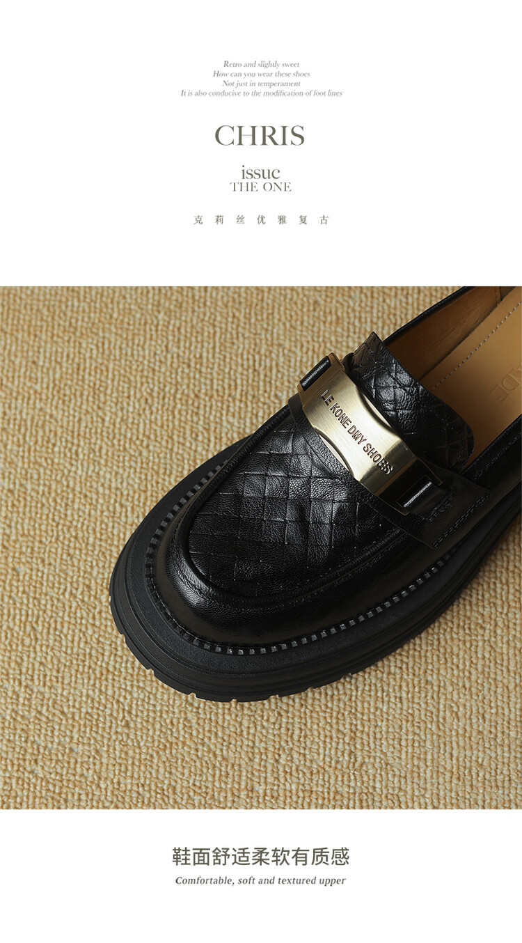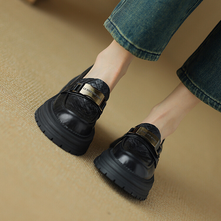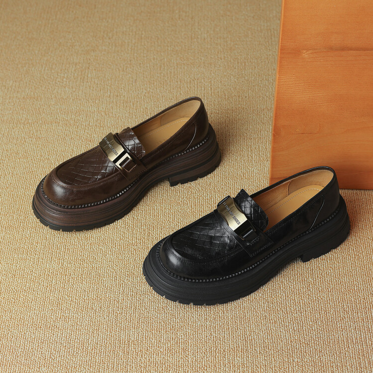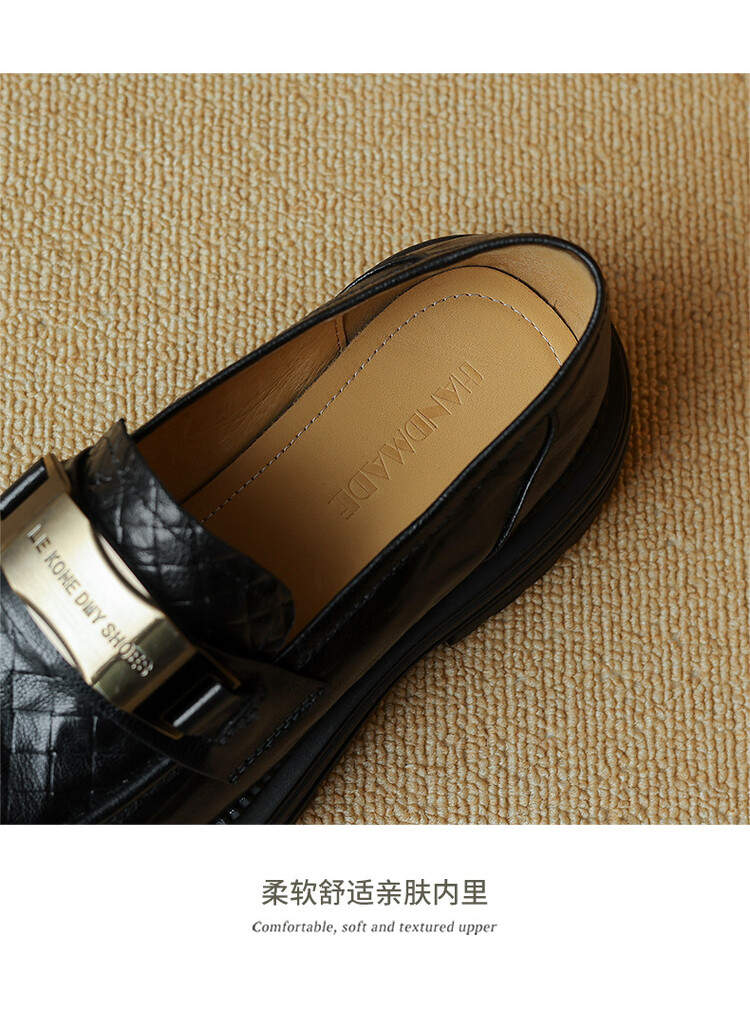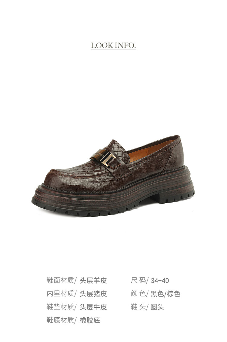 厚底复古金属扣网格粗跟,深口乐福鞋时装鞋羊皮女鞋HB&Z406