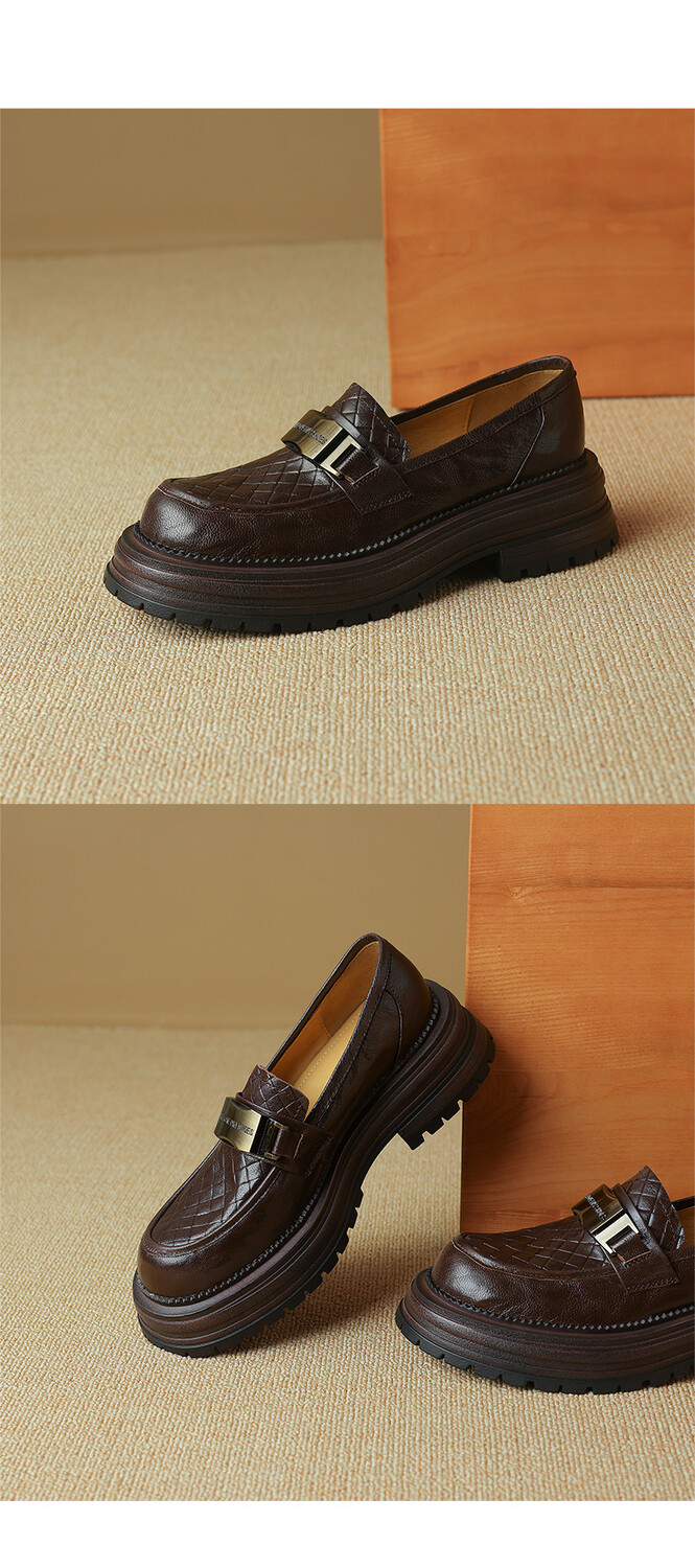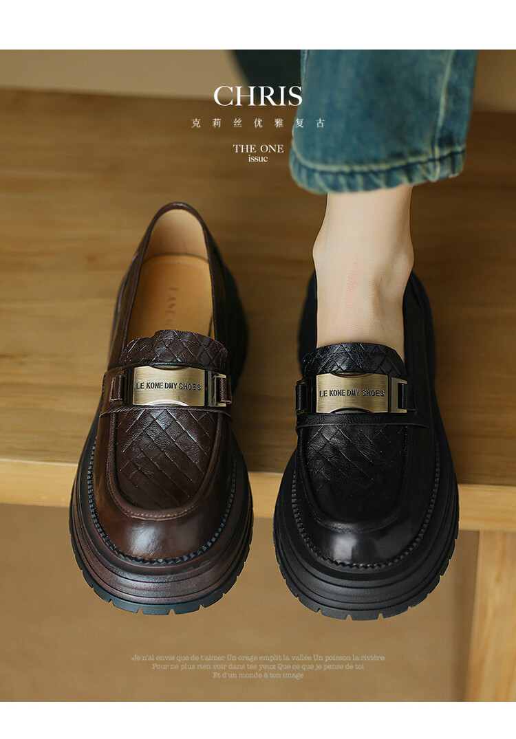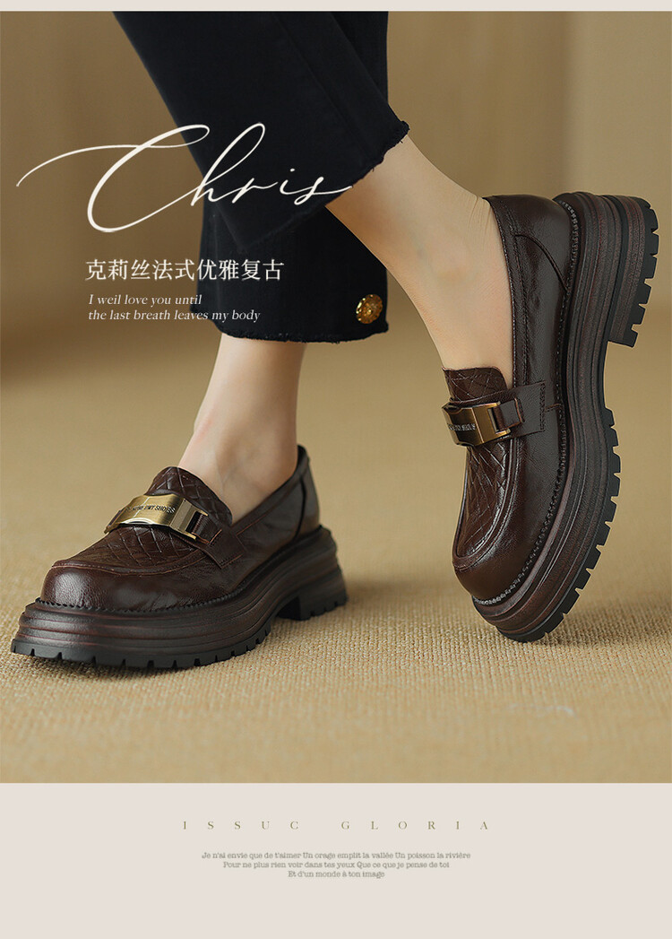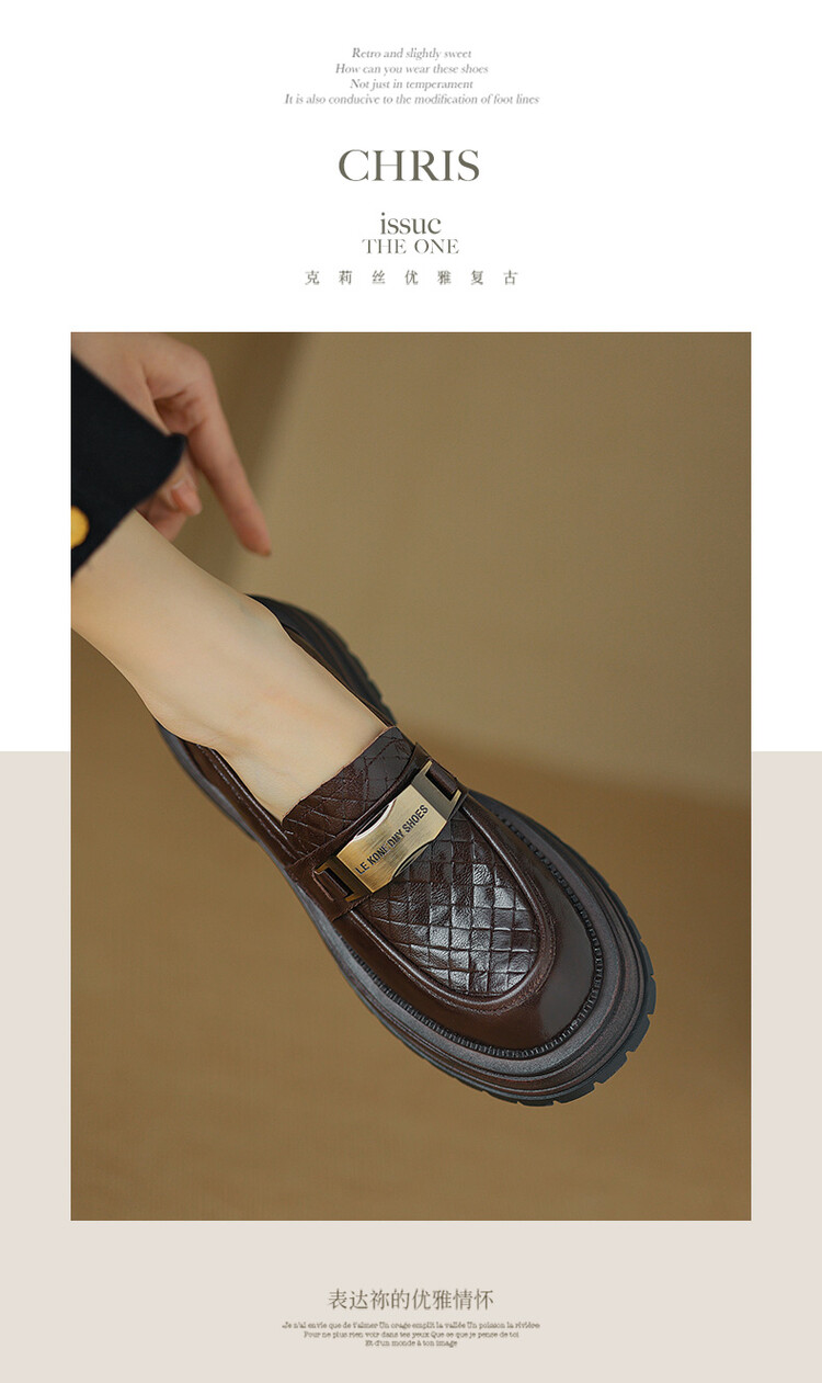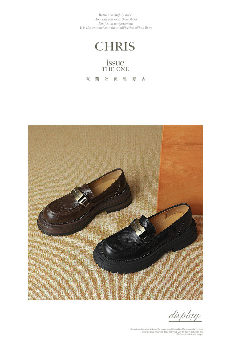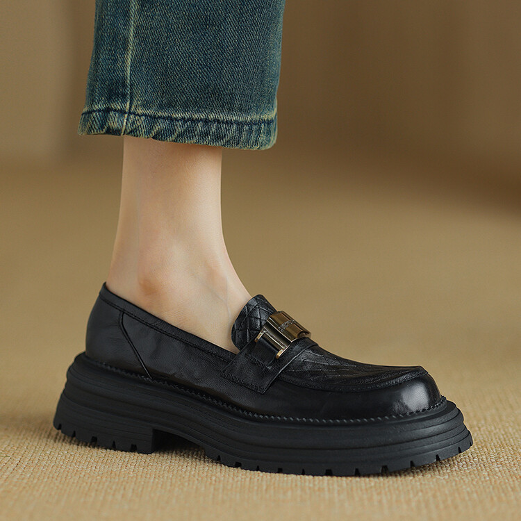 厚底复古金属扣网格粗跟,深口乐福鞋时装鞋羊皮女鞋HB&Z406