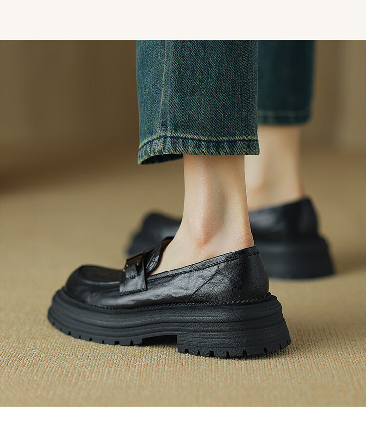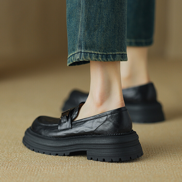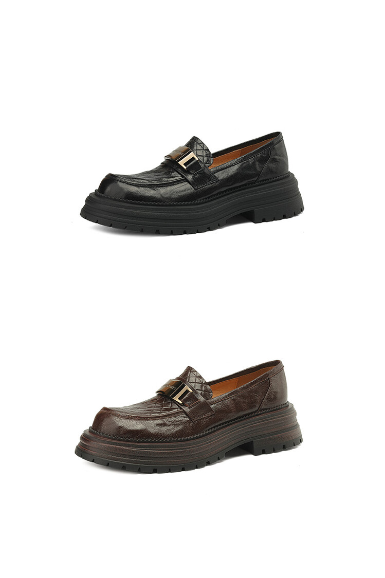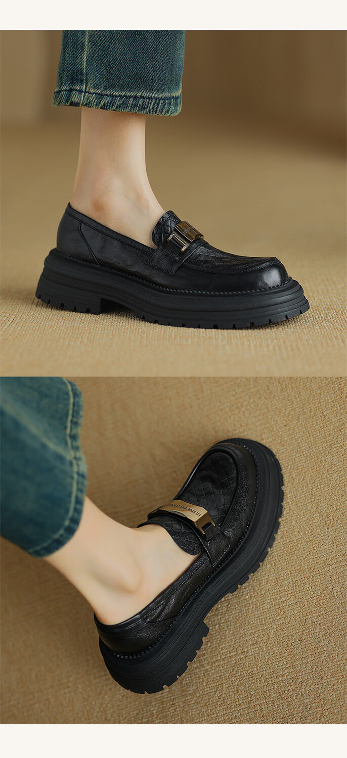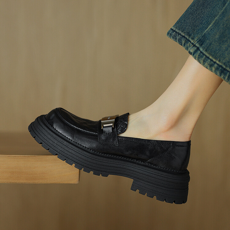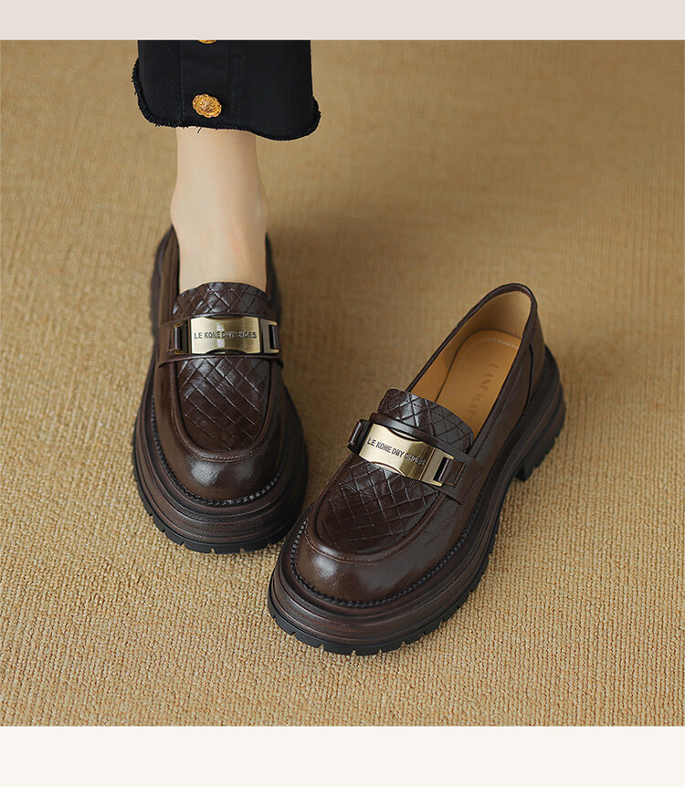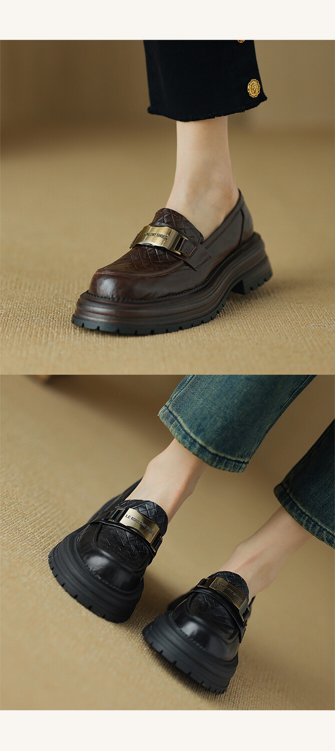 厚底复古金属扣网格粗跟,深口乐福鞋时装鞋羊皮女鞋HB&Z406