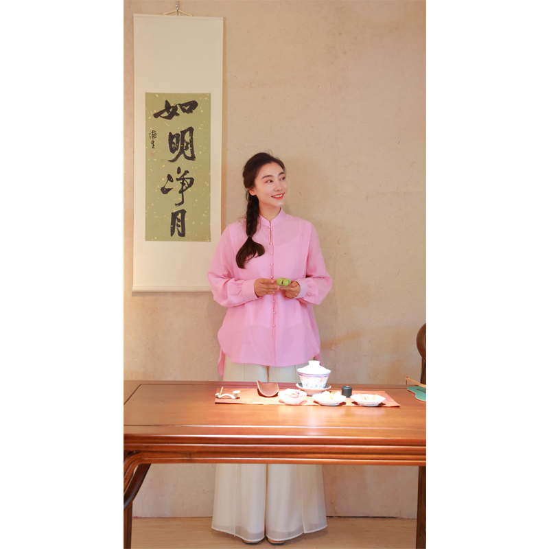 【抖音专属】凝香·新中式衬衣(25710052莲红-结缘款)