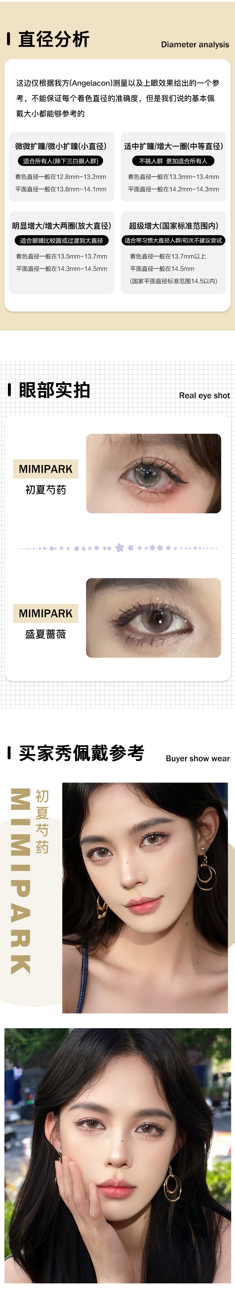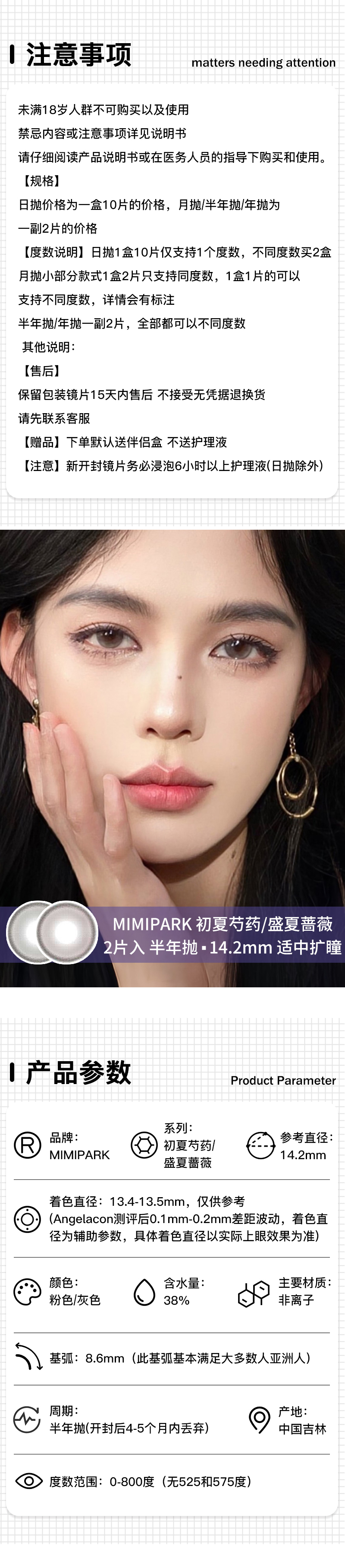 MIMIPARK / 初夏芍药/盛夏蔷薇 / 半年抛美瞳 / 2片入 / 14.2mm / 适中扩瞳通透自然水光感