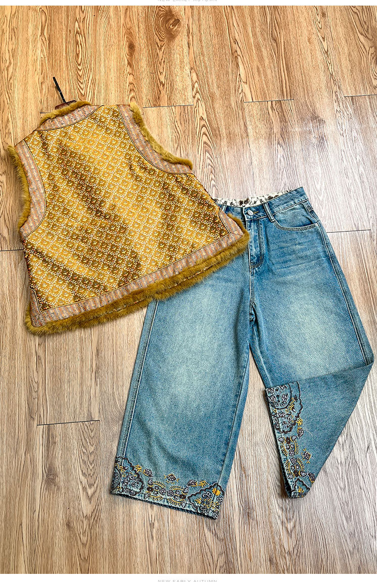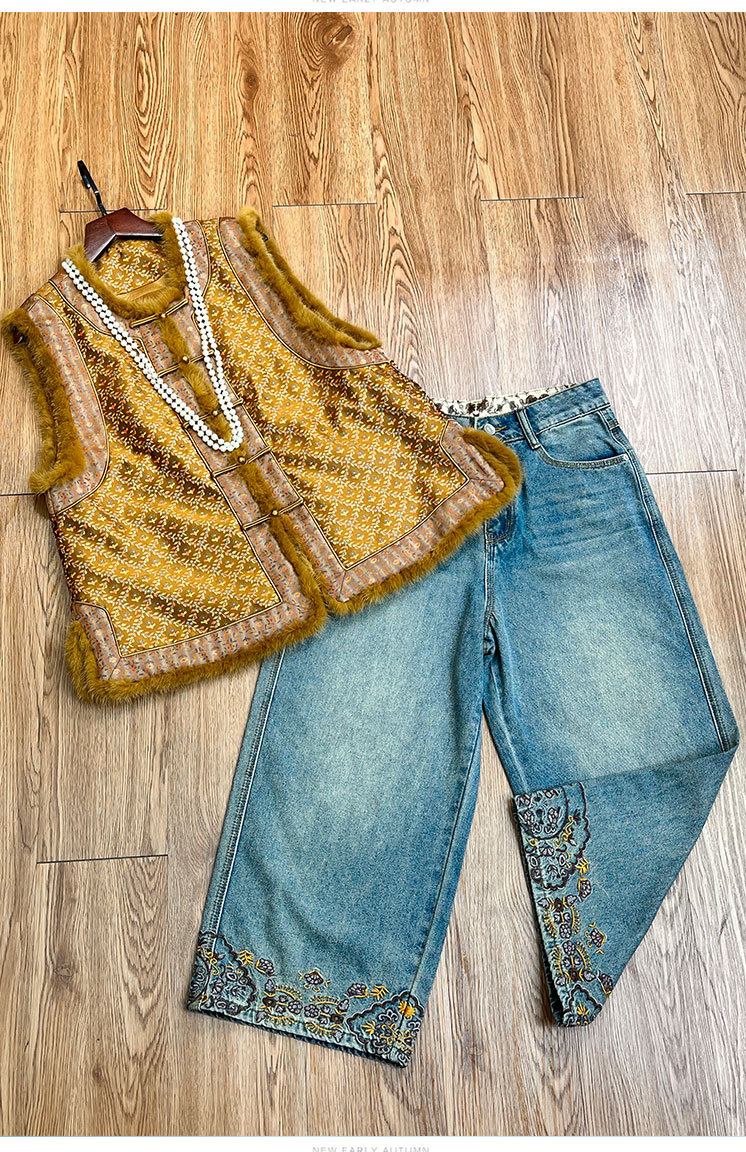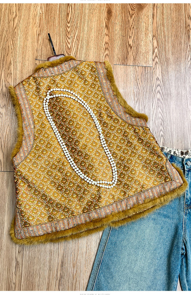 OG 8697新中式国风水貂毛时尚拼接圆领贵气夹棉开衫马甲 商品图4