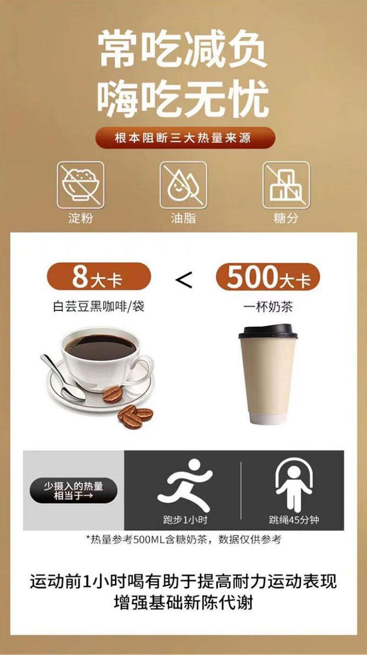 白芸豆黑咖啡 无蔗糖黑咖啡口感醇香细腻 燃力快车道无蔗糖黑咖啡