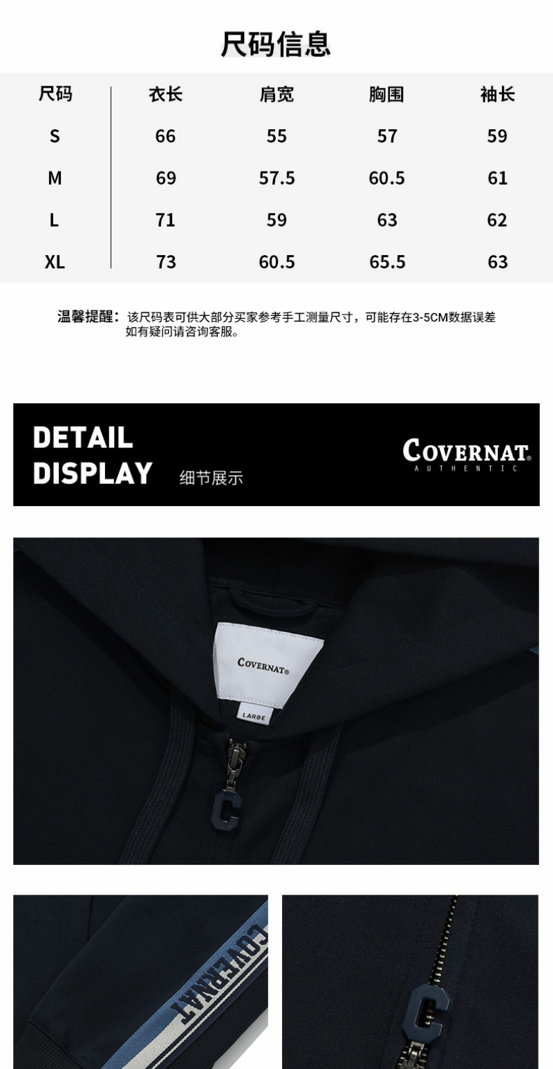 covernat韩国潮牌复古宽松休闲时尚连帽拉链衫2025春夏新CO2401HZ04