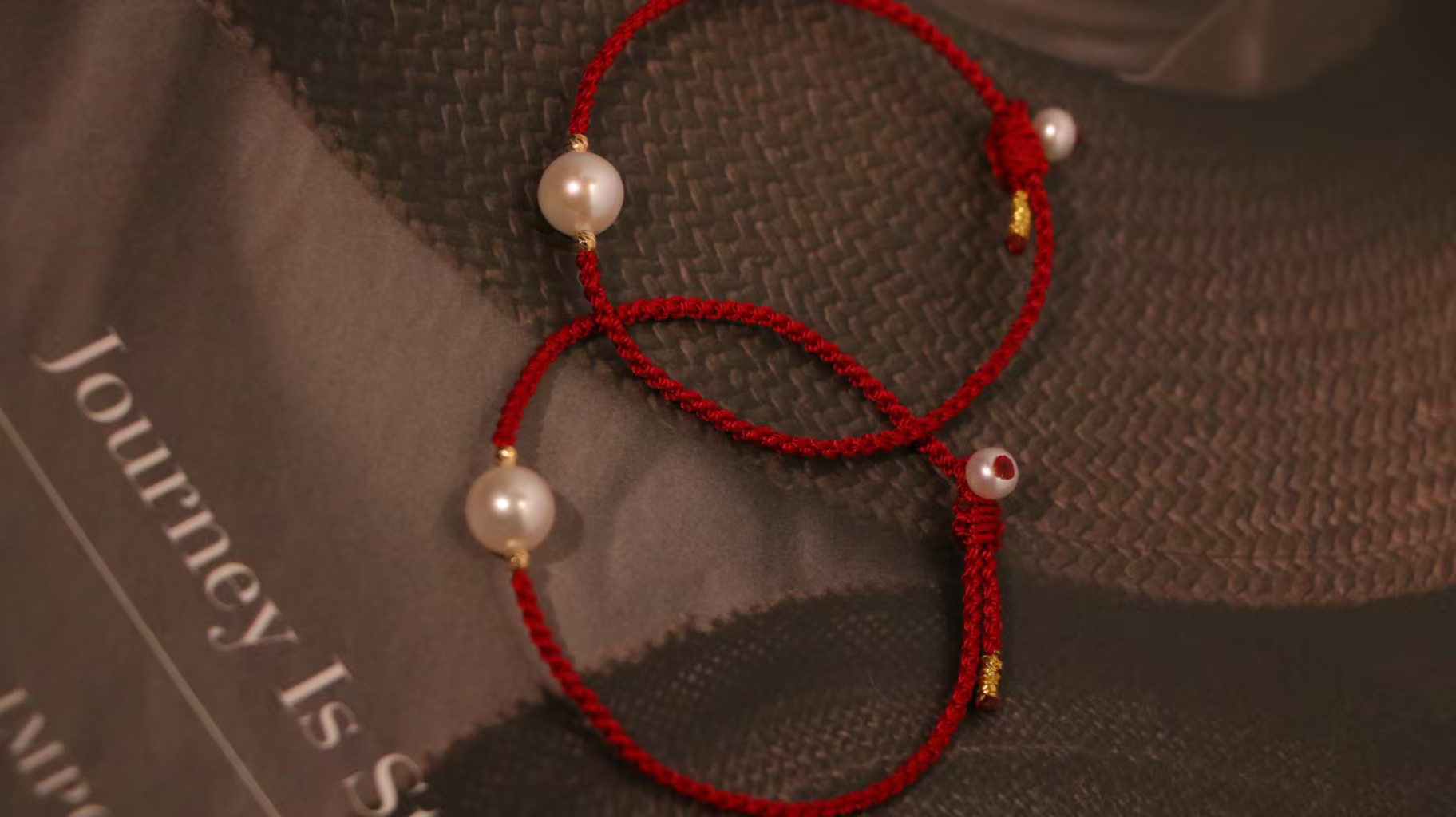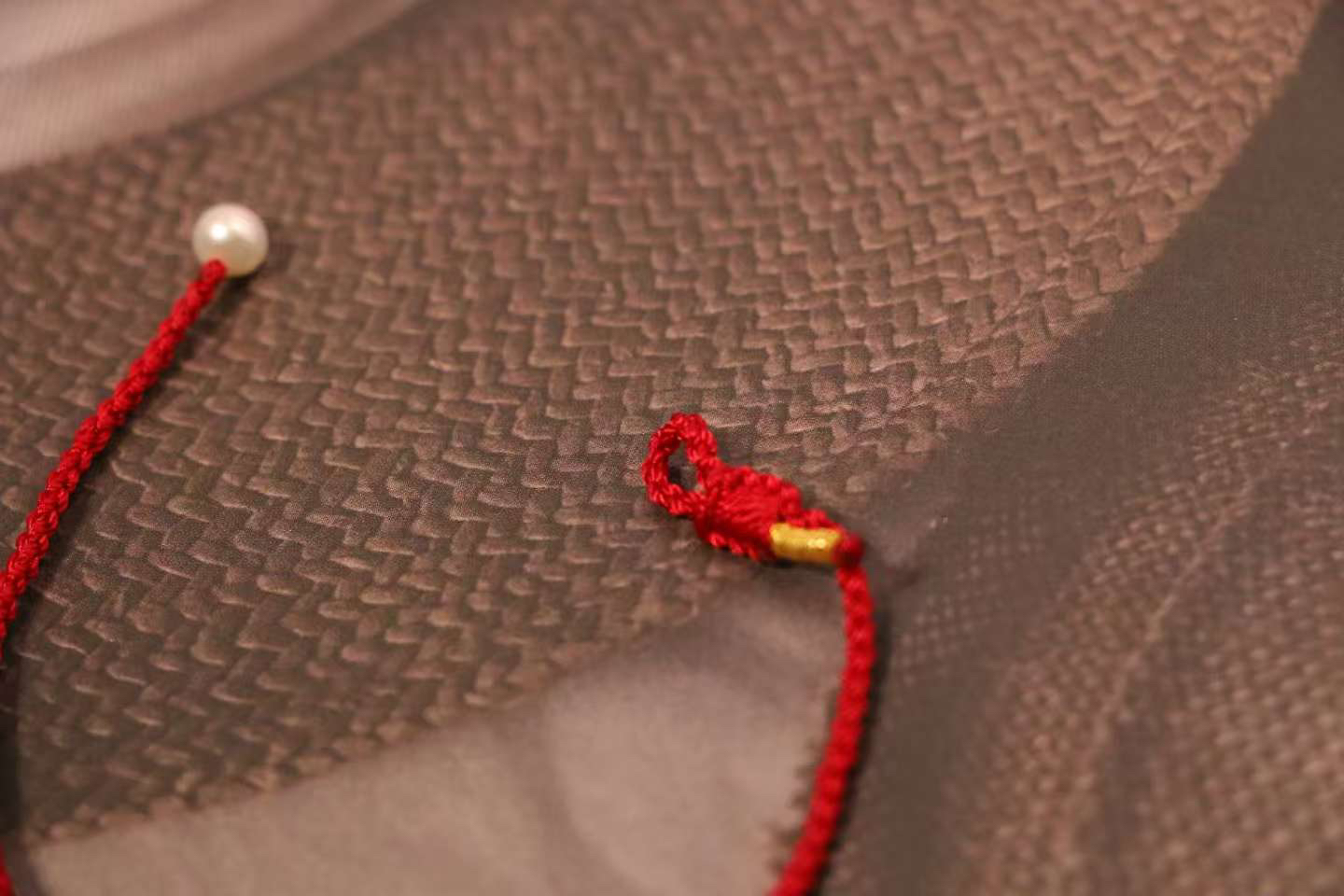 珠子是淡水珍珠8-9mm,我们选了很好看的复古风酒红色绳,两边18k金爆闪镭射金球,上手显白,提精气神。