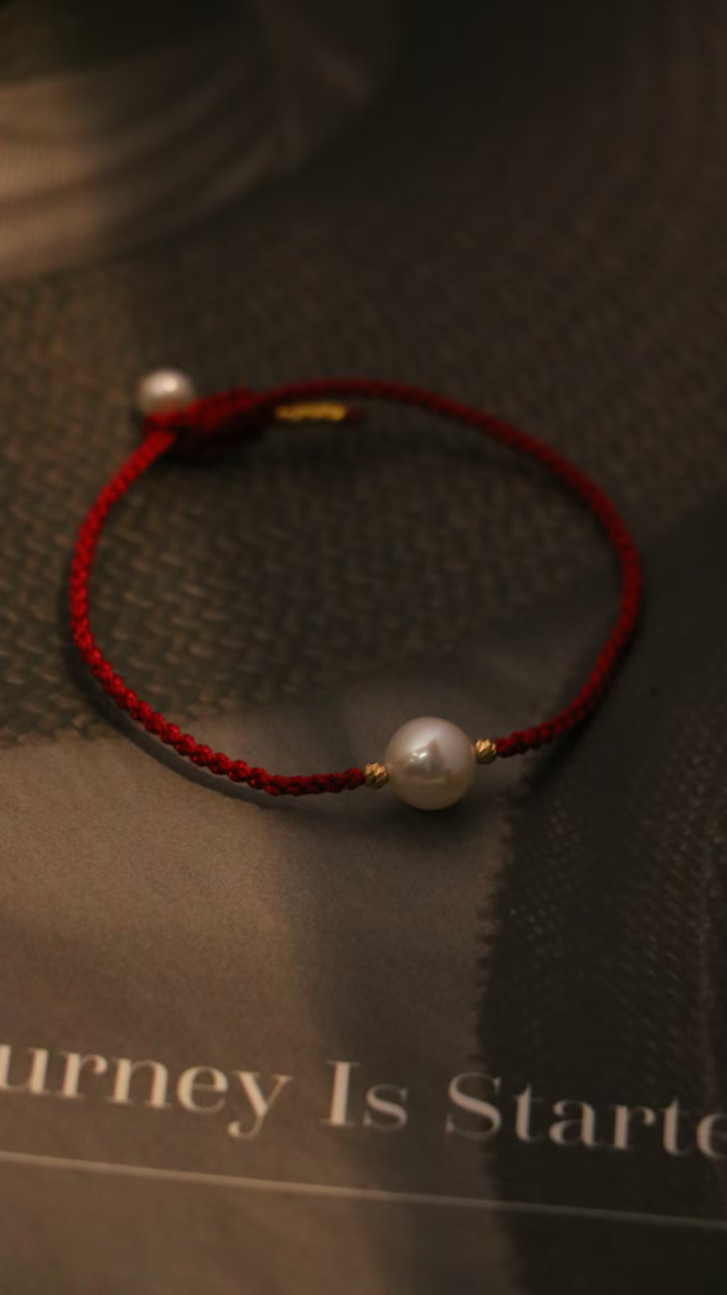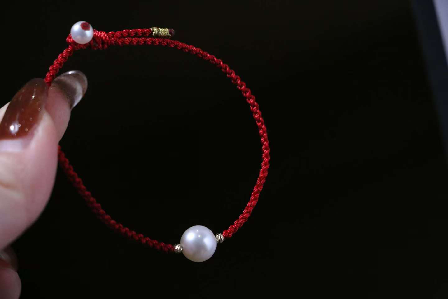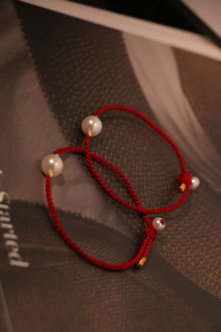 甄珠贝 新年&本命红绳手链 淡水珍珠8-9mm 很好看的复古风酒红色绳,两边18k金爆闪镭射金球,尾部点缀一颗5mm小珍珠,可调节手围