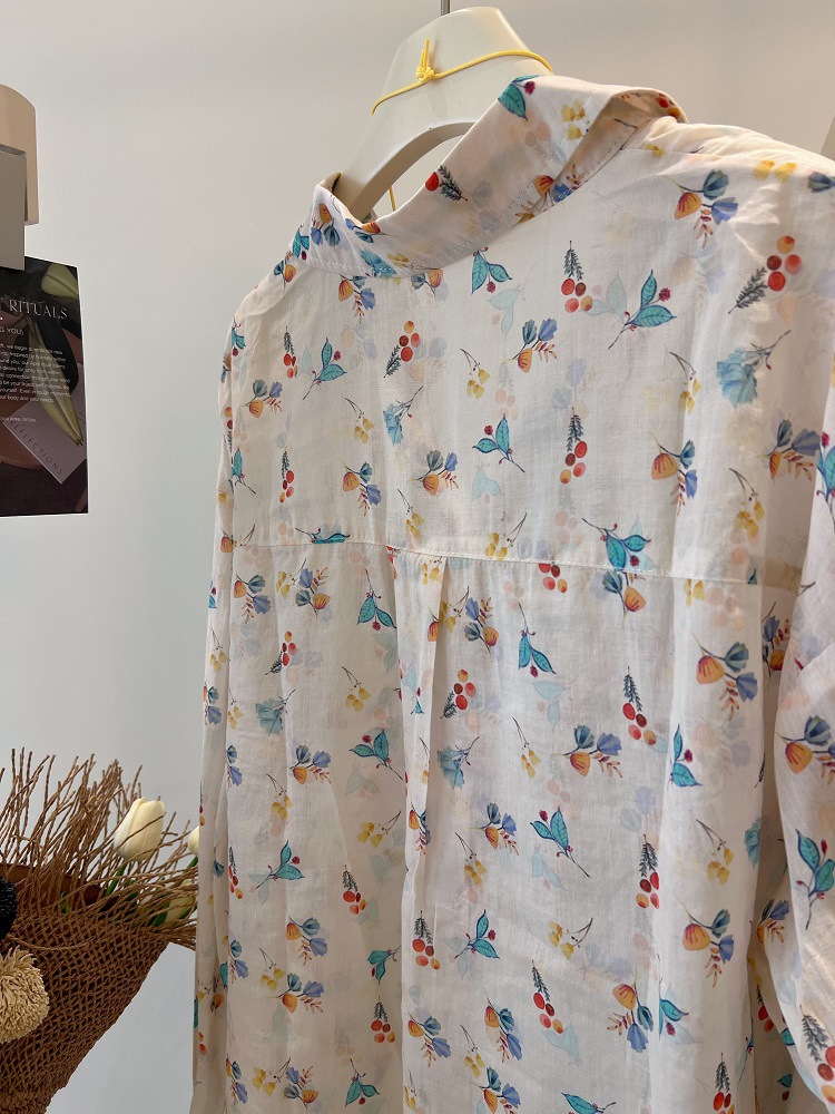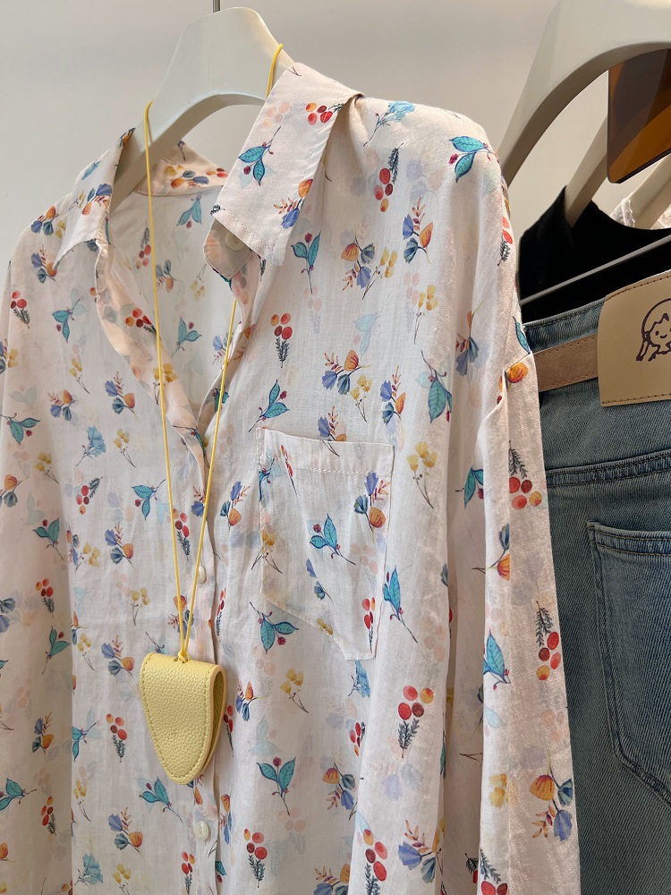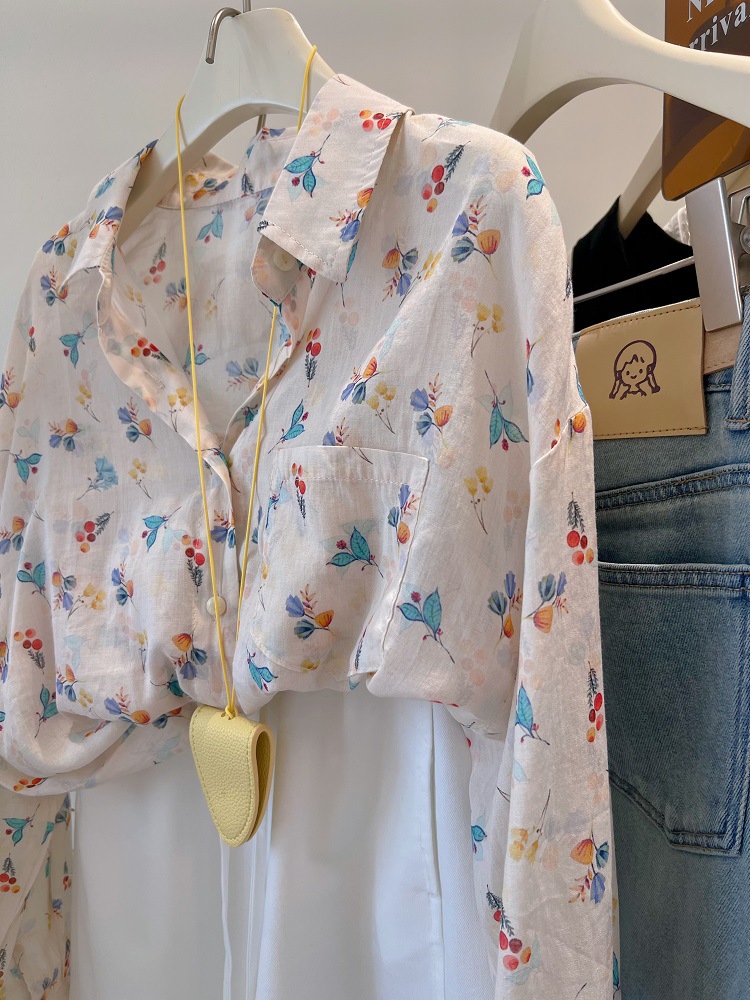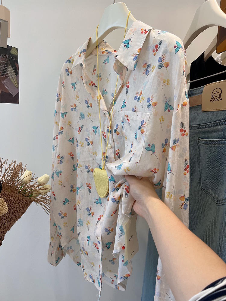 C039-9372新款2025休闲港风复古甜美碎花松弛感防晒衬衫外套女衬衣上衣女