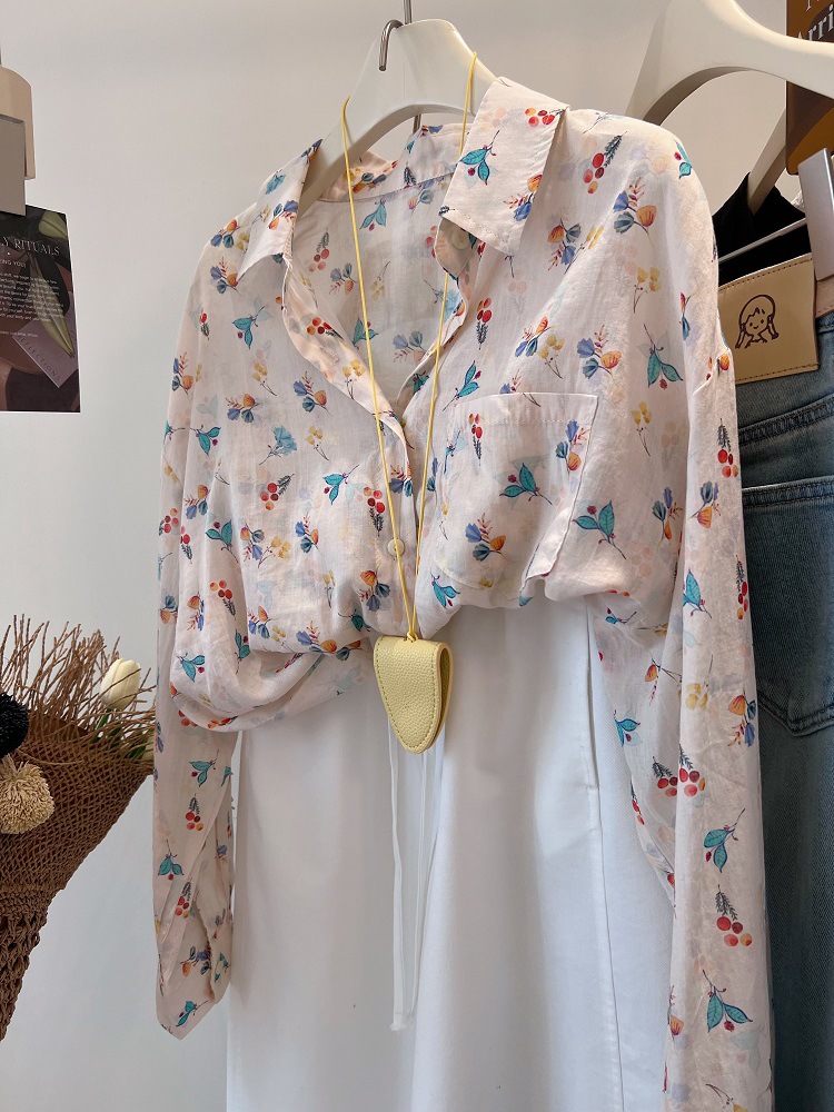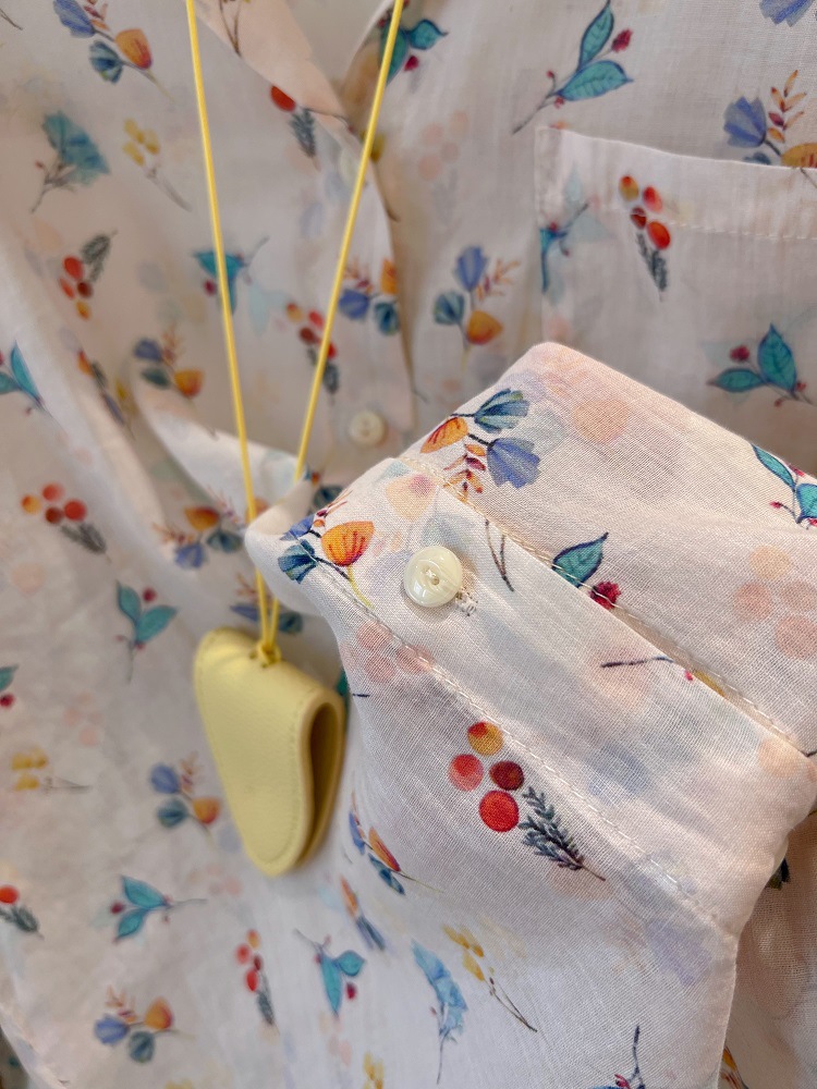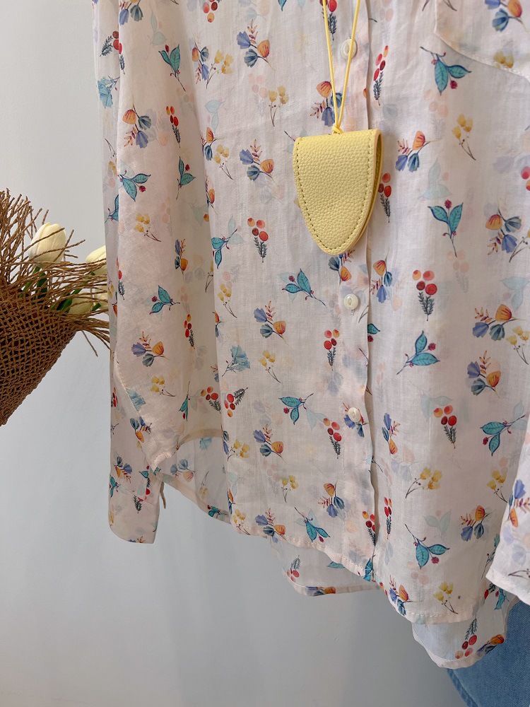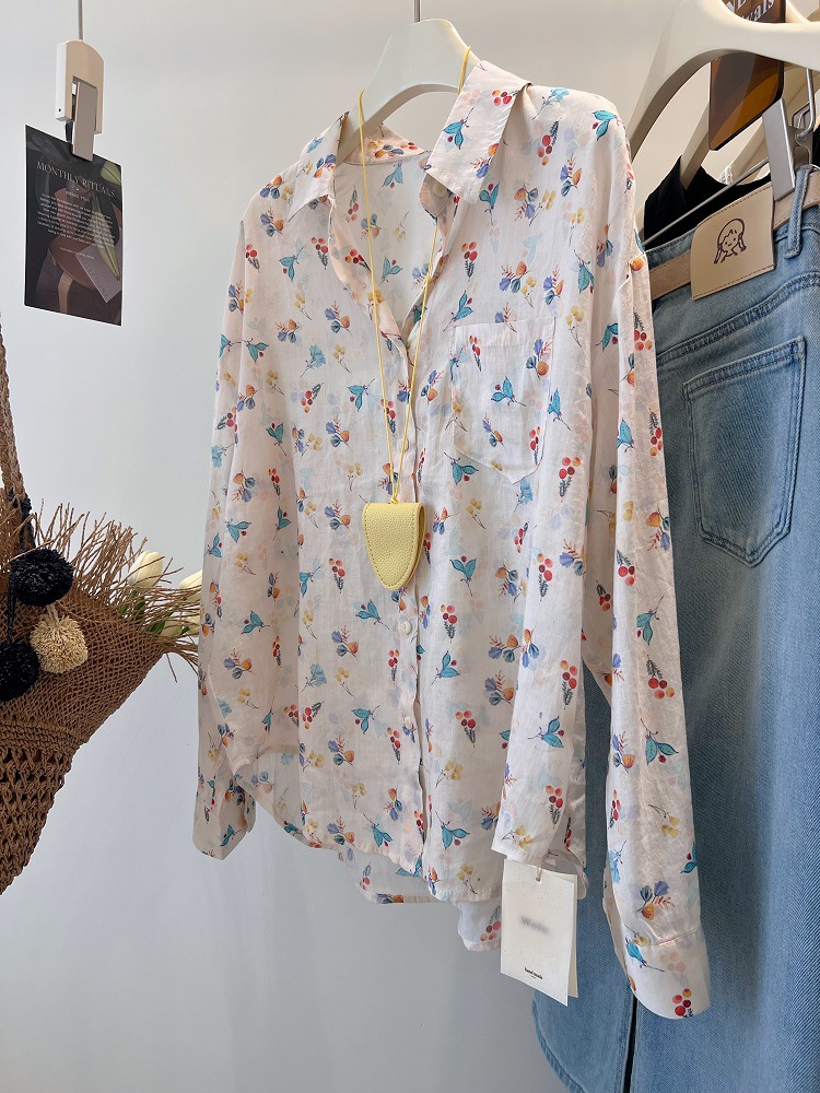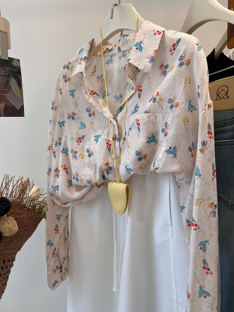 C039-9372新款2025休闲港风复古甜美碎花松弛感防晒衬衫外套女衬衣上衣女