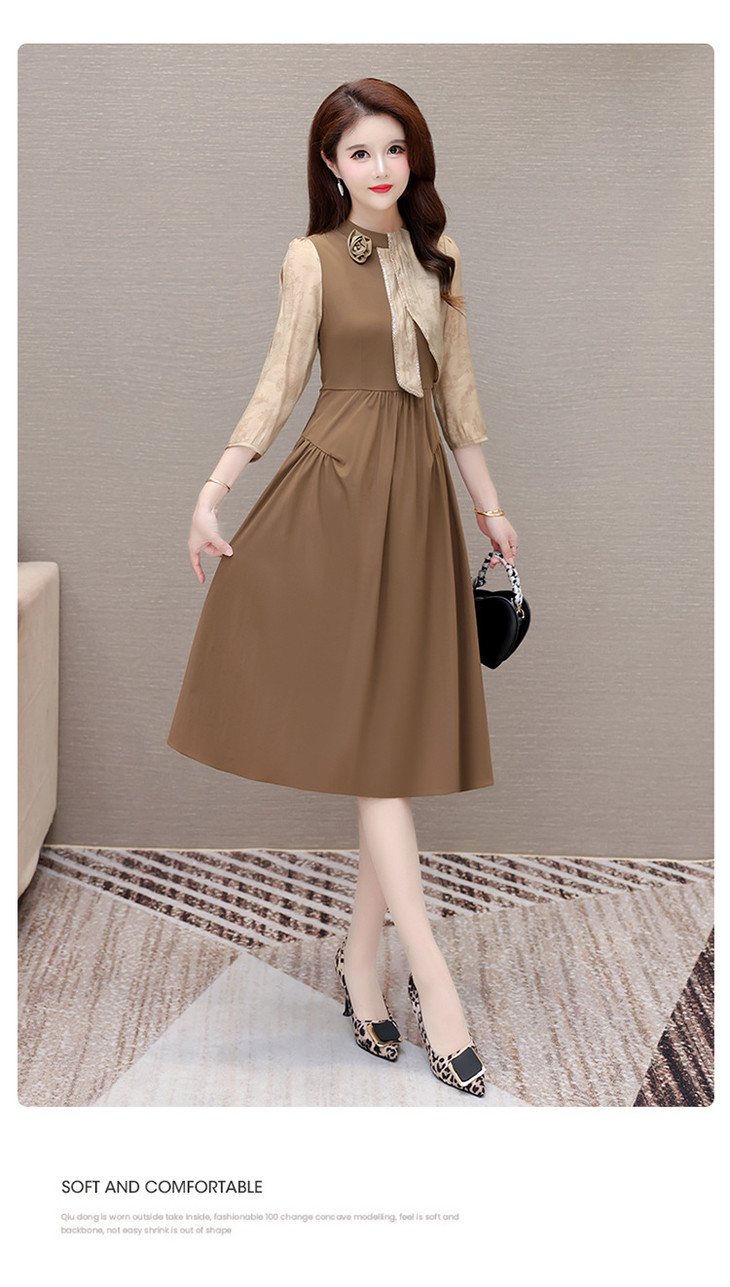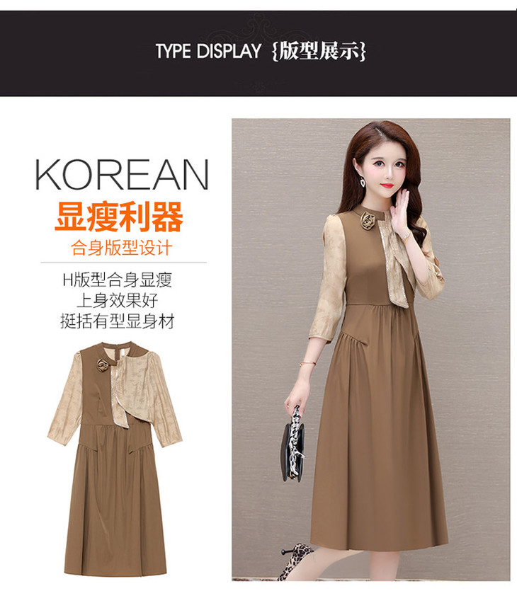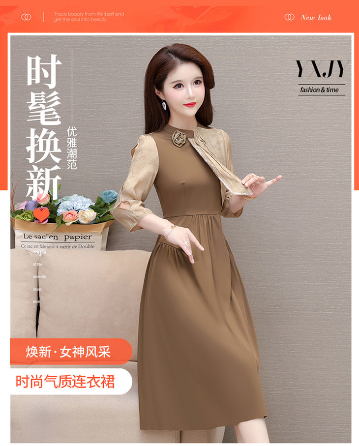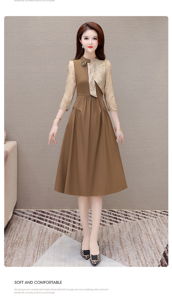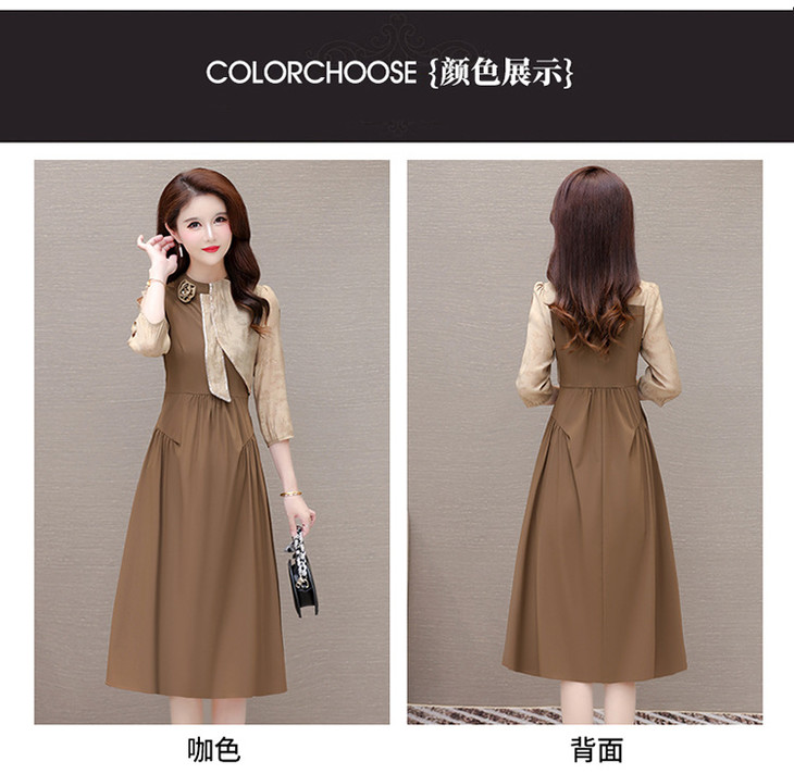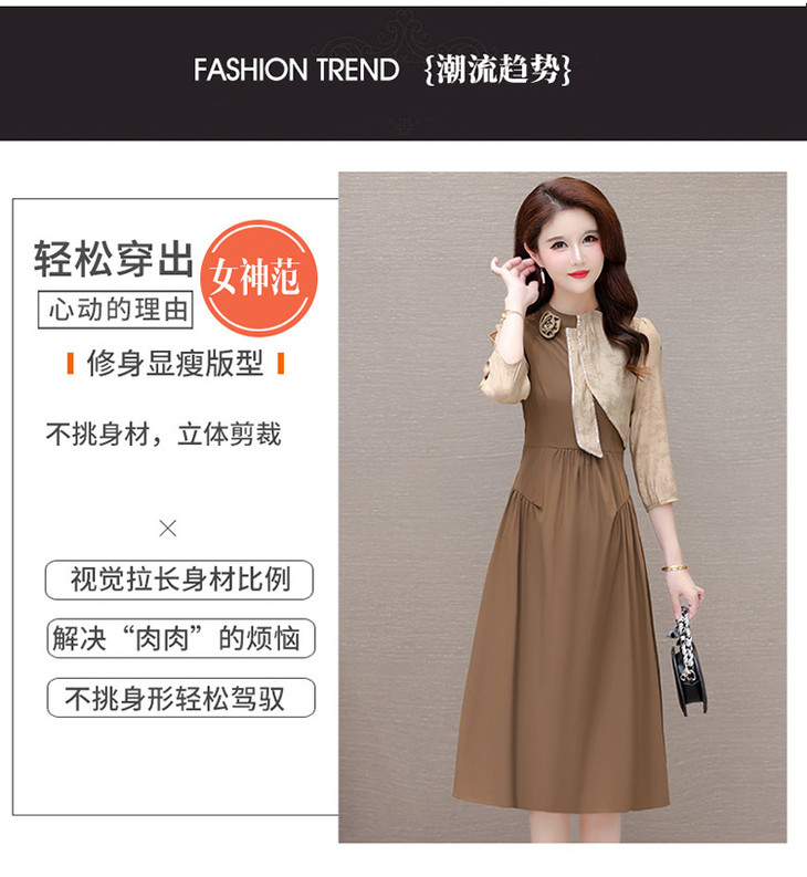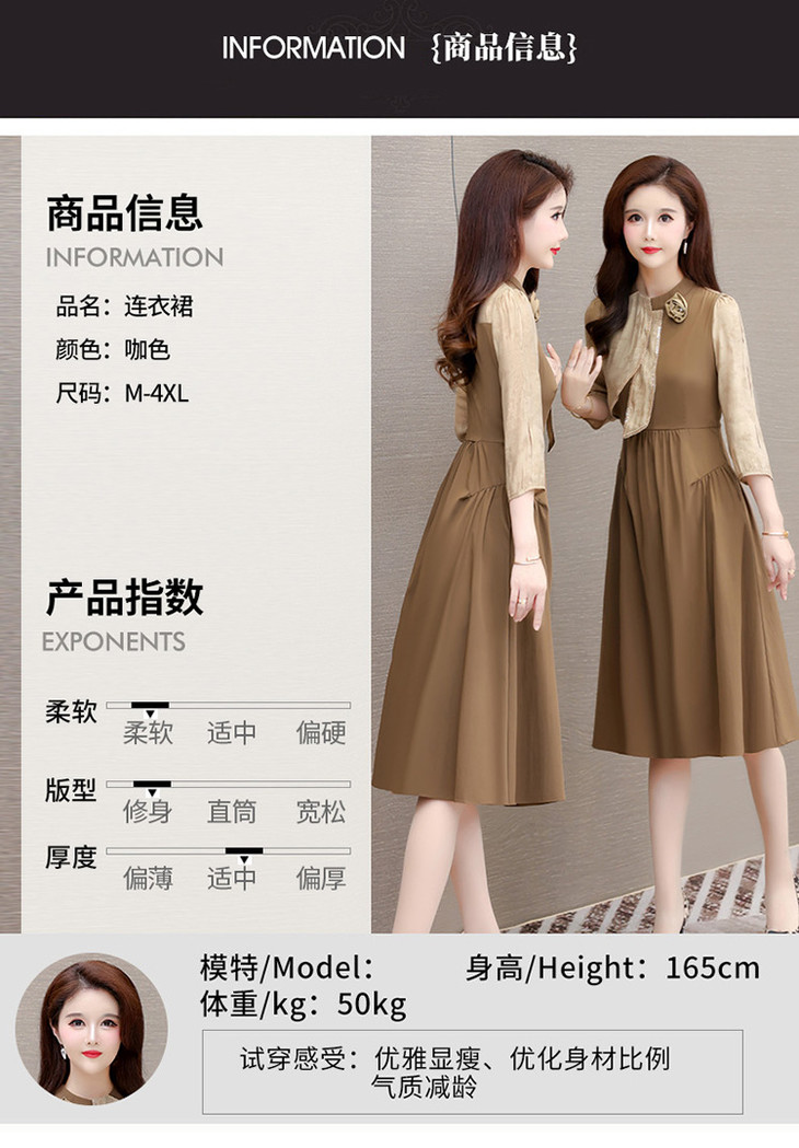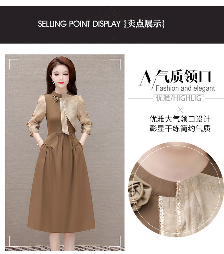 文艺复古V领真丝丝绒连衣裙,妈妈装秋冬长袖中长裙子SM-82497998