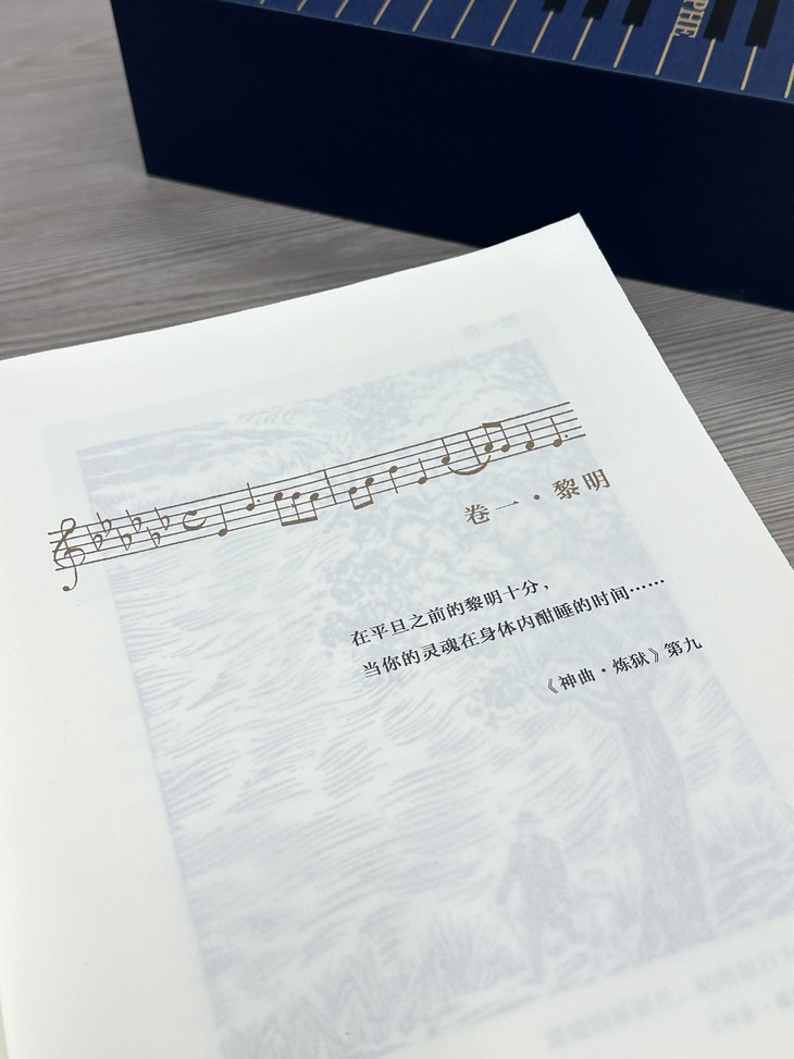 封面选用深蓝色荷兰进口漆布,精选原著四个灵魂场景,烫金线条勾勒,串联克利斯朵夫跌宕起伏的一生。