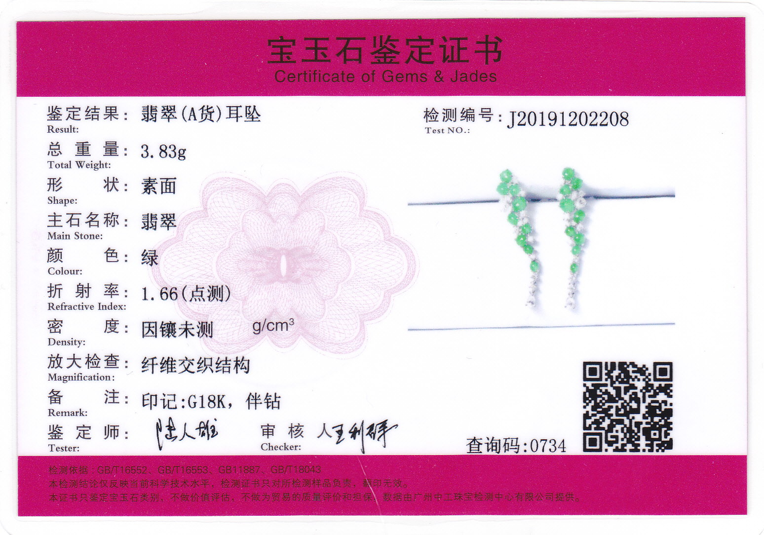 18k白金翡翠镶钻耳饰