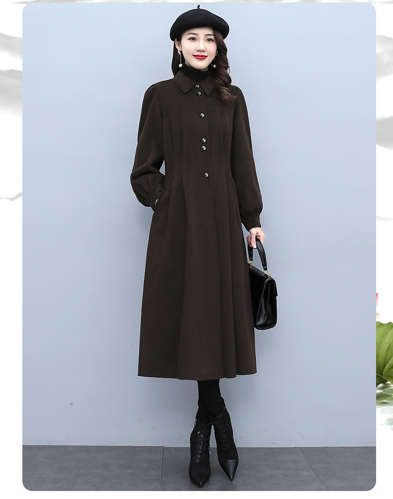 2021冬装新款简约大方英伦风毛呢外套优雅舒适长款呢子大衣 HR-ZMFS21133