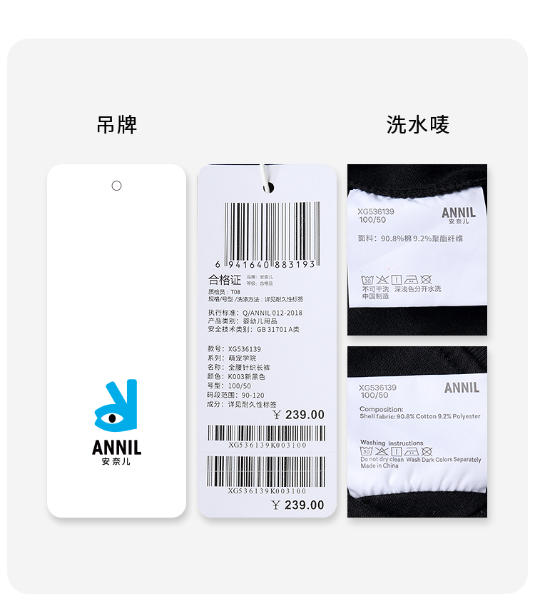 【实体店同款】女童全腰针织长裤秋季新款安奈儿童装XG536139