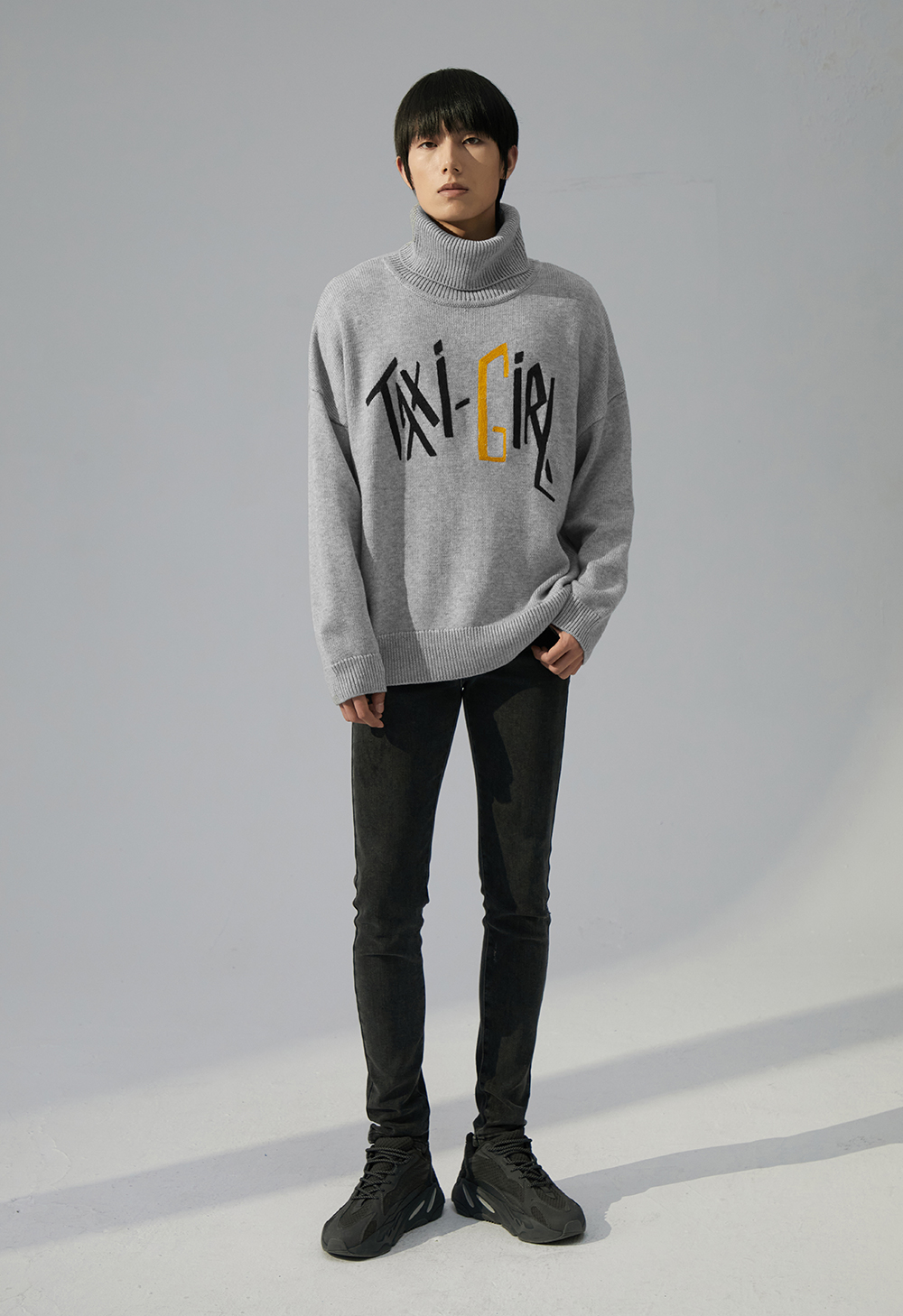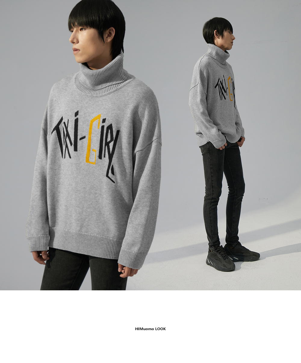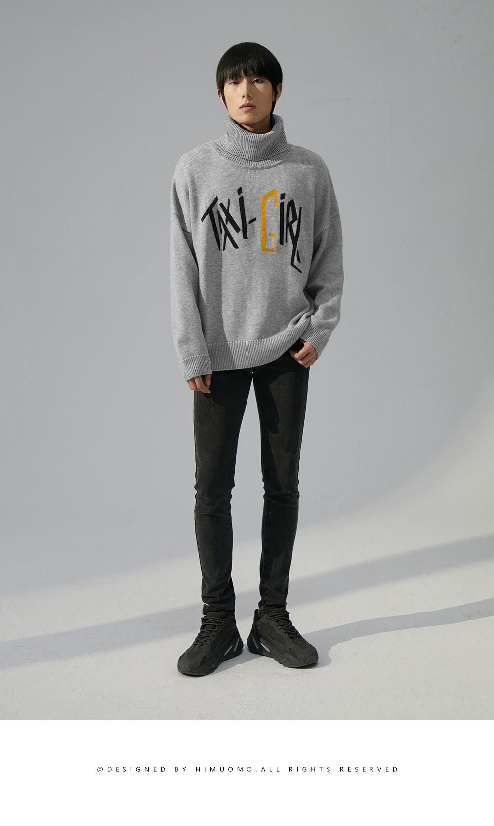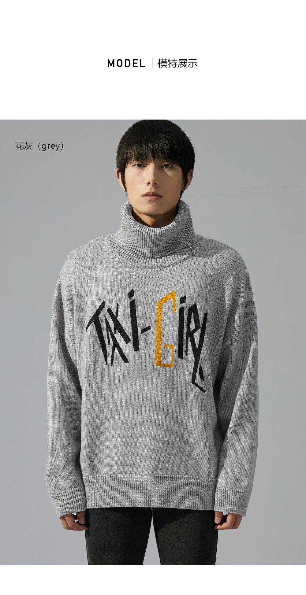 HIM漢崇 可翻高领毛衣潮流撞色字母宽松舒适休闲针织线衫2023冬季
