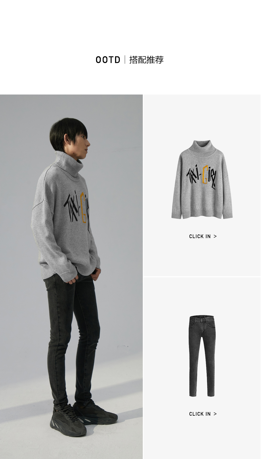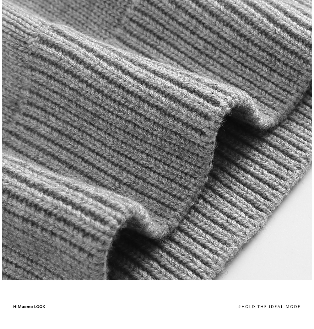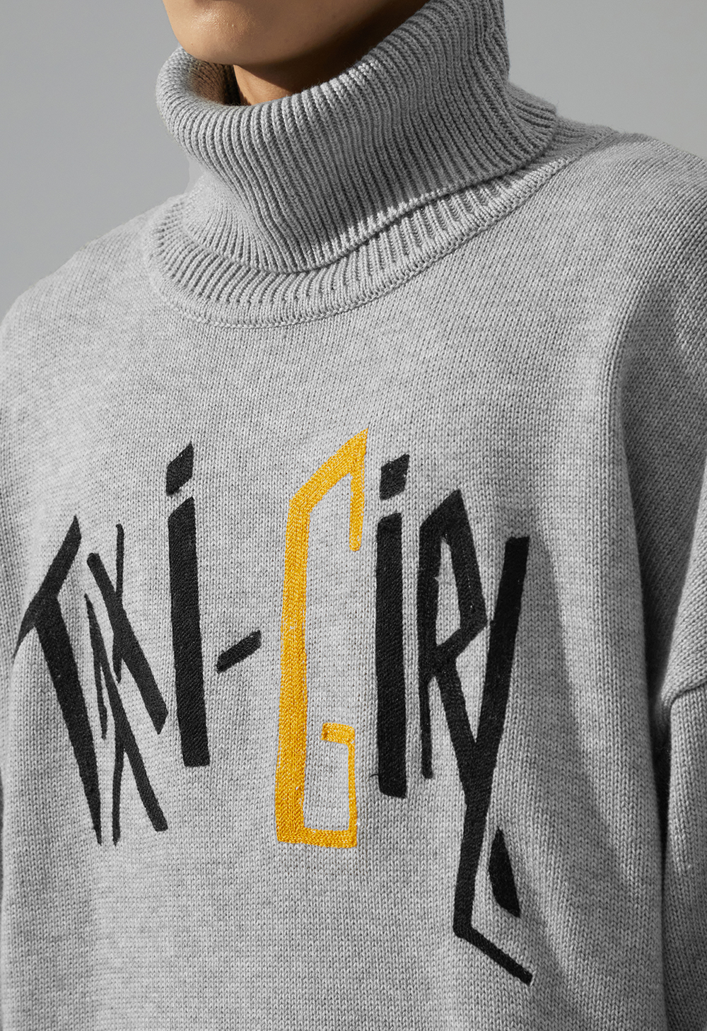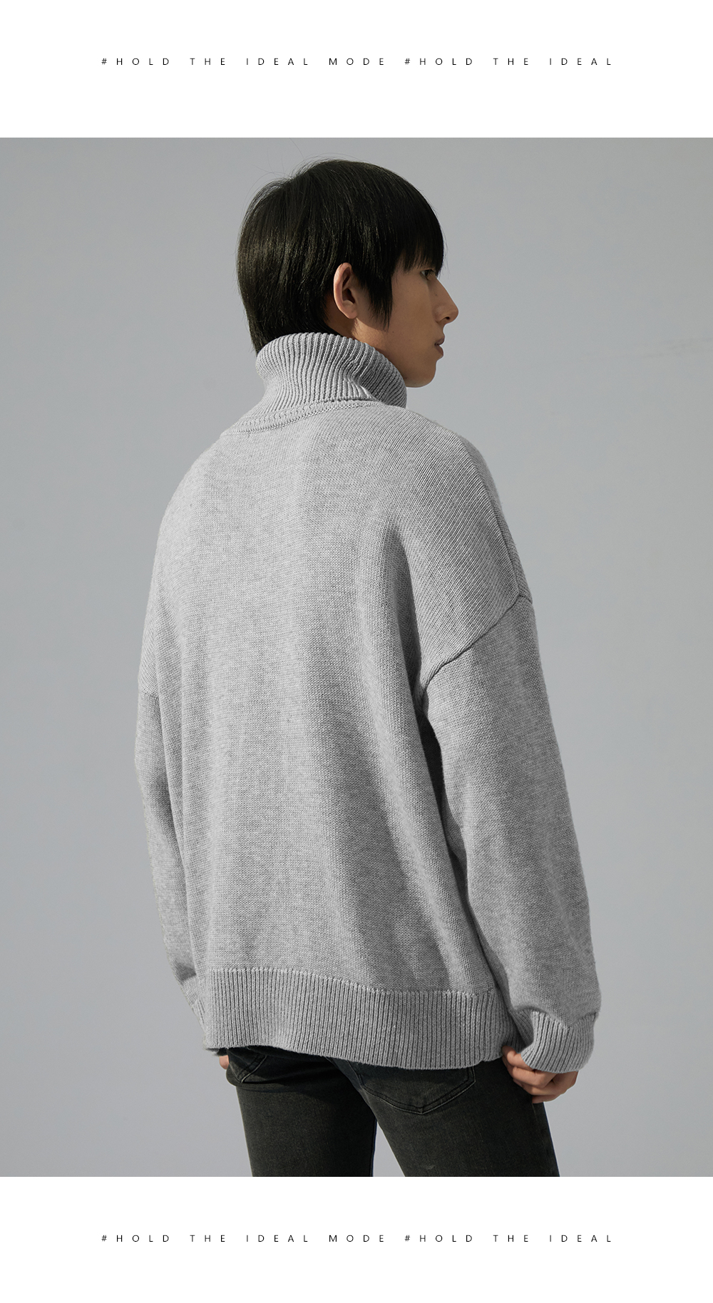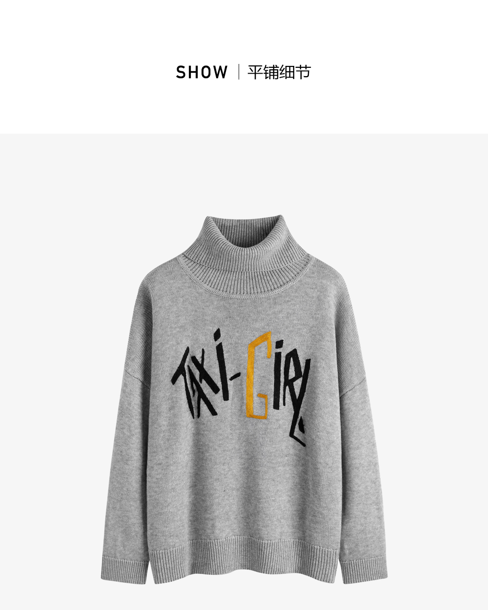 HIM漢崇 可翻高领毛衣潮流撞色字母宽松舒适休闲针织线衫2023冬季
